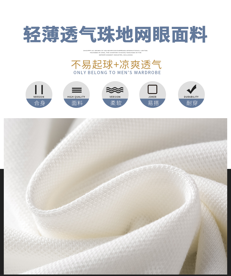 「五款配色!冰丝珠地面料」夏季2023冰丝网眼修身polo衫男 短袖丝光棉U刺绣休闲翻领t恤保罗衫上衣