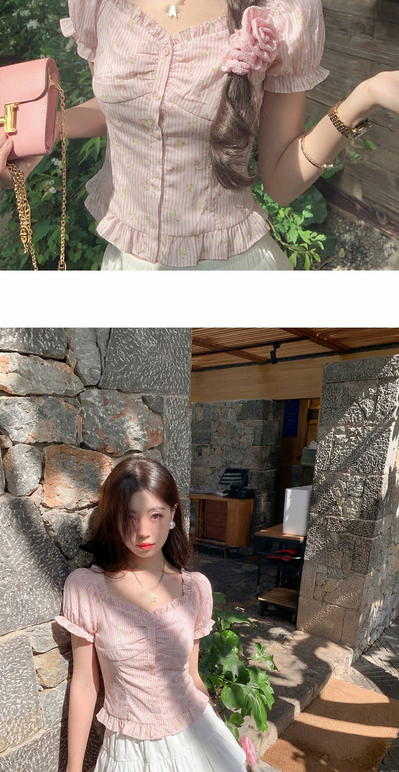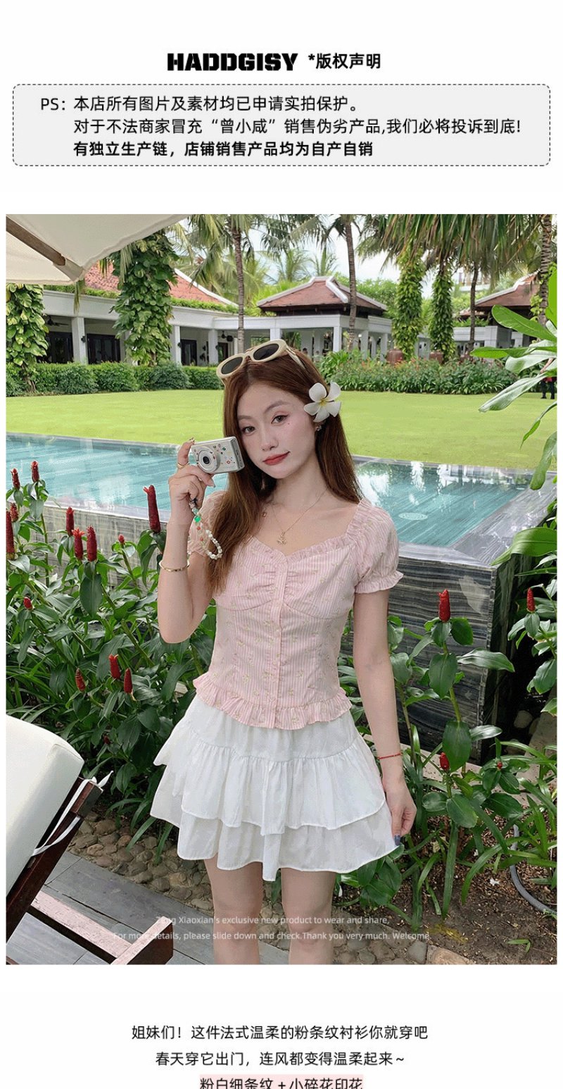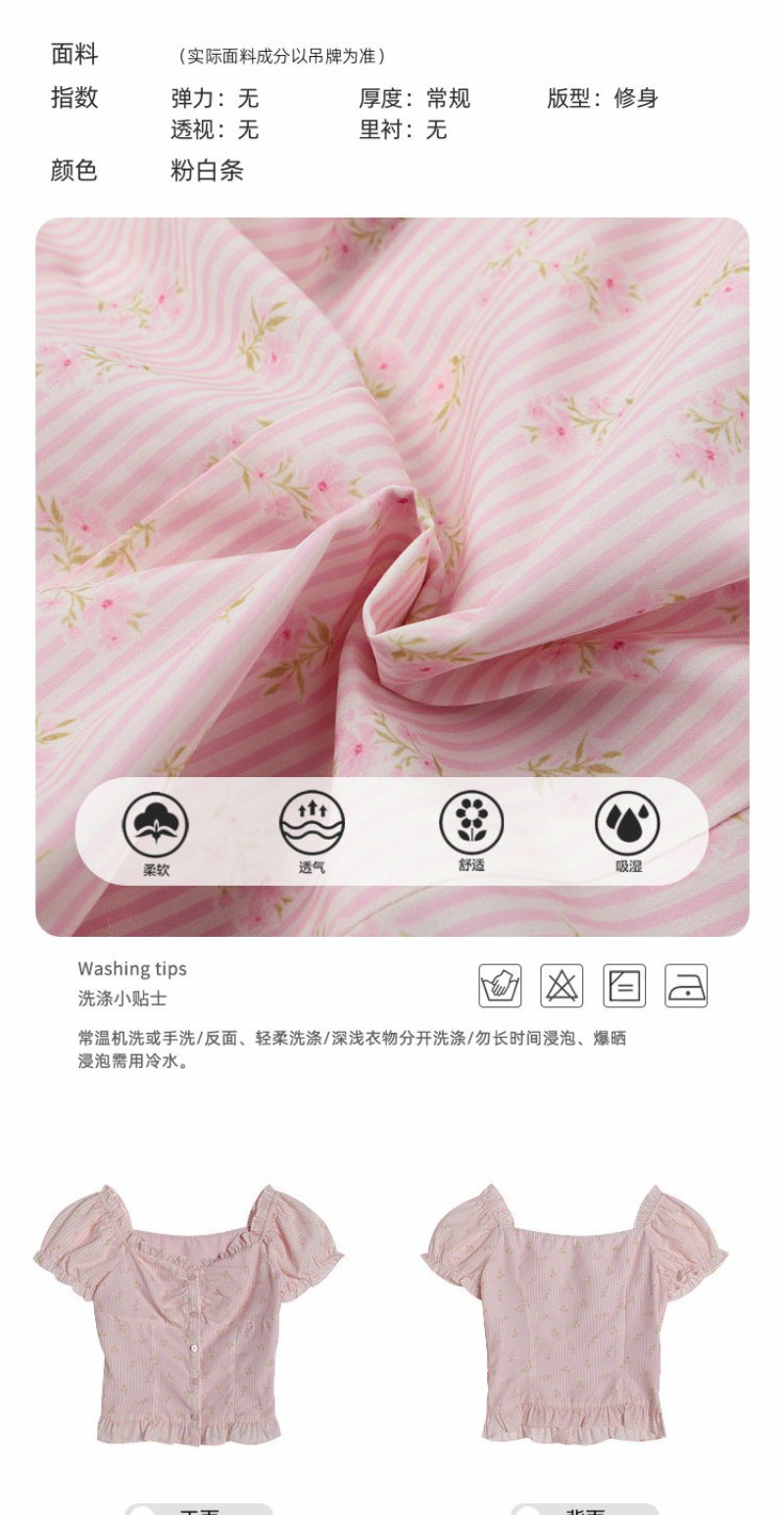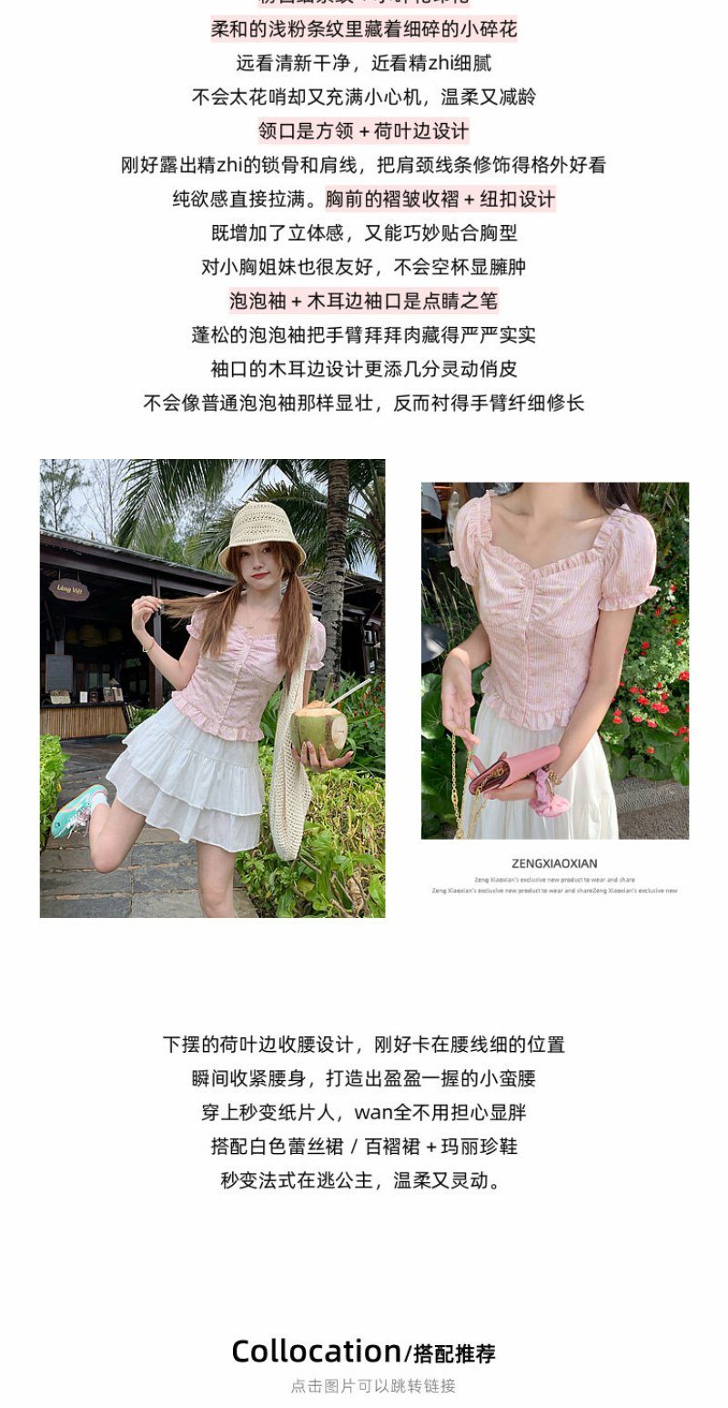 <曾小咸推荐>方领泡泡袖条纹衬衫短袖【预售7-15天发货】