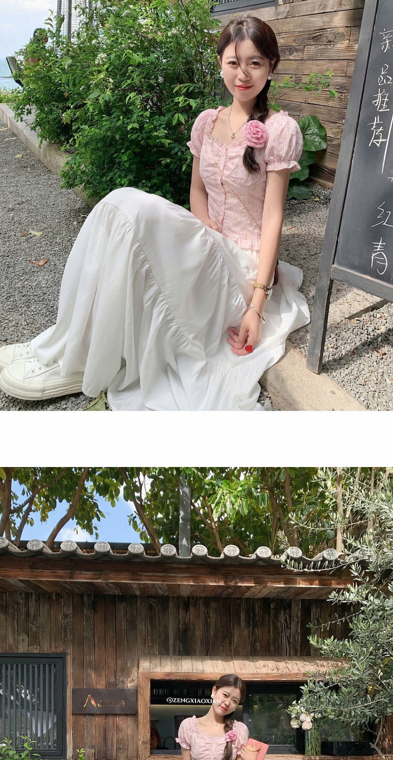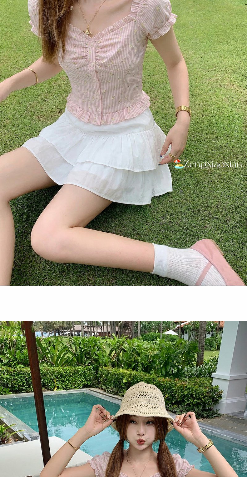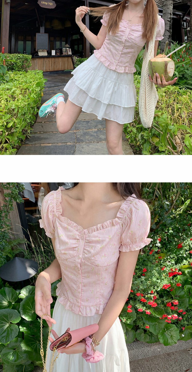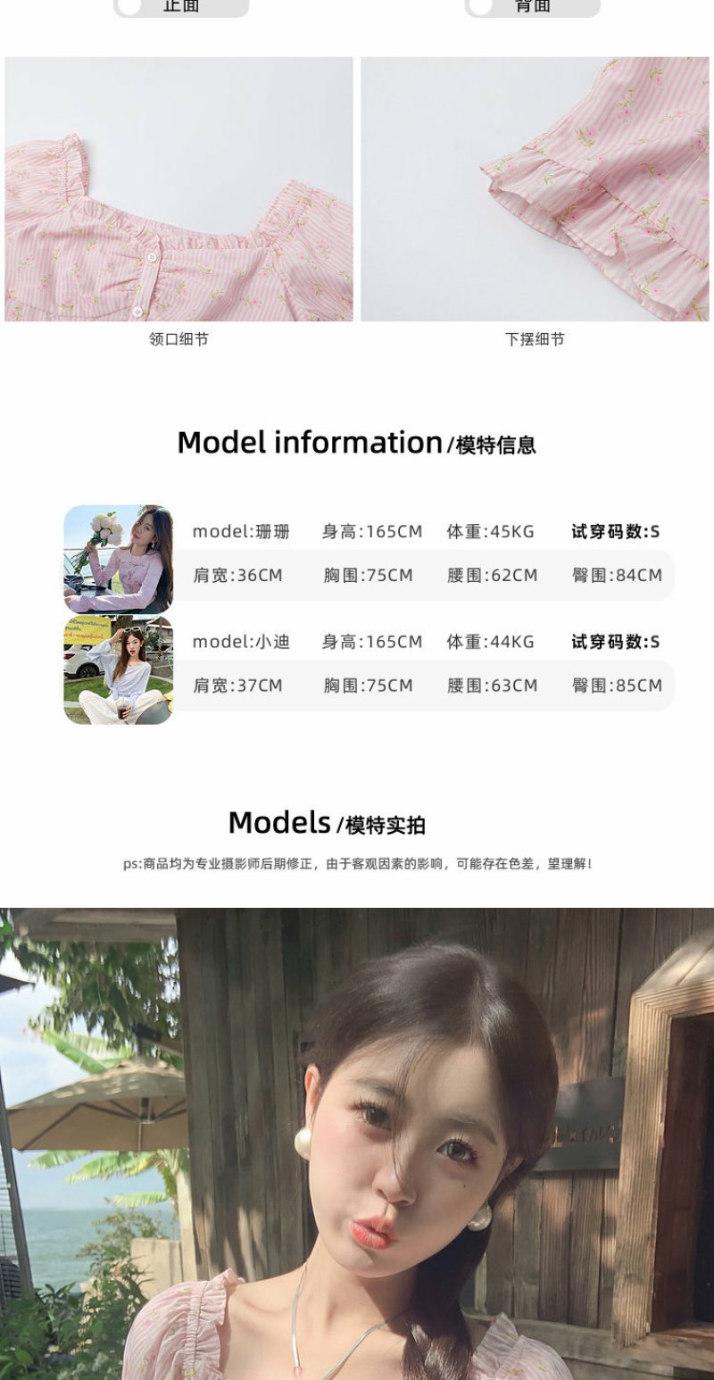 <曾小咸推荐>方领泡泡袖条纹衬衫短袖【预售7-15天发货】