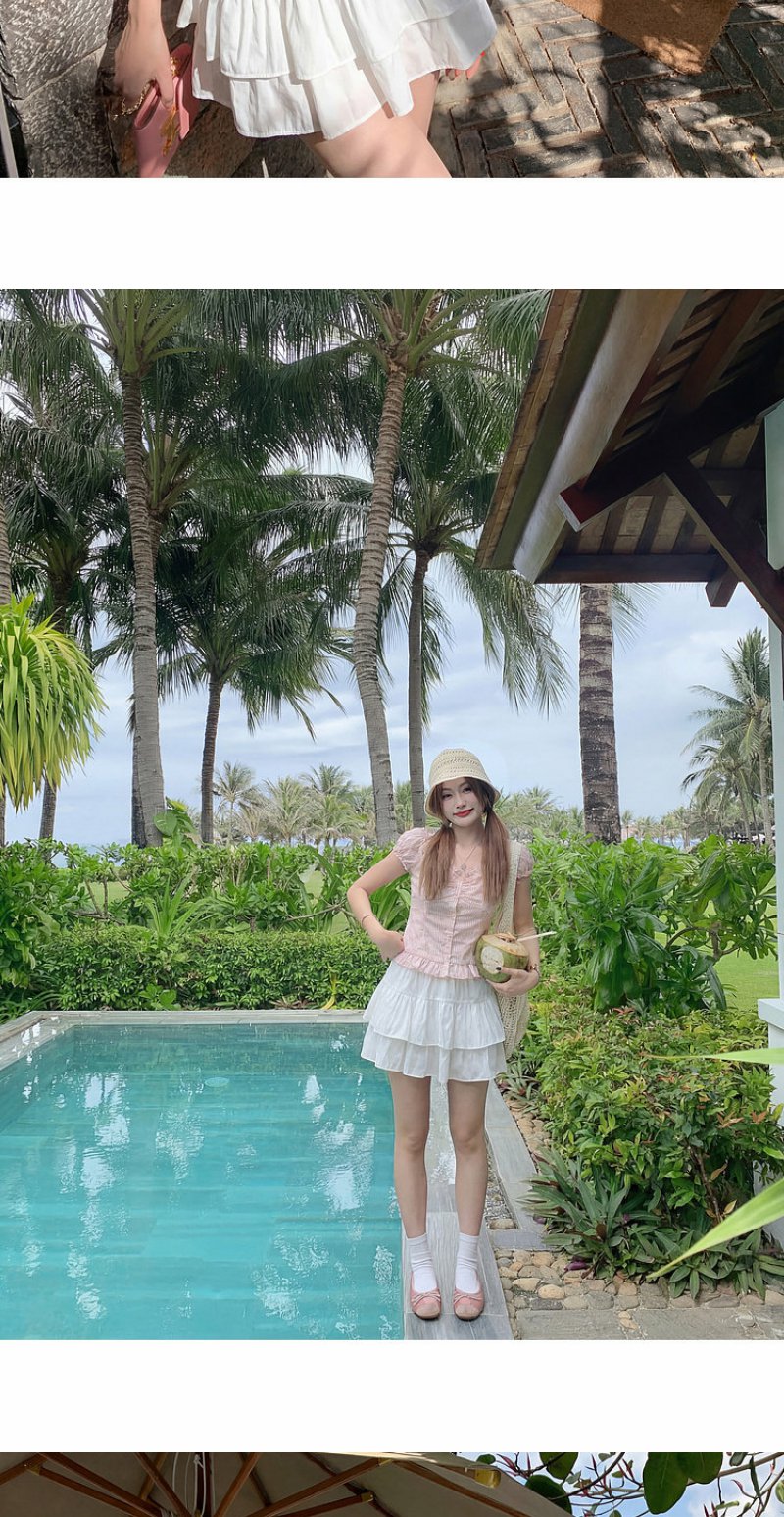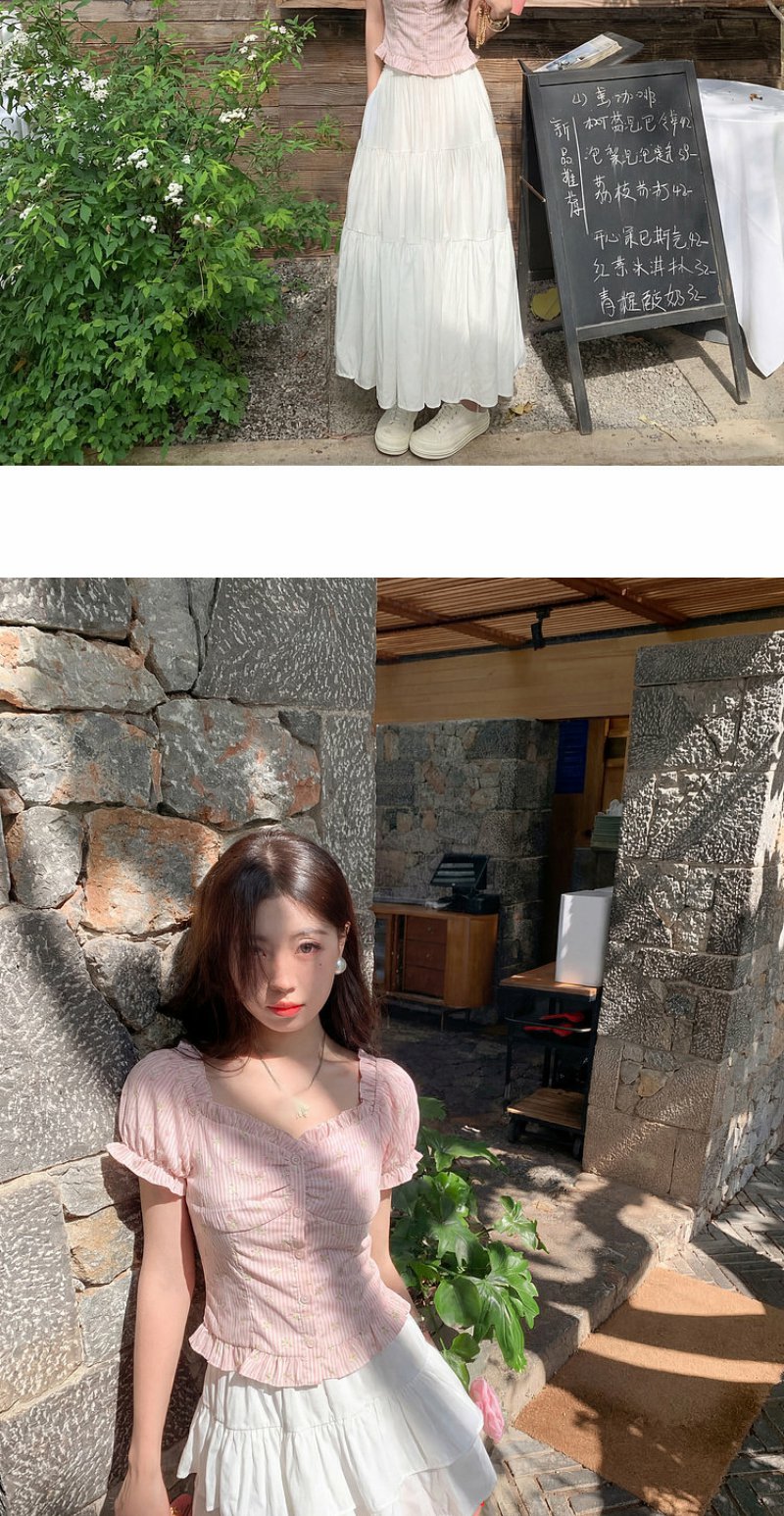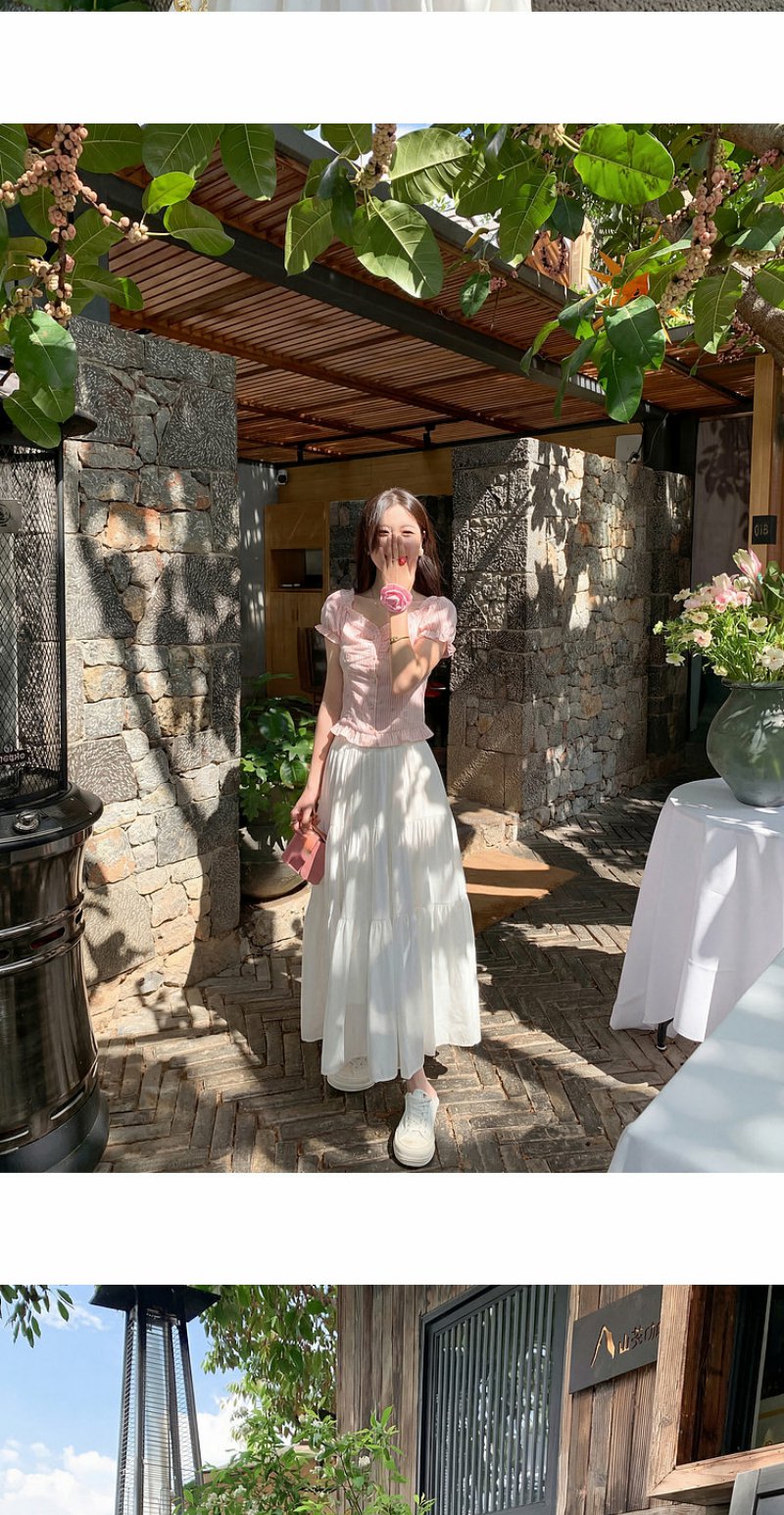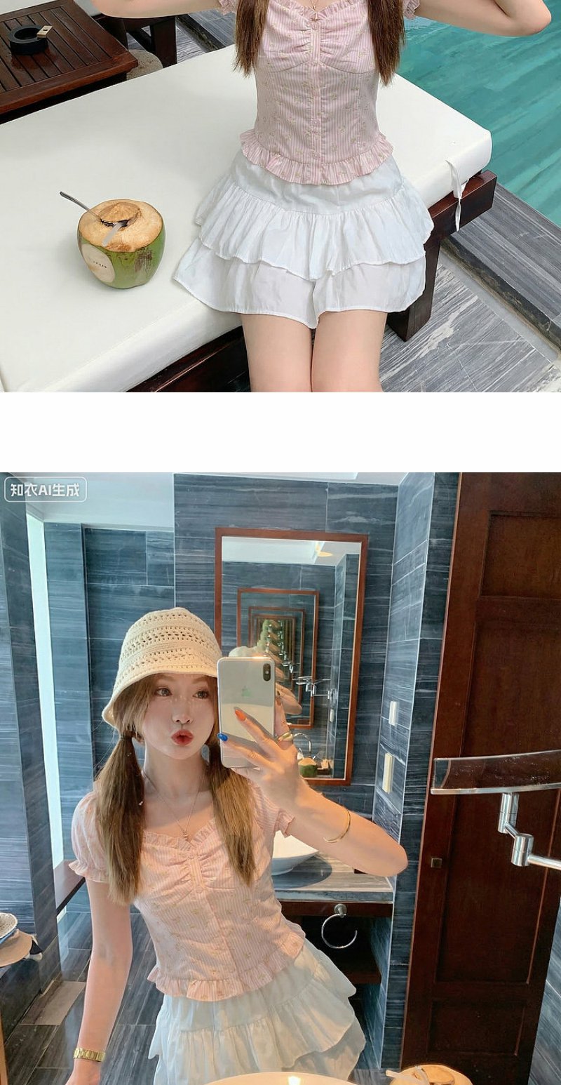 <曾小咸推荐>方领泡泡袖条纹衬衫短袖【预售7-15天发货】