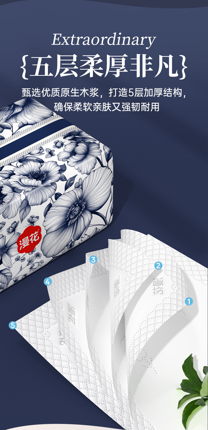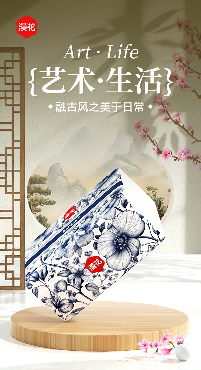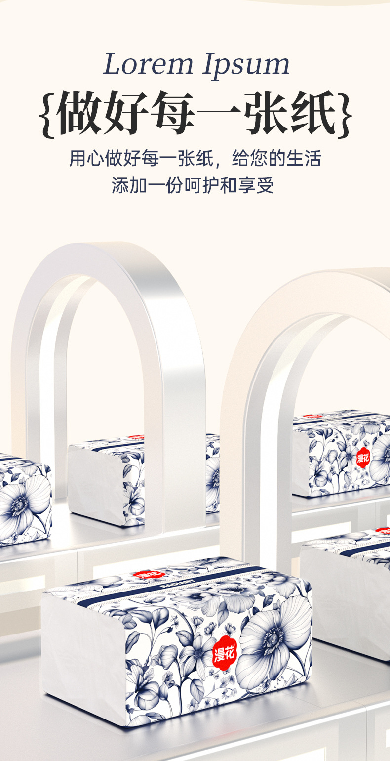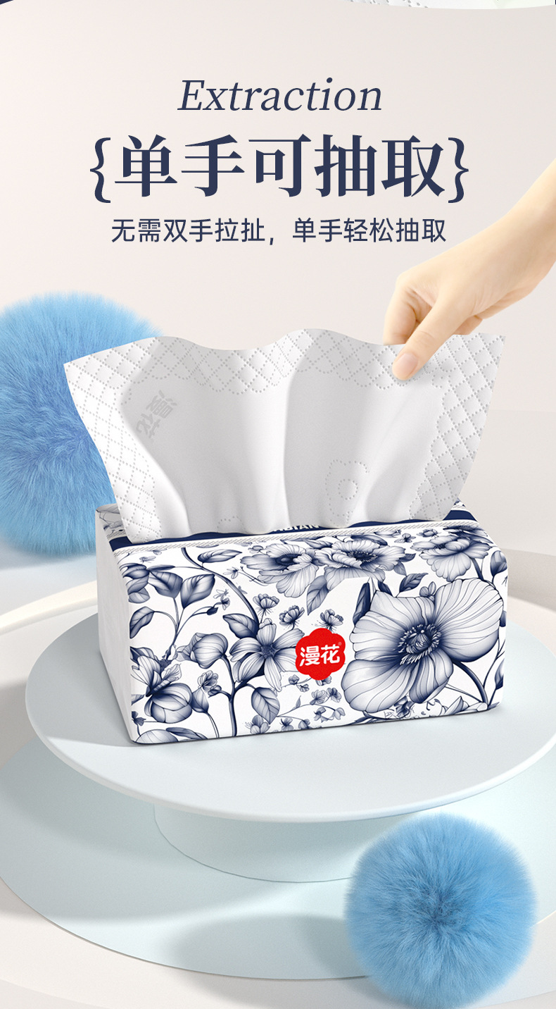 【漫花软包抽纸!中国风系列】漫花抽纸,五层加厚,柔软舒适;原木浆制作,精美压花,寓意美好。为您的生活添加呵护与享受,让每个场景都迎合您的需求!
