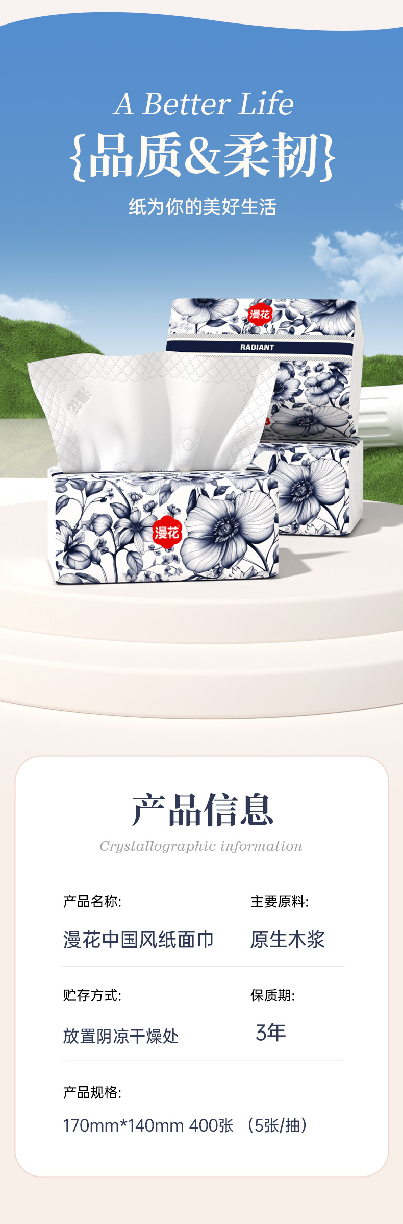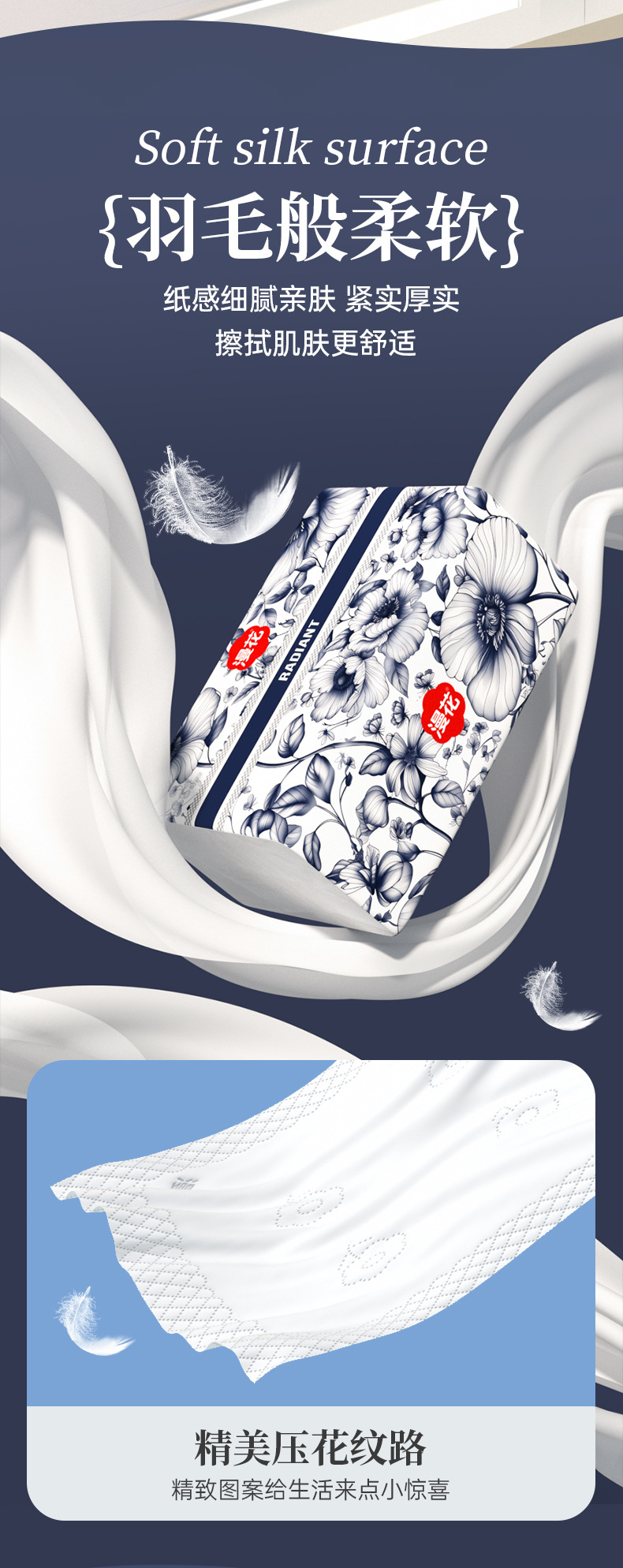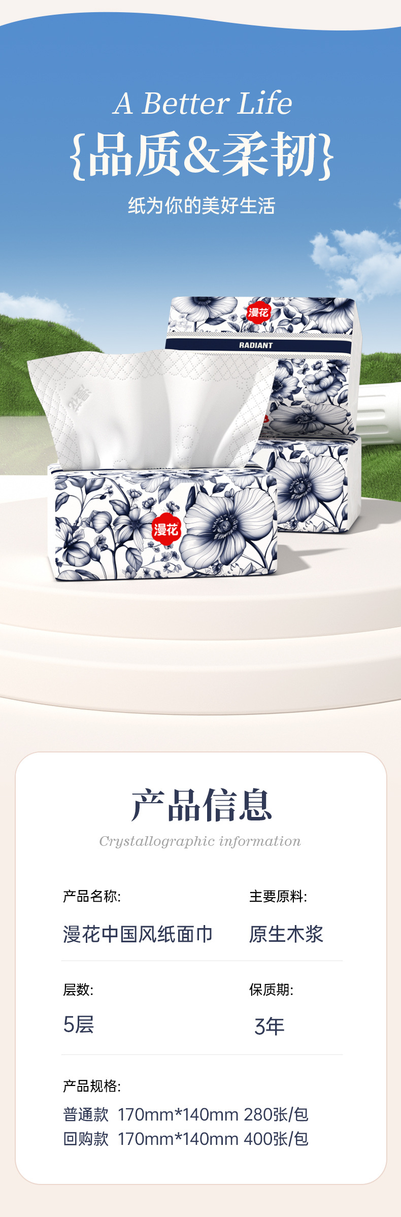 【漫花软包抽纸!中国风系列】漫花抽纸,五层加厚,柔软舒适;原木浆制作,精美压花,寓意美好。为您的生活添加呵护与享受,让每个场景都迎合您的需求!