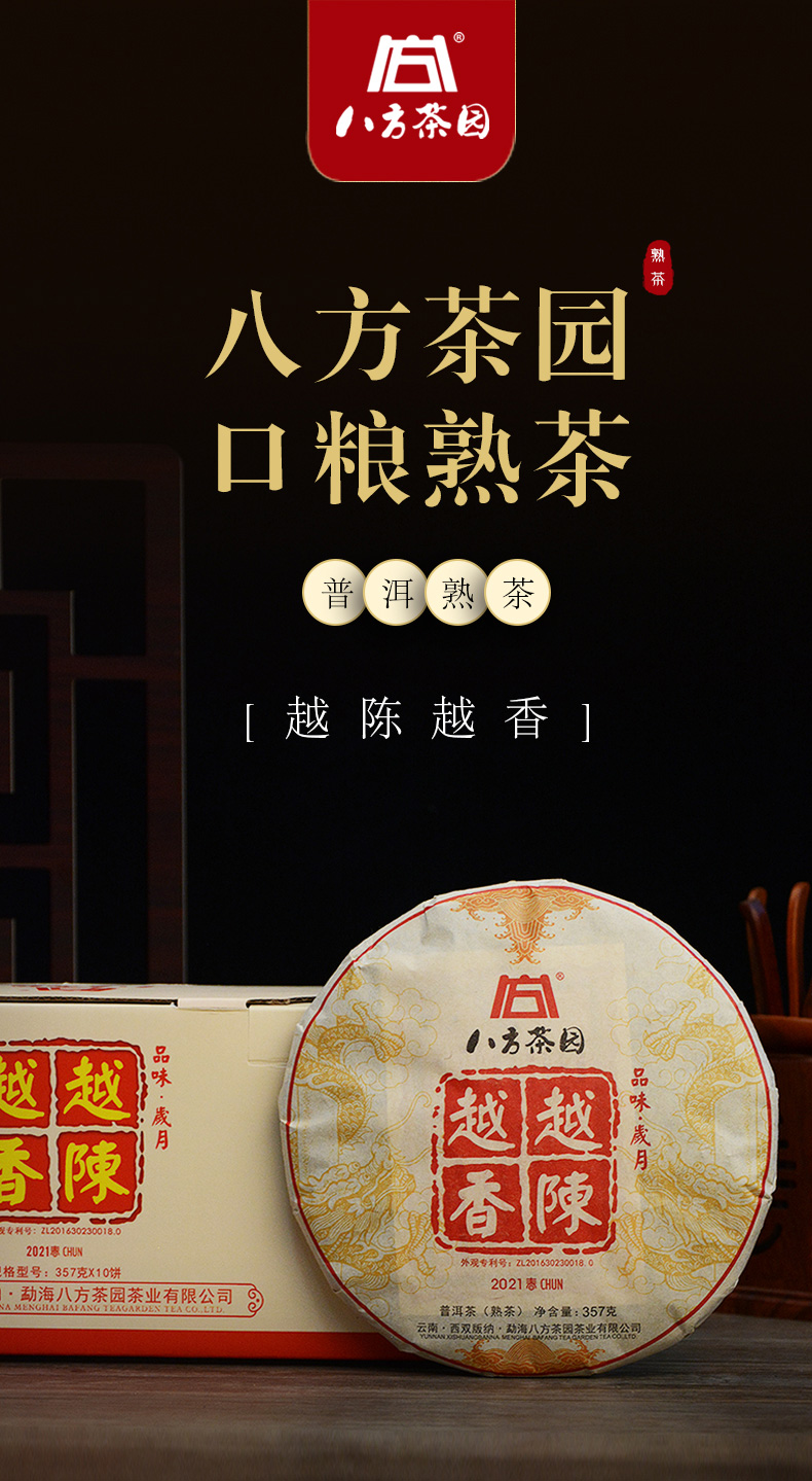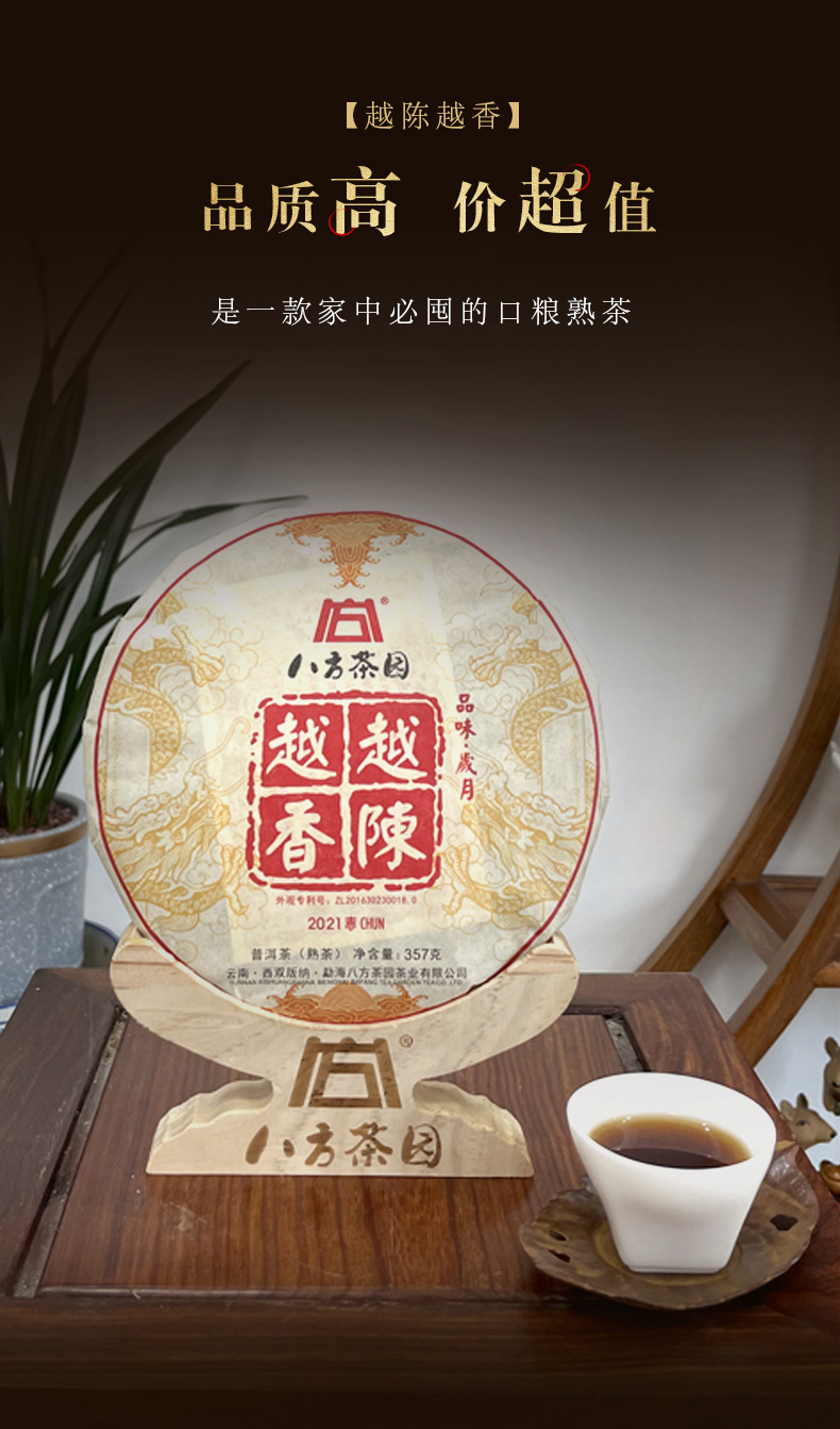 八方茶园 2021年越陈越香 普洱熟茶 云南勐海大叶种春茶 357g/饼【天猫同款】