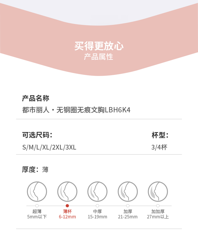 都市丽人VBRA内衣薄泳布无钢圈文胸LBH6K4