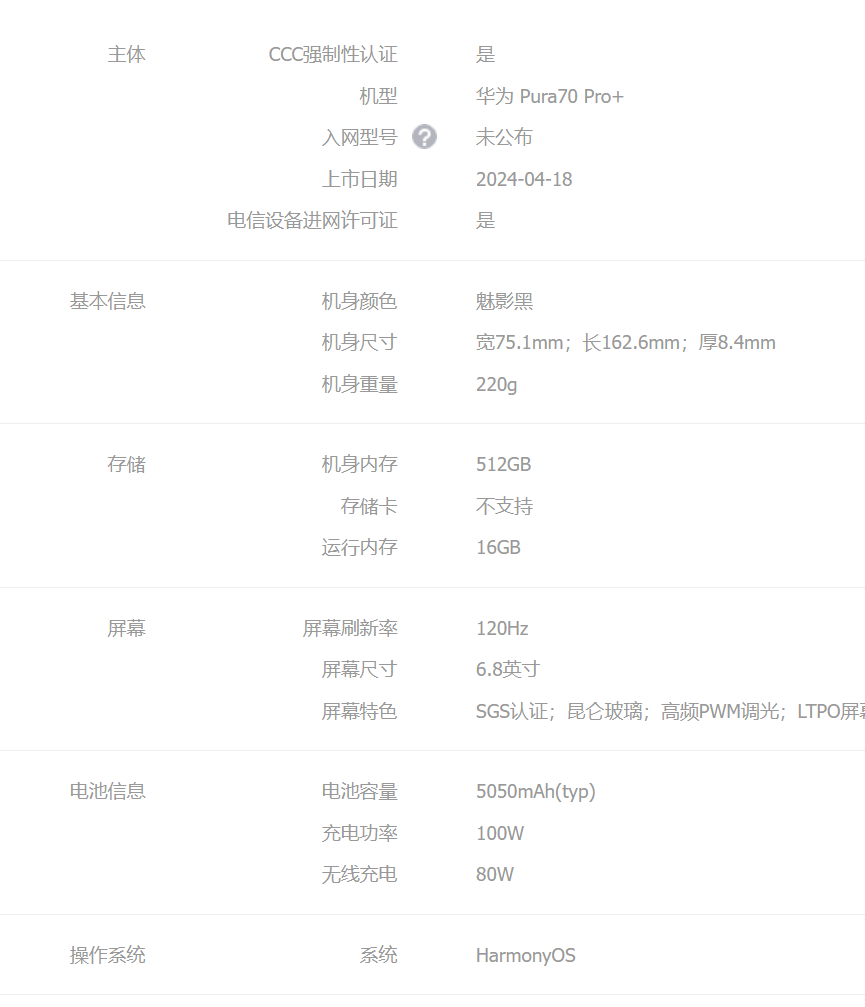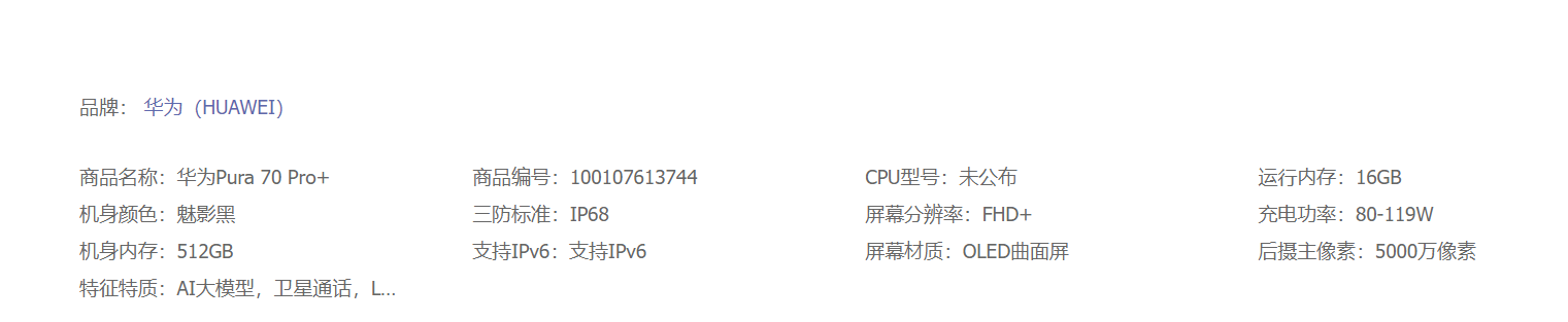 HUAWEI Pura 70 Pro+ 魅影黑 16GB+512GB 超高速风驰闪拍 超聚光微距长焦 双卫星通信 华为P70智能手机
