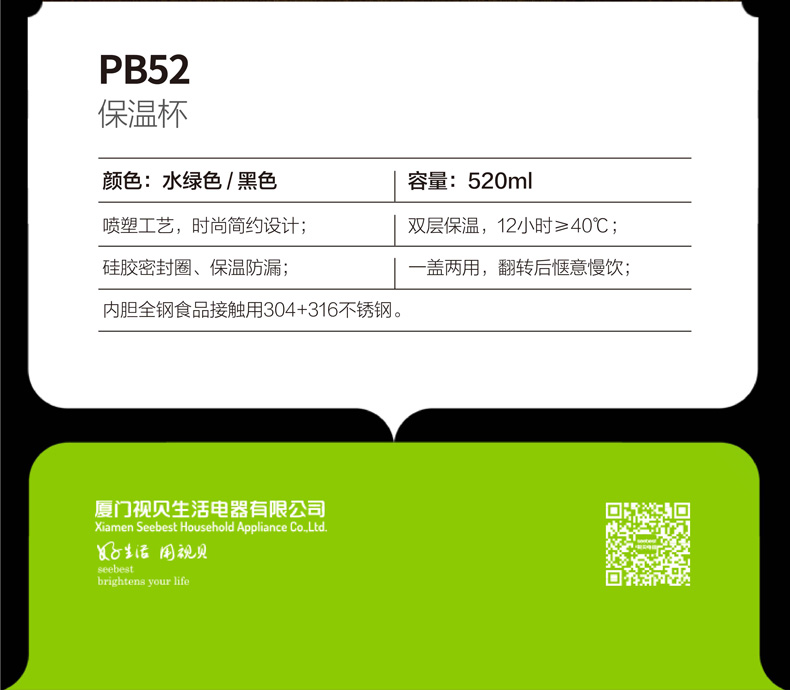 PB52 保温杯-水绿色/黑色