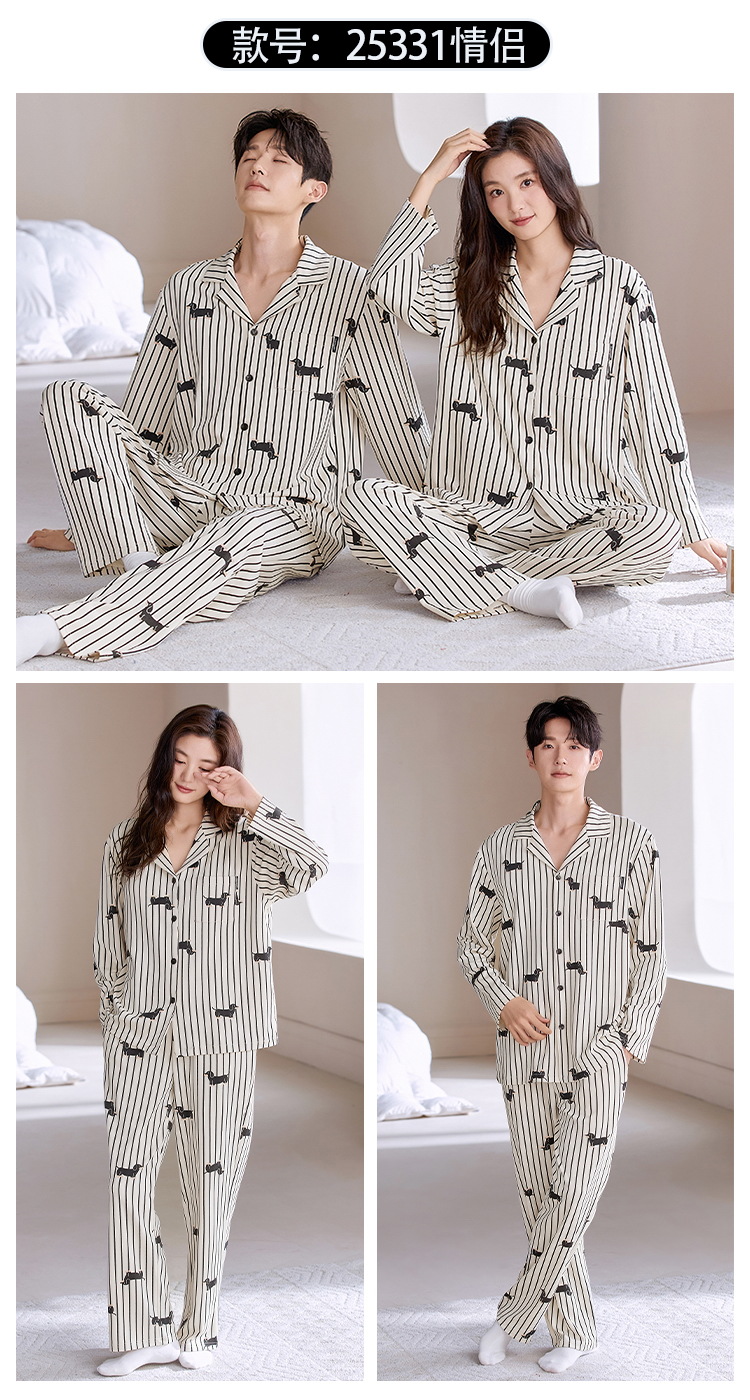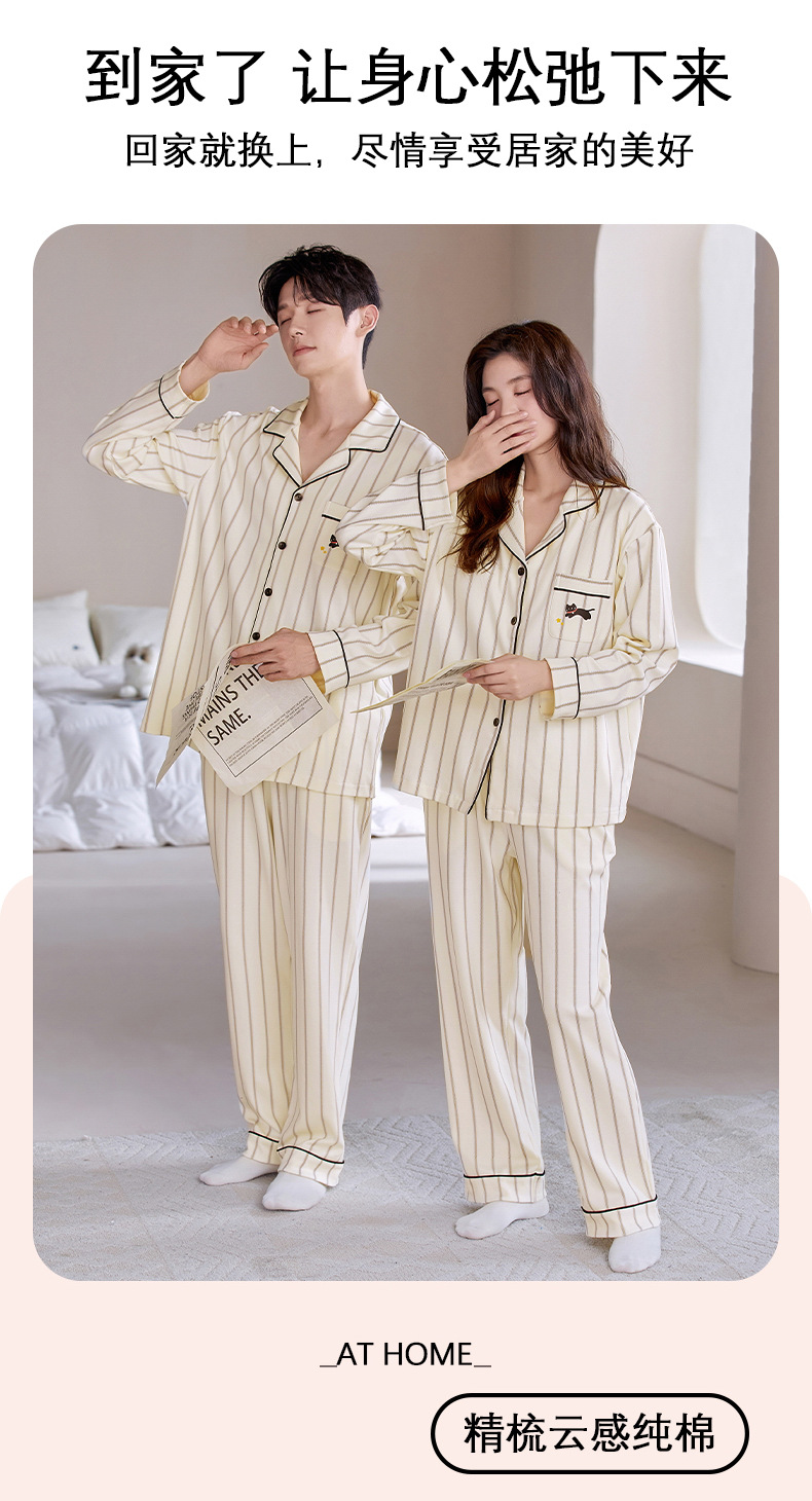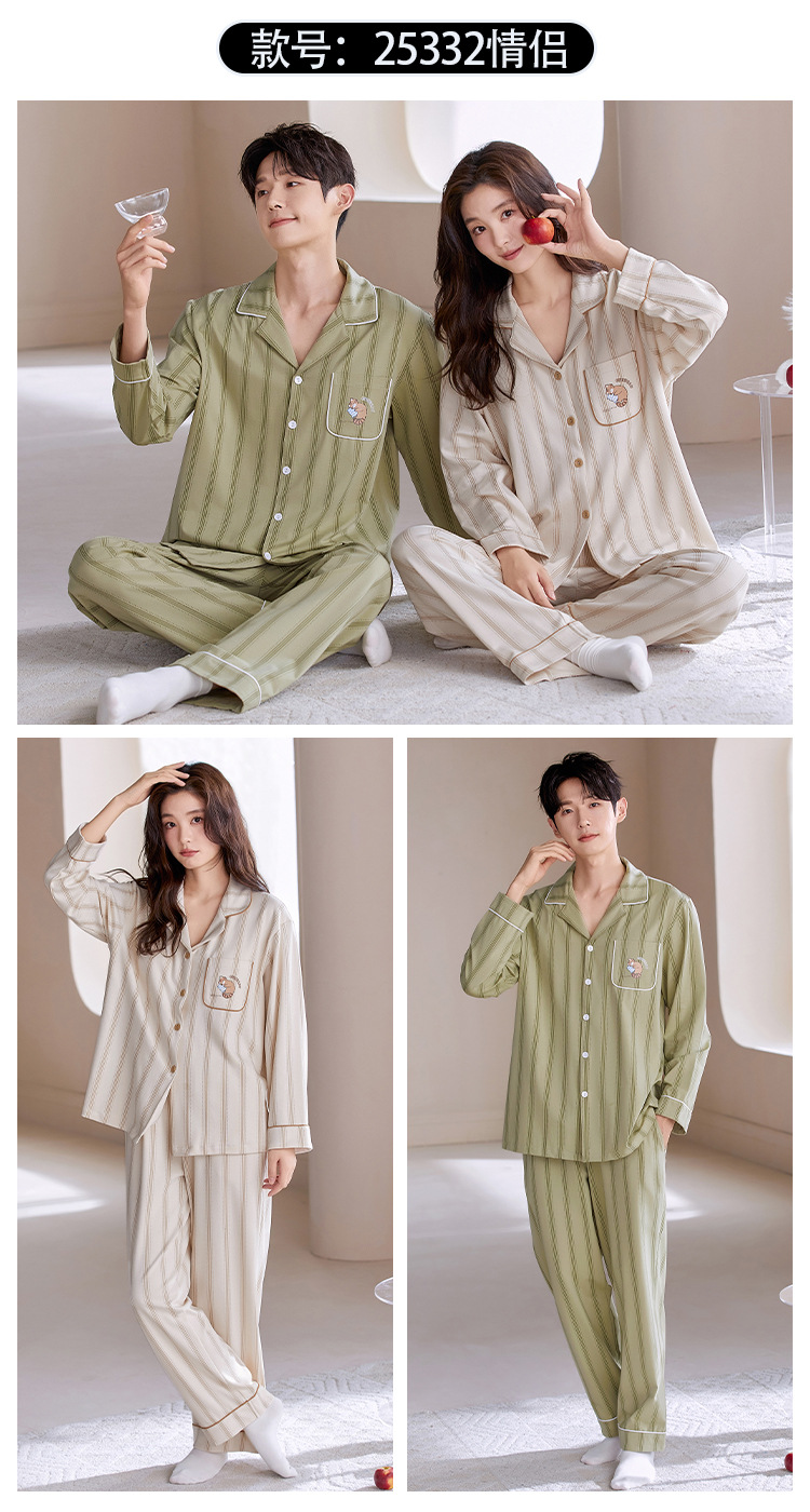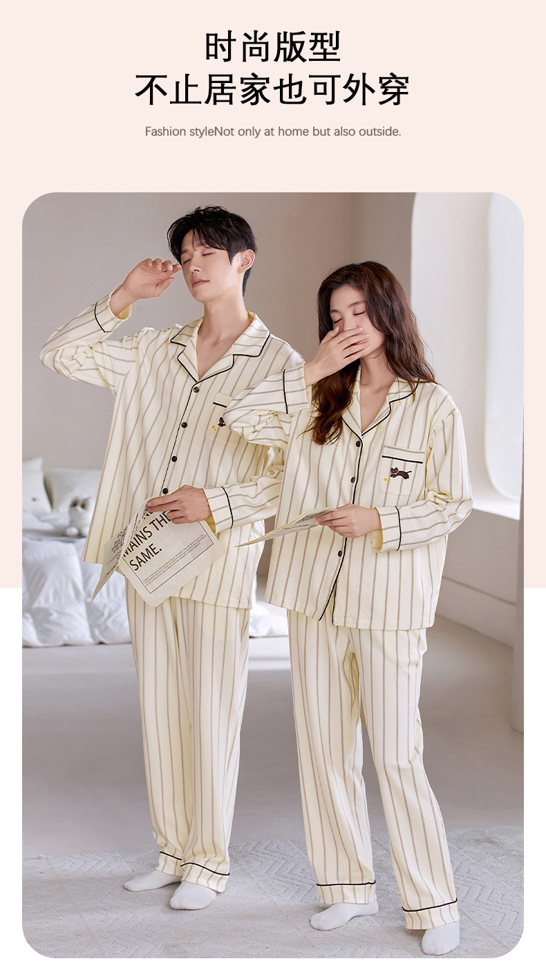 情侣睡衣翻领开衫长袖韩版可爱女士大码男士秋冬款家居服外穿套装