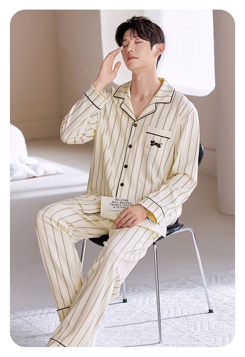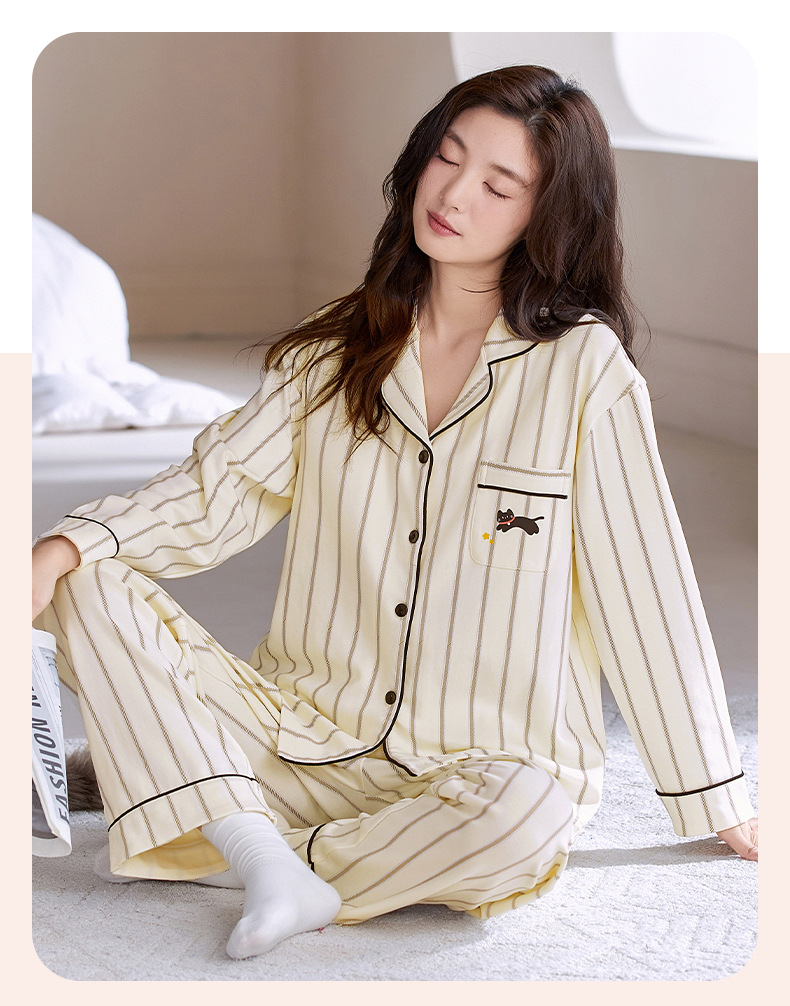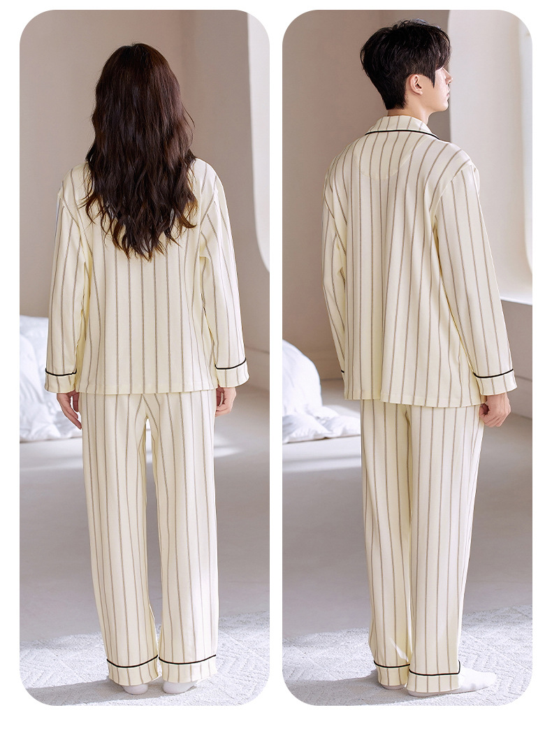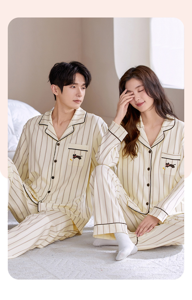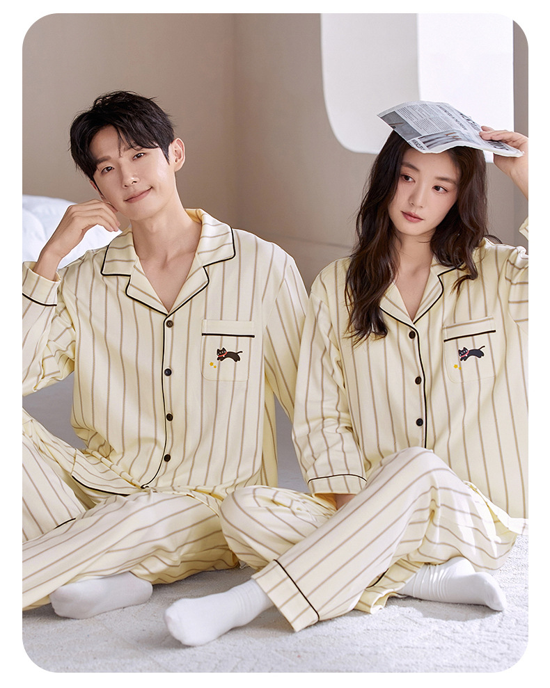 情侣睡衣翻领开衫长袖韩版可爱女士大码男士秋冬款家居服外穿套装