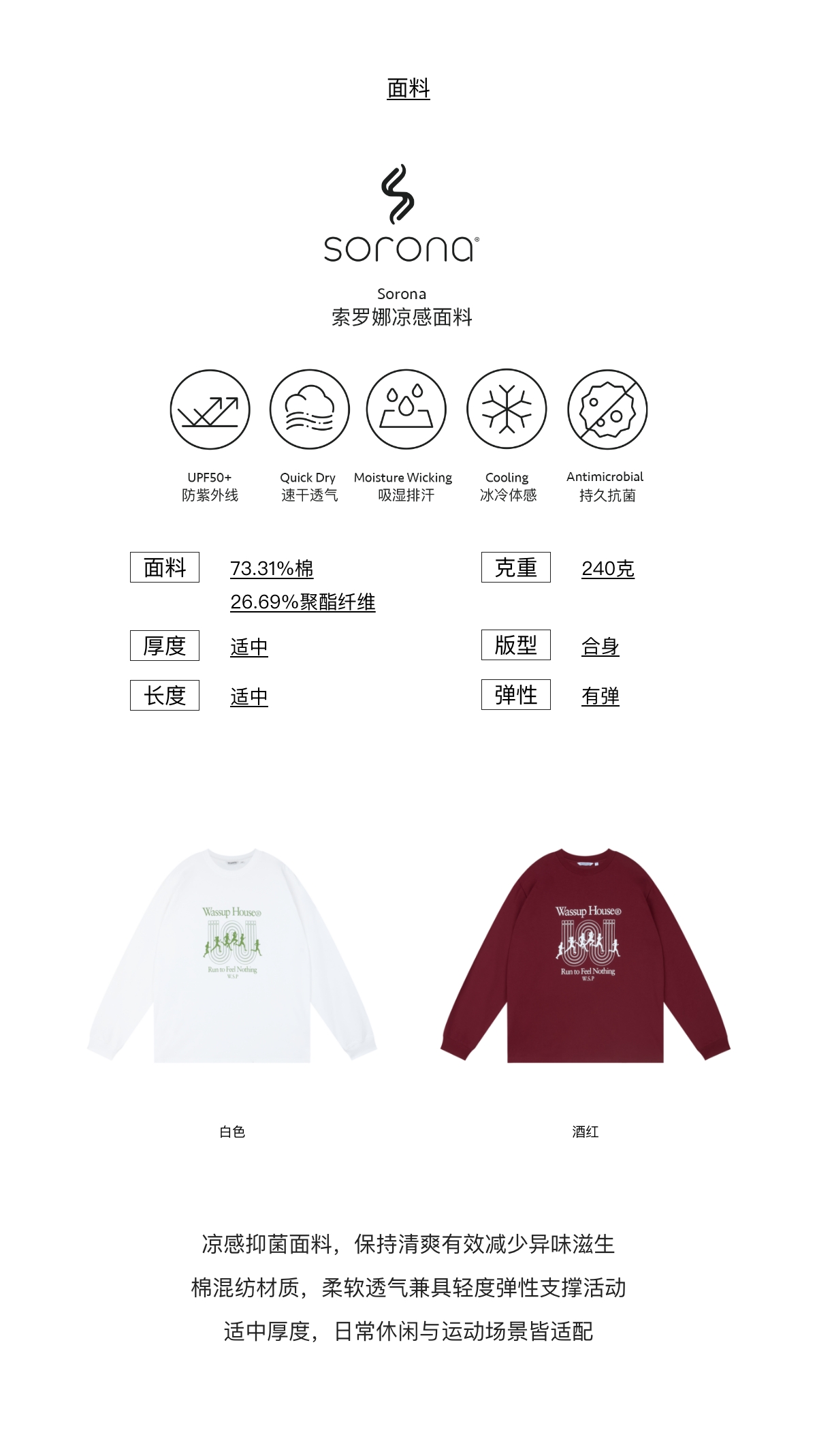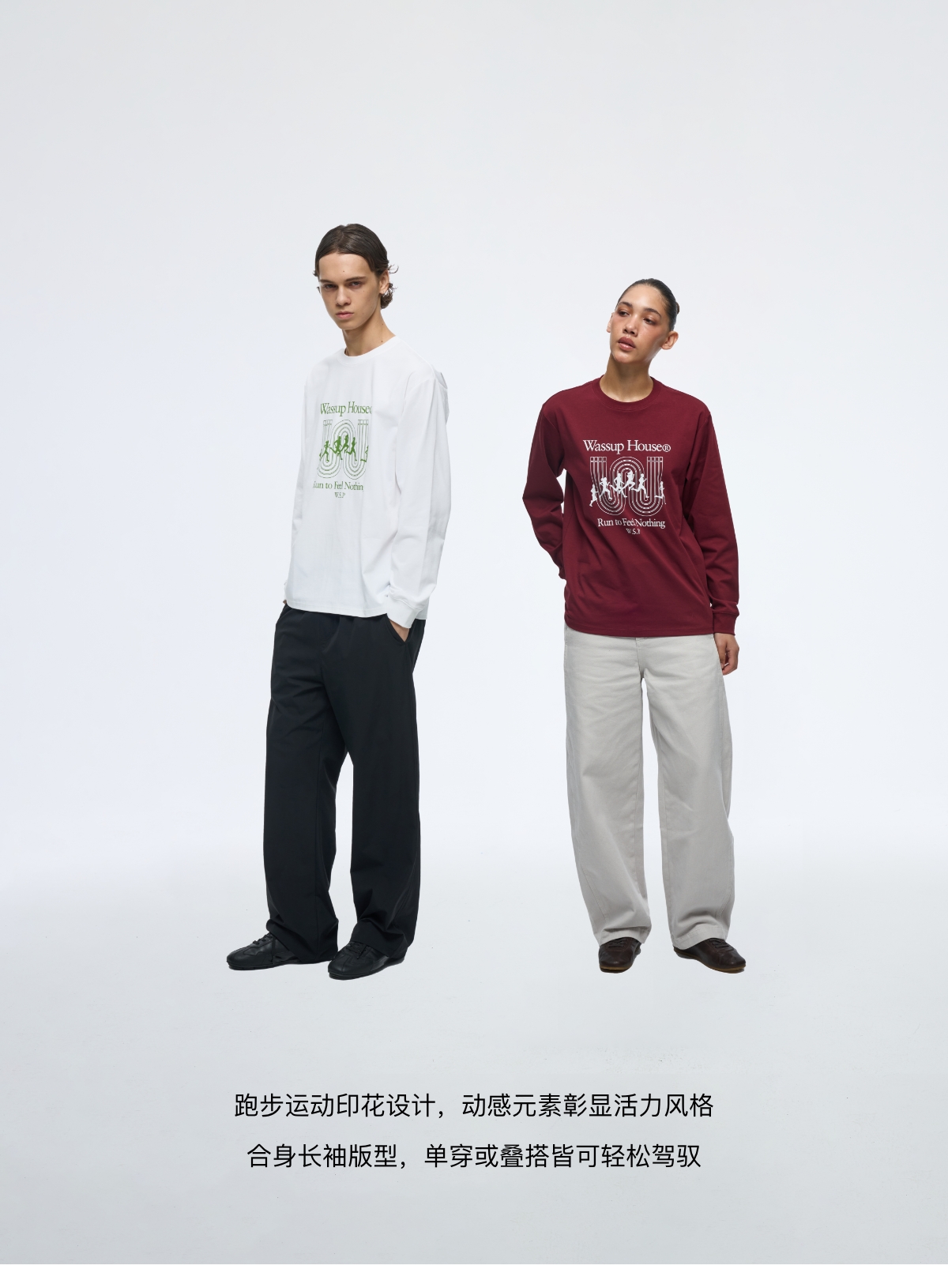 WassupHouse索罗娜运动跑步印花长袖T恤