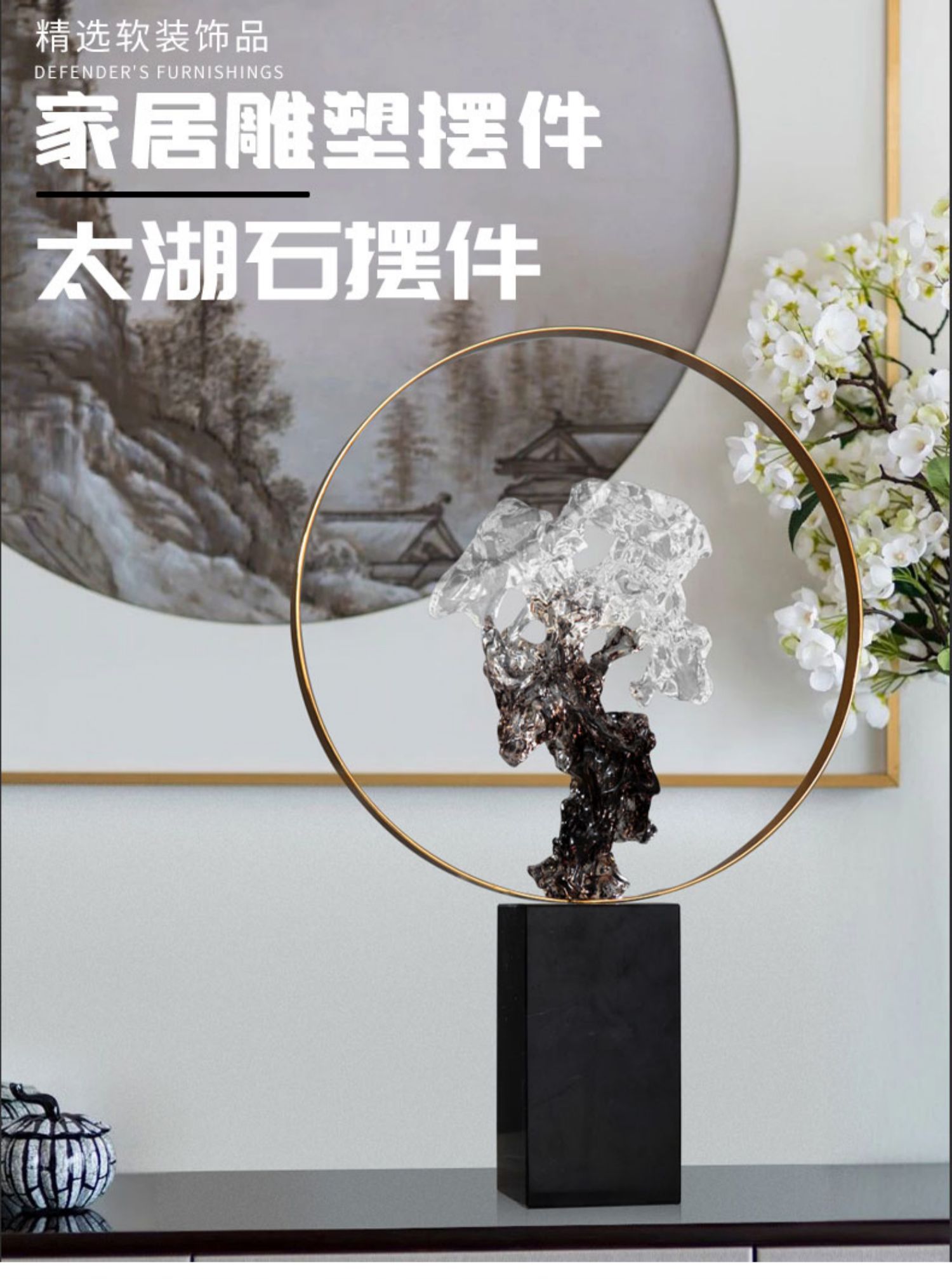 太湖石款艺术摆件客厅书房办公室玄关新中式摆件