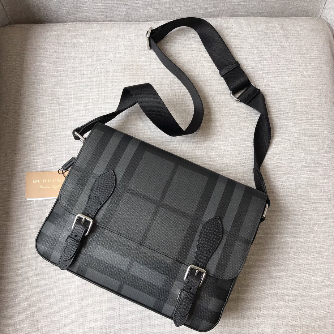 🤩🤩原单B家最新款 官网同步双扣男士邮差包5671.最经典最新款蓝格的咖啡烟熏搭配小牛皮,轻便耐用,尺寸:32.23.11,