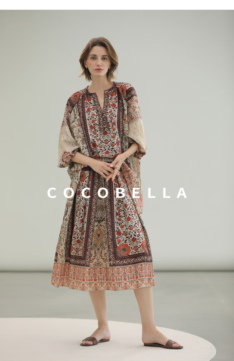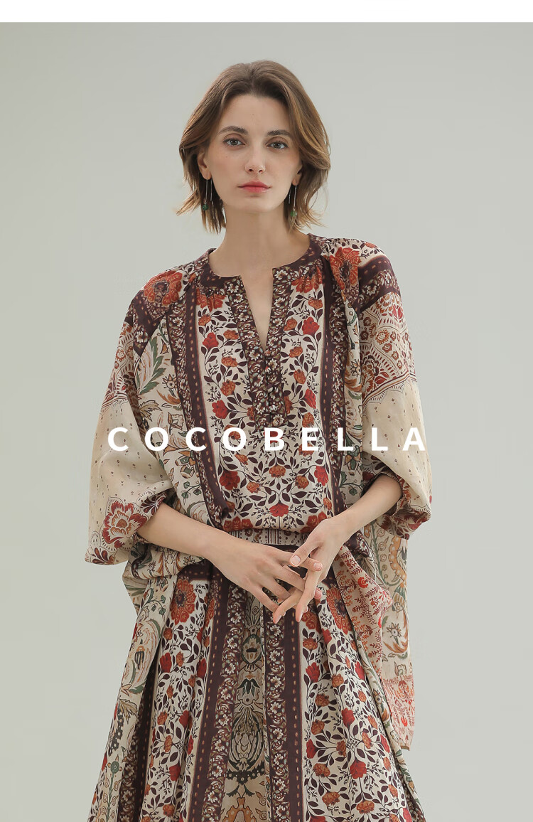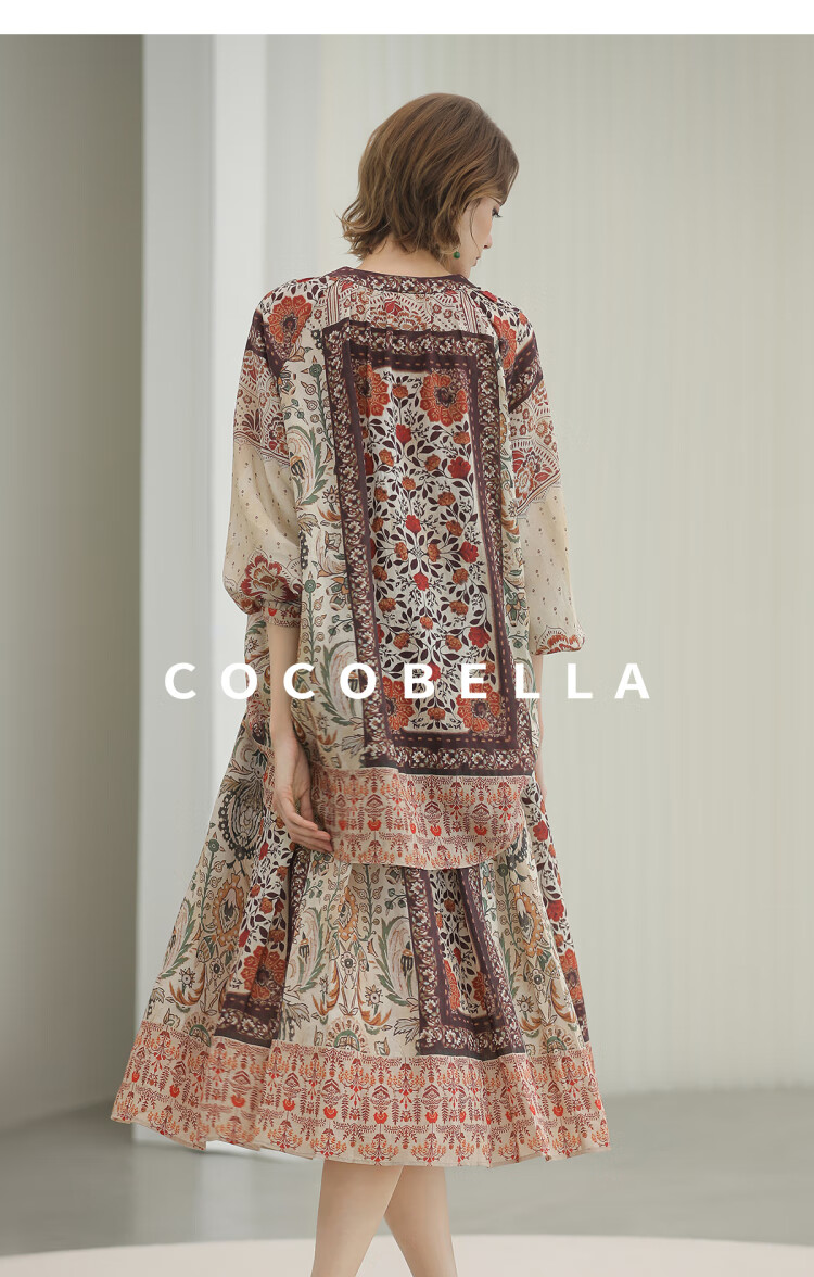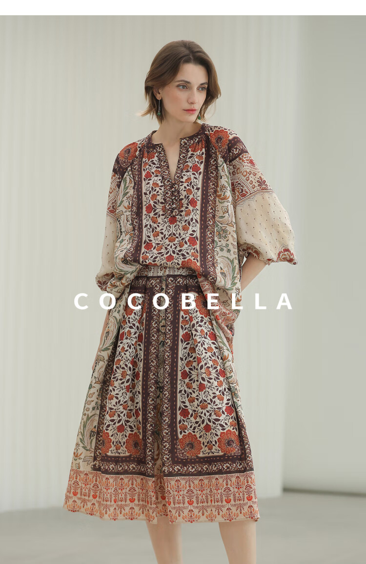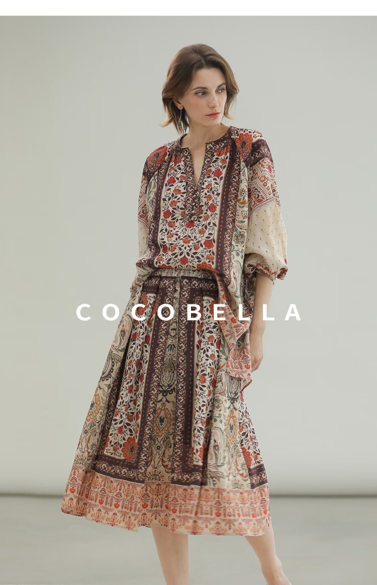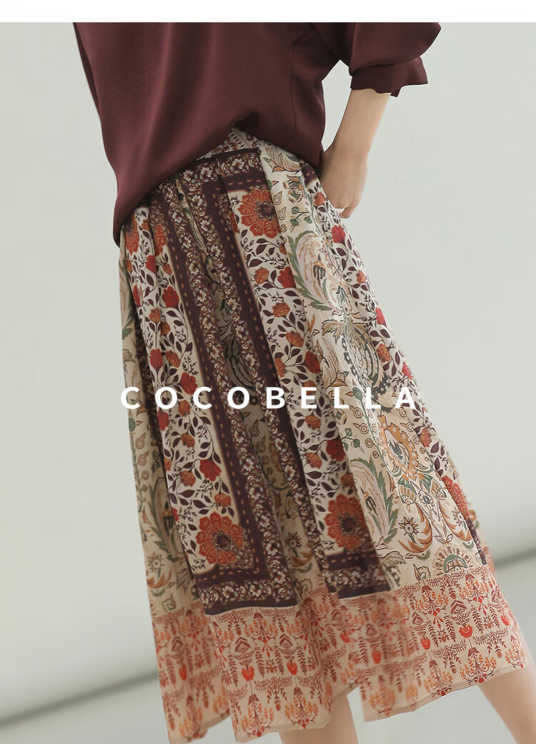 COCOBELLA度假风定位印花裁剪半身裙夏气质通勤大摆裙HS7050