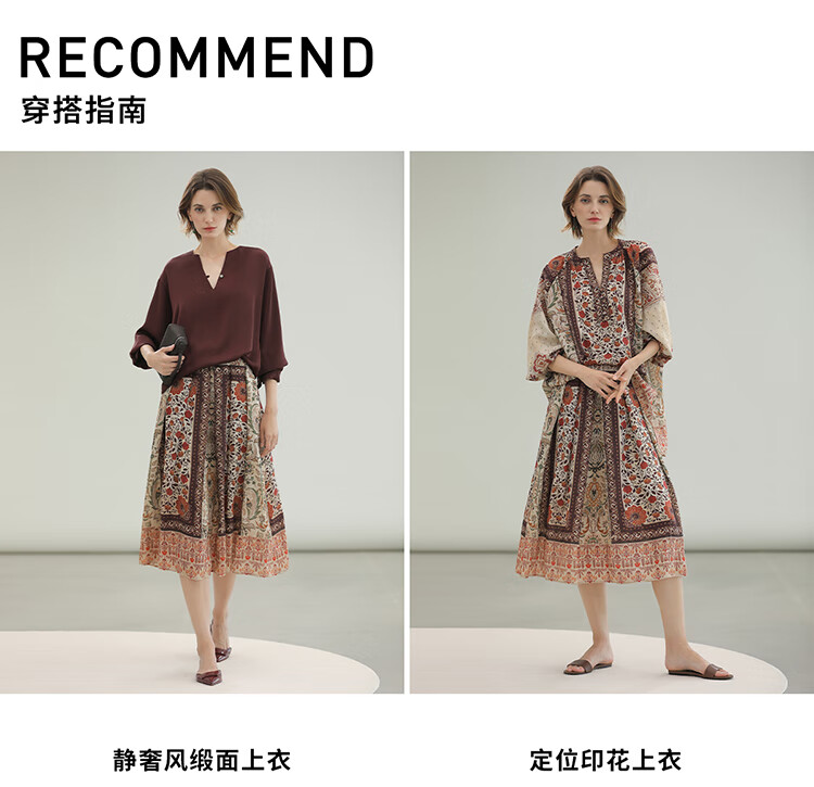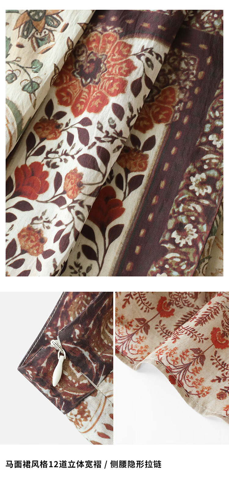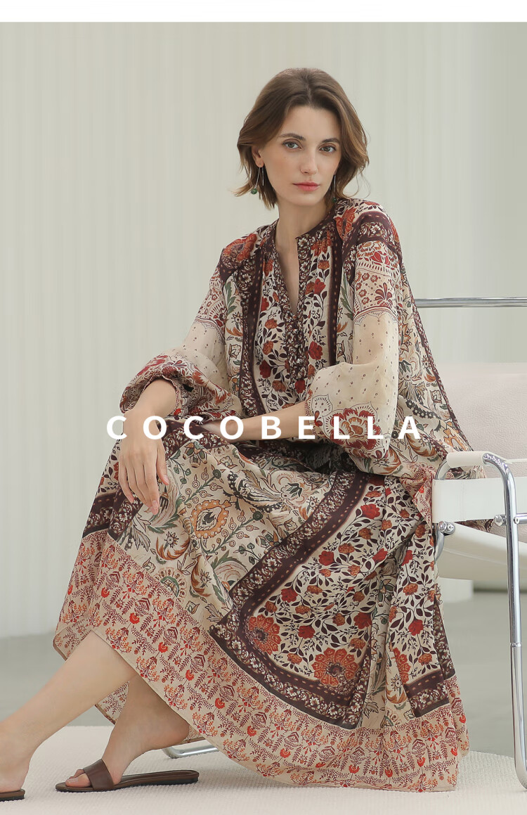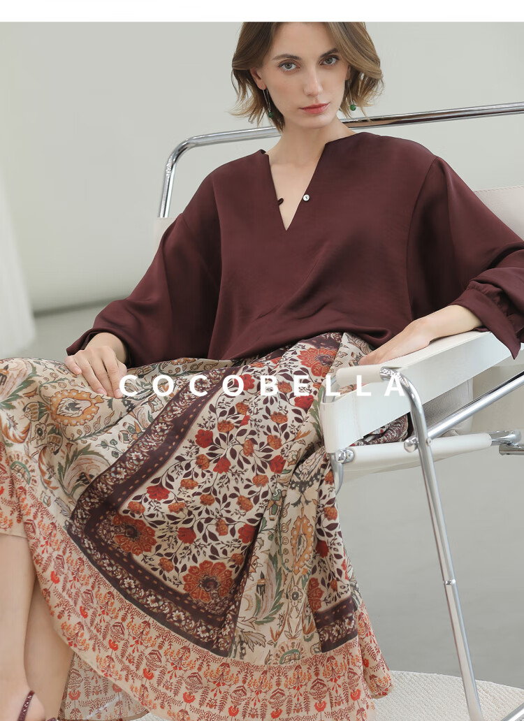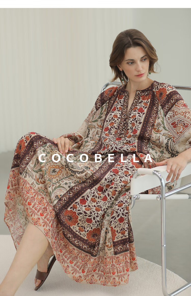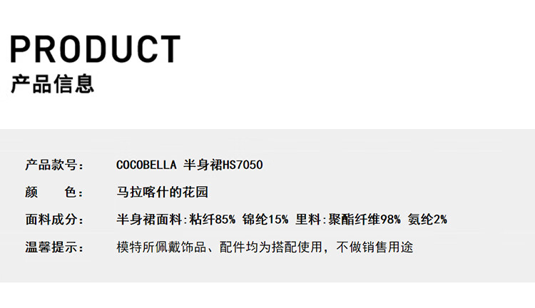 COCOBELLA度假风定位印花裁剪半身裙夏气质通勤大摆裙HS7050