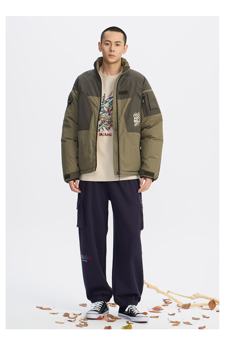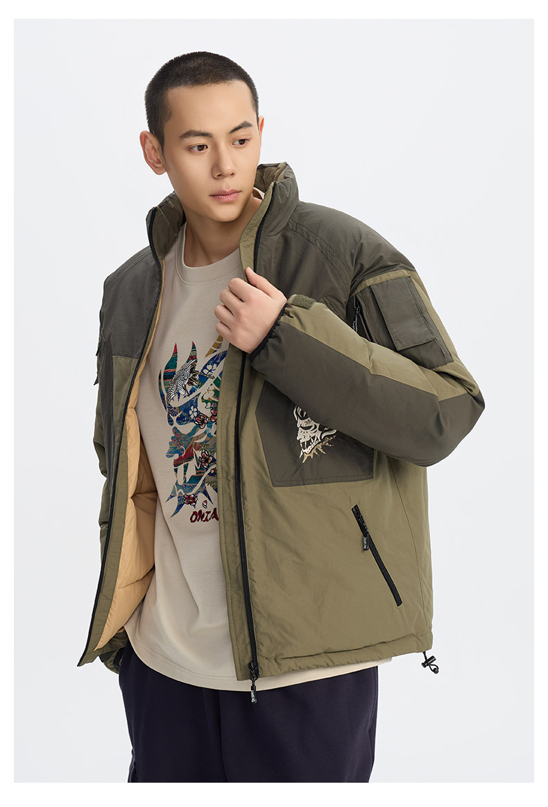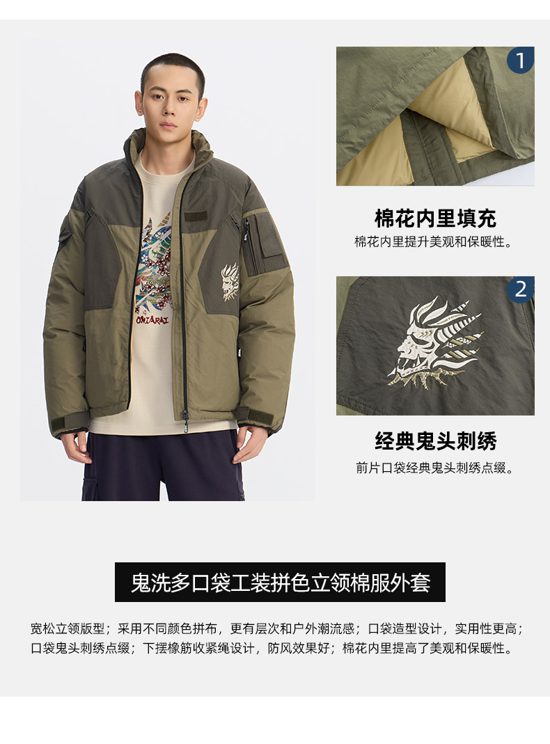 ONIARAI/鬼洗25秋冬新品多口袋工装拼色立领棉服外套男式 B340243
