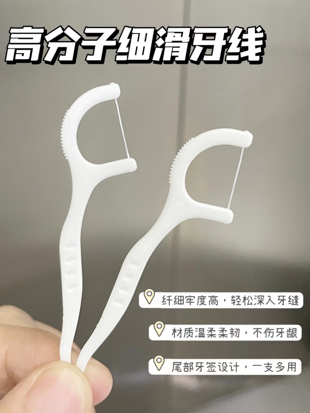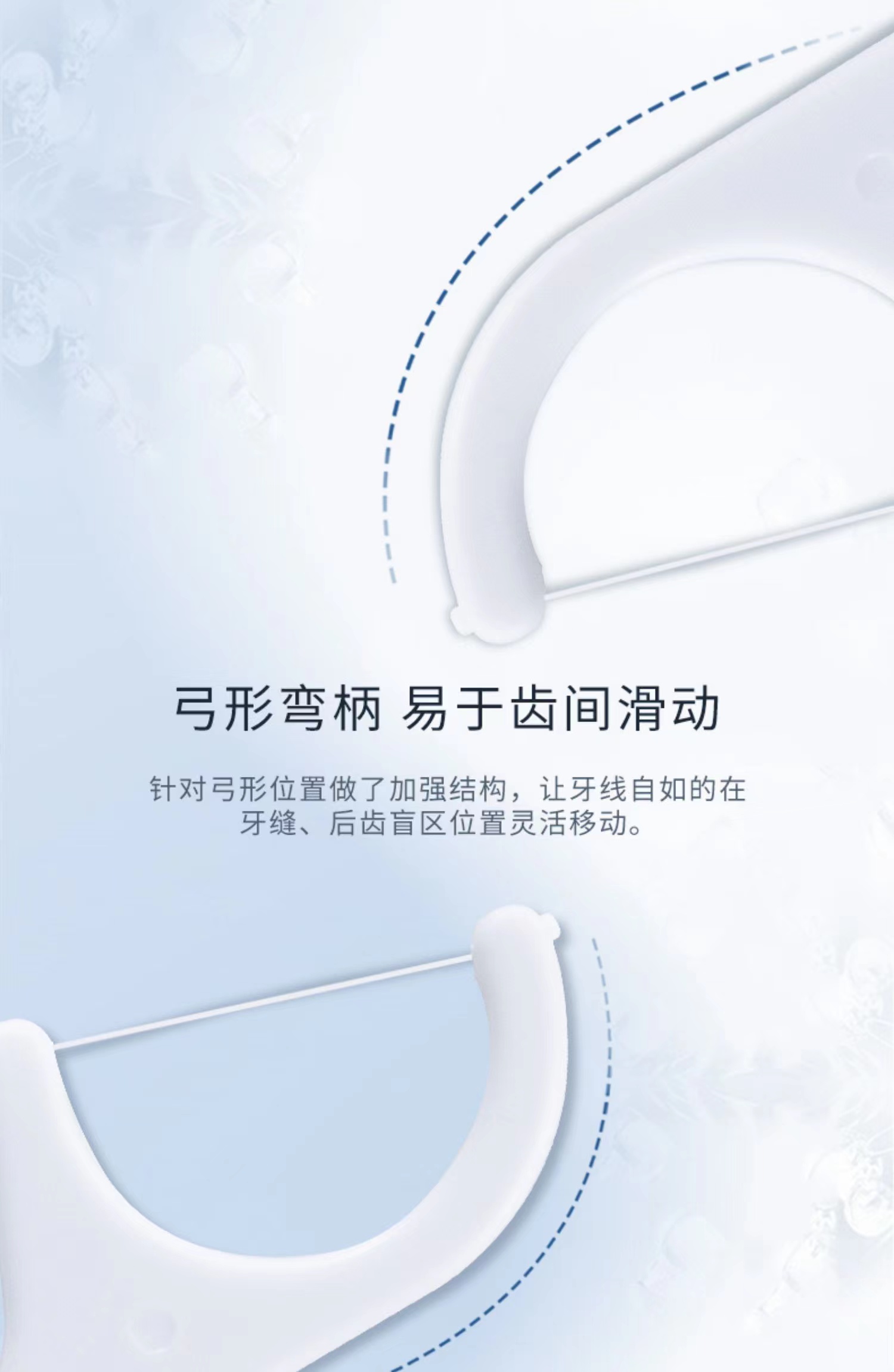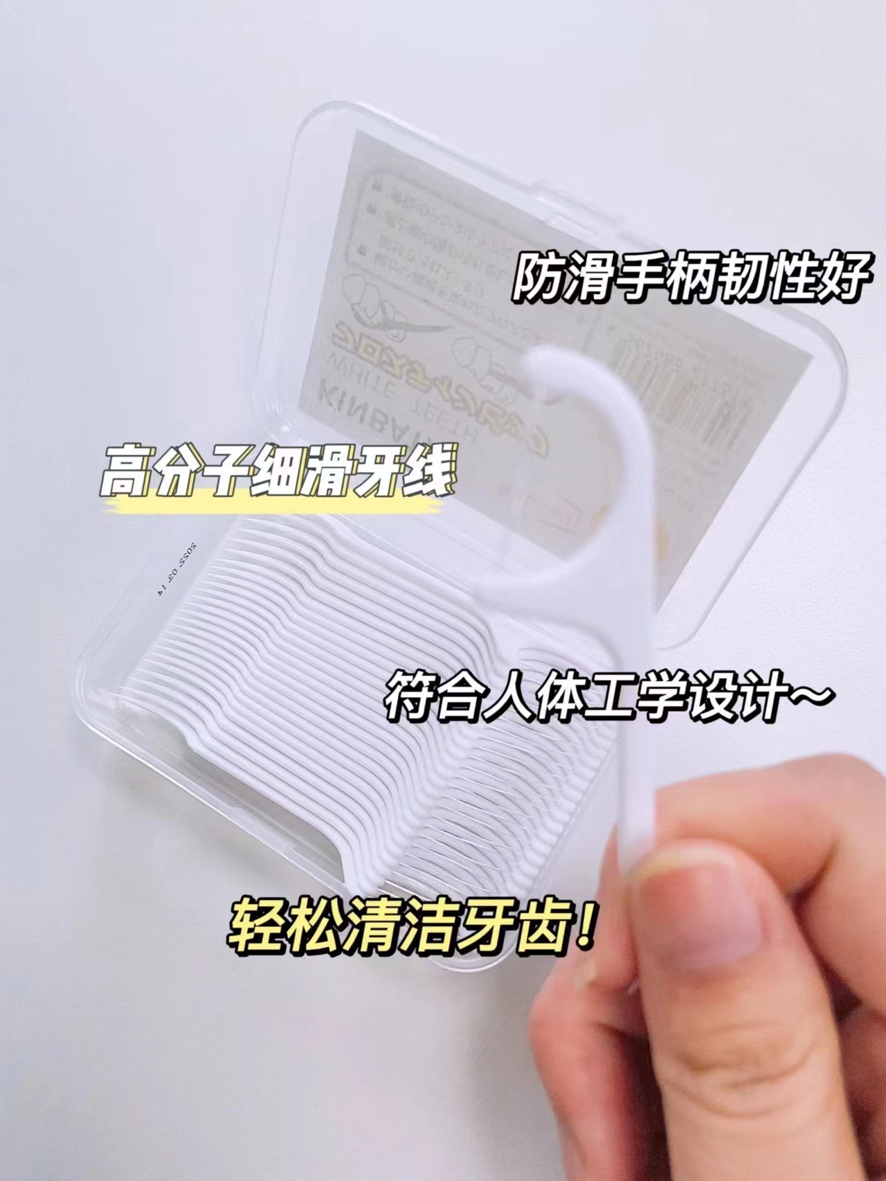 高分子细滑牙线,防滑手柄柔韧性好,深入清洁口腔牙缝死角,轻松清洁牙齿,展现自信笑容!