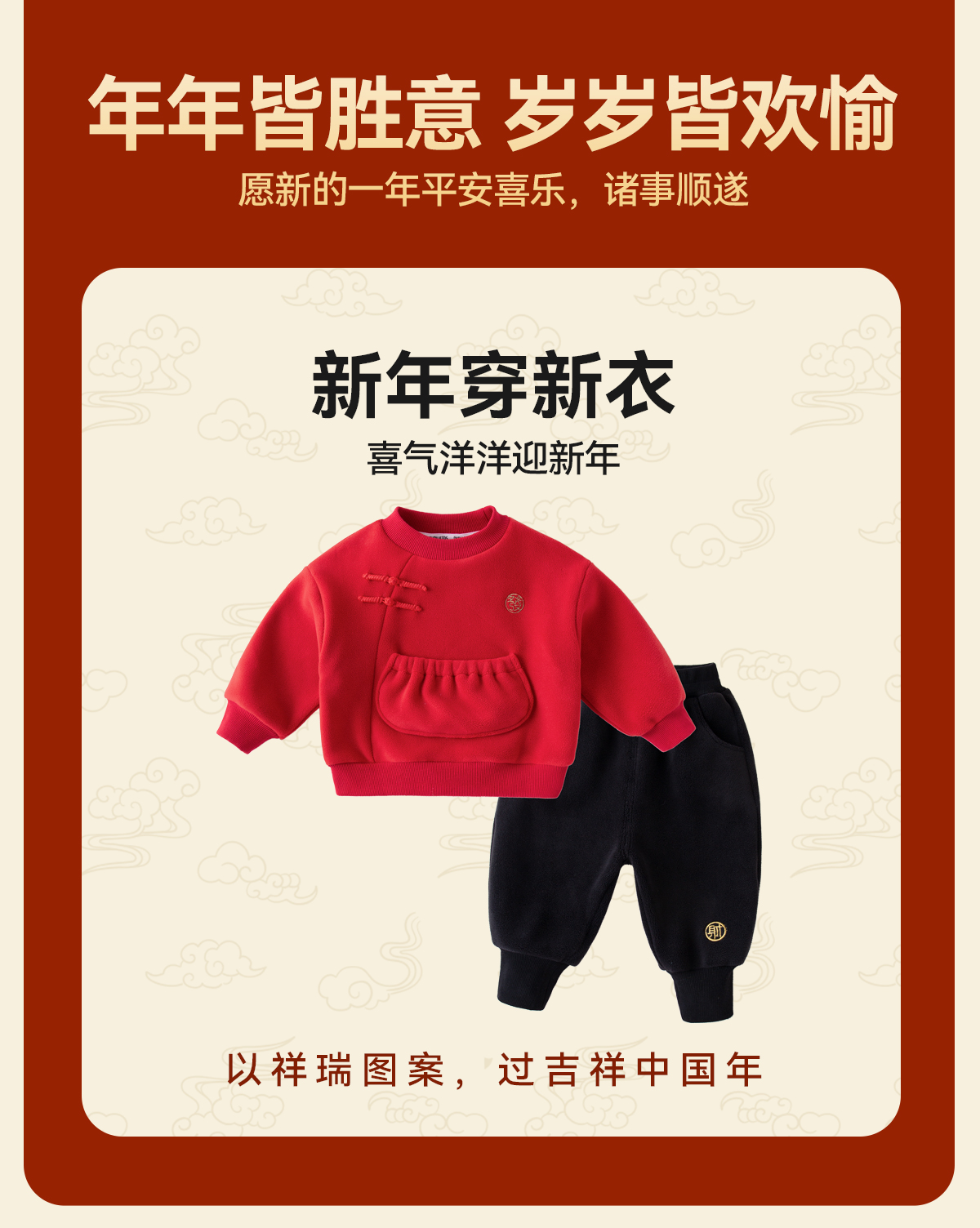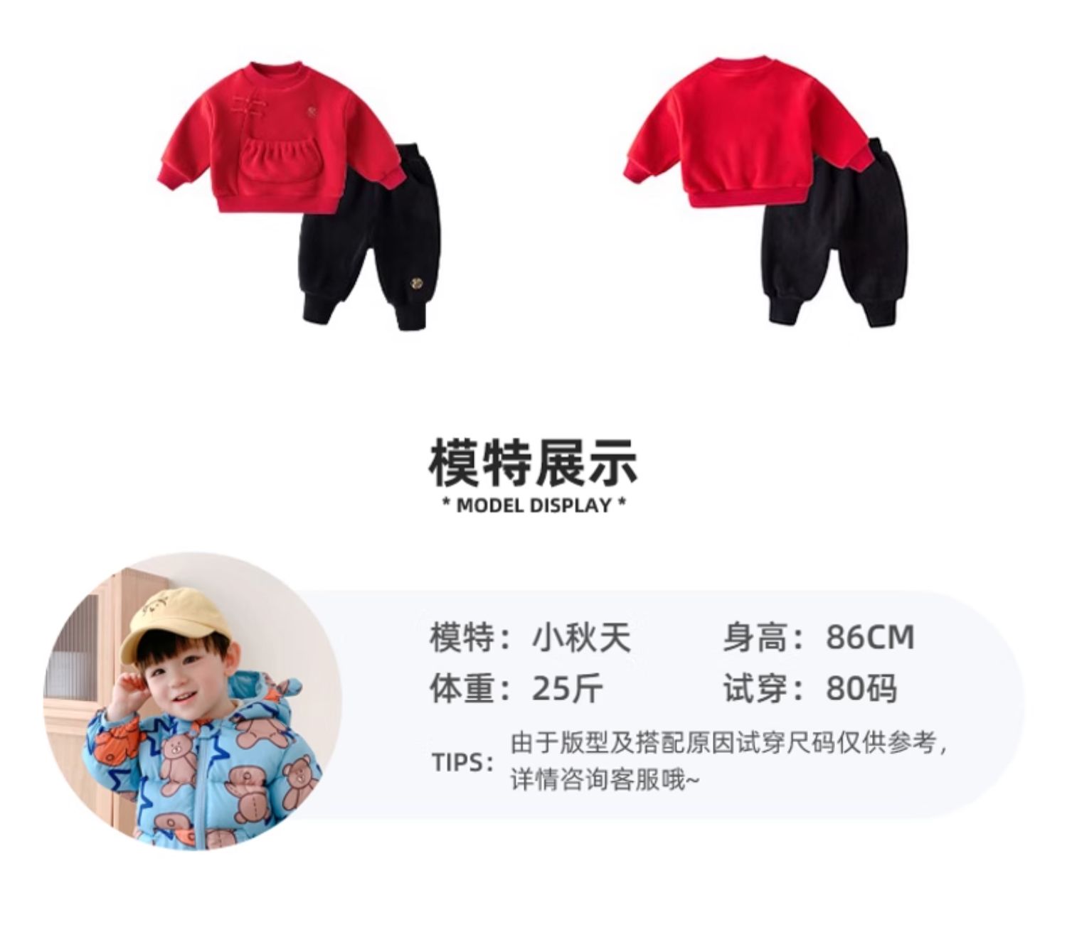 【曼龙严选】清仓80码,宝宝新年装套装婴儿中国风拜年服男童女童唐装过年服周岁冬