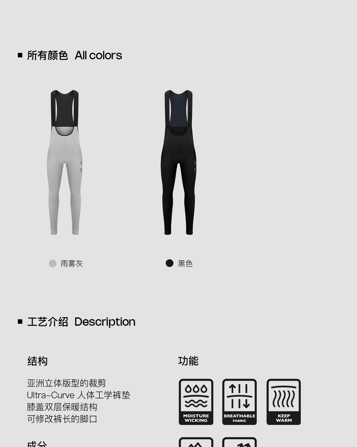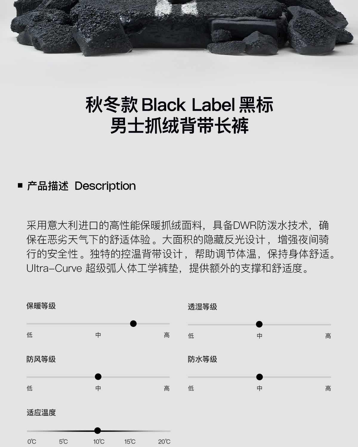 GRC桀骜无尽 Black label 黑标系列秋冬款抓绒骑行背带长裤男士