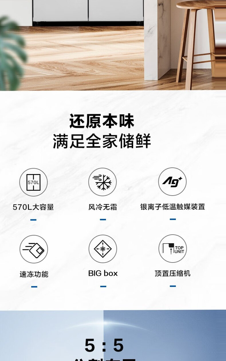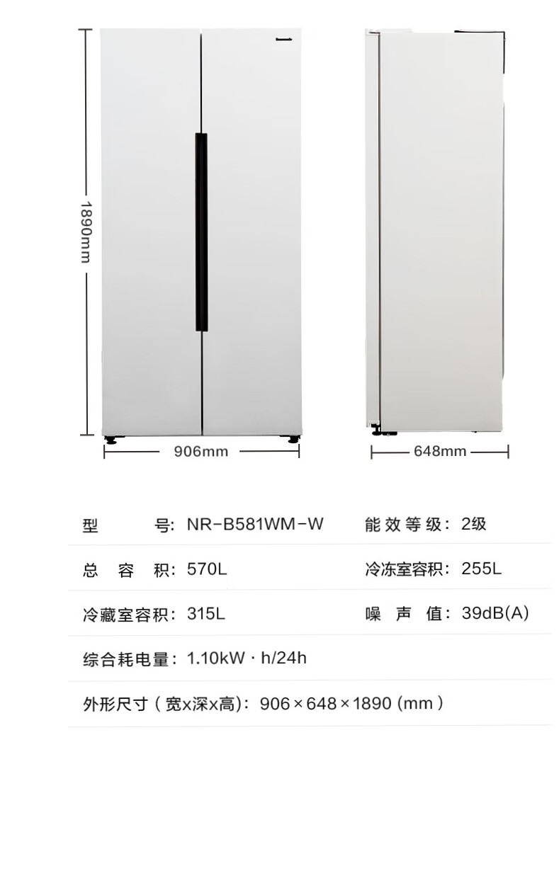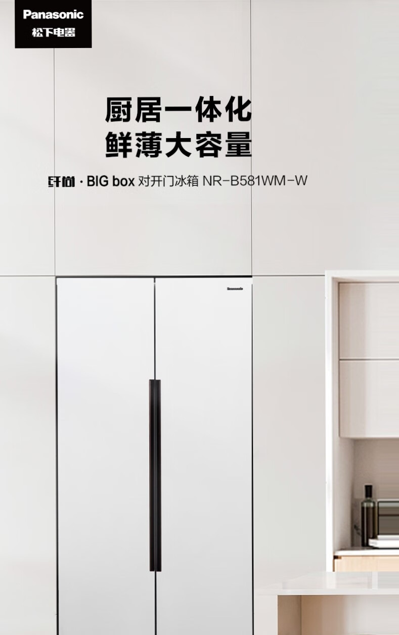 【新品家电】松下(Panasonic) 570升 超薄身 顶置压缩 银离子 风冷无霜 对开门冰箱 NR-B581WM-W