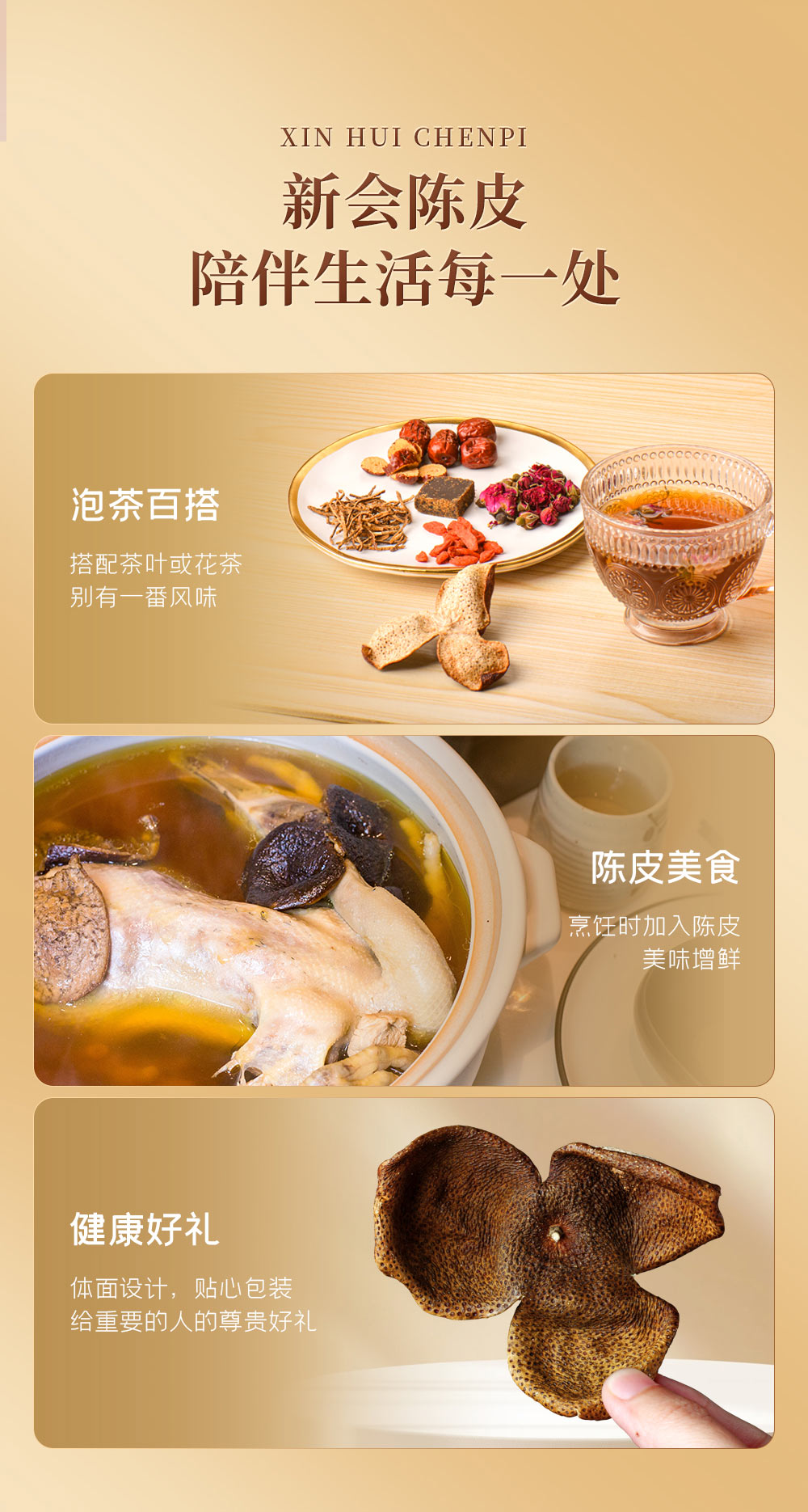 陈皮村2021年梅江100g核心产区正宗道地新会陈皮泡茶煲汤广东特产礼盒装