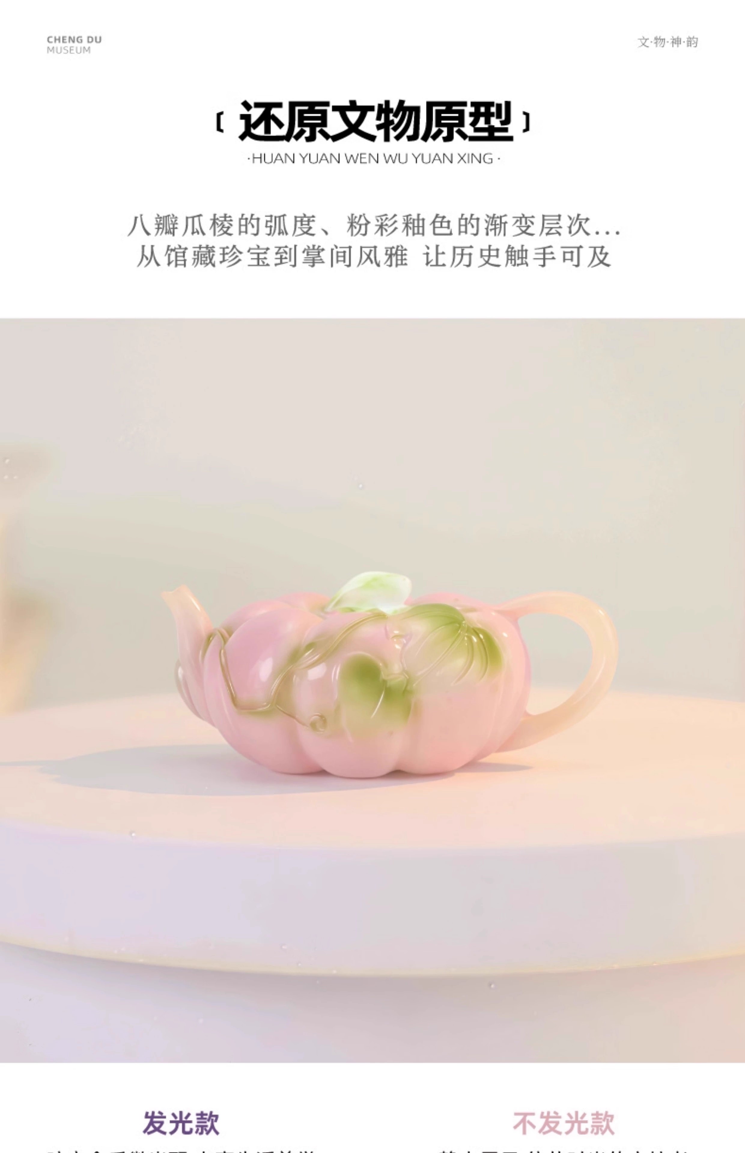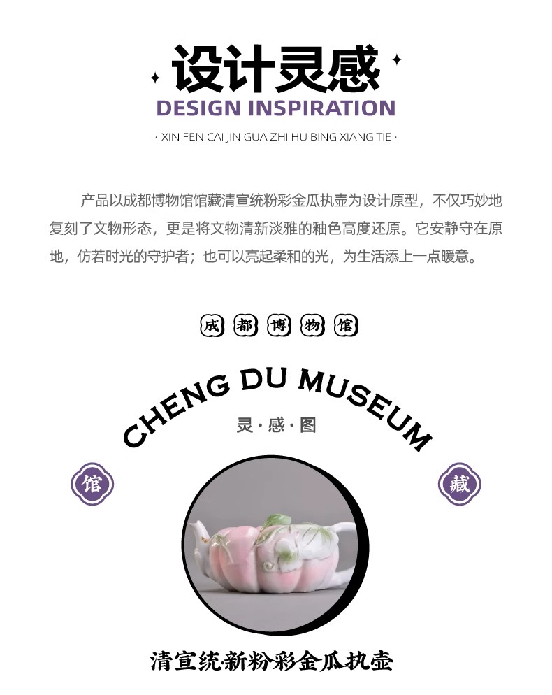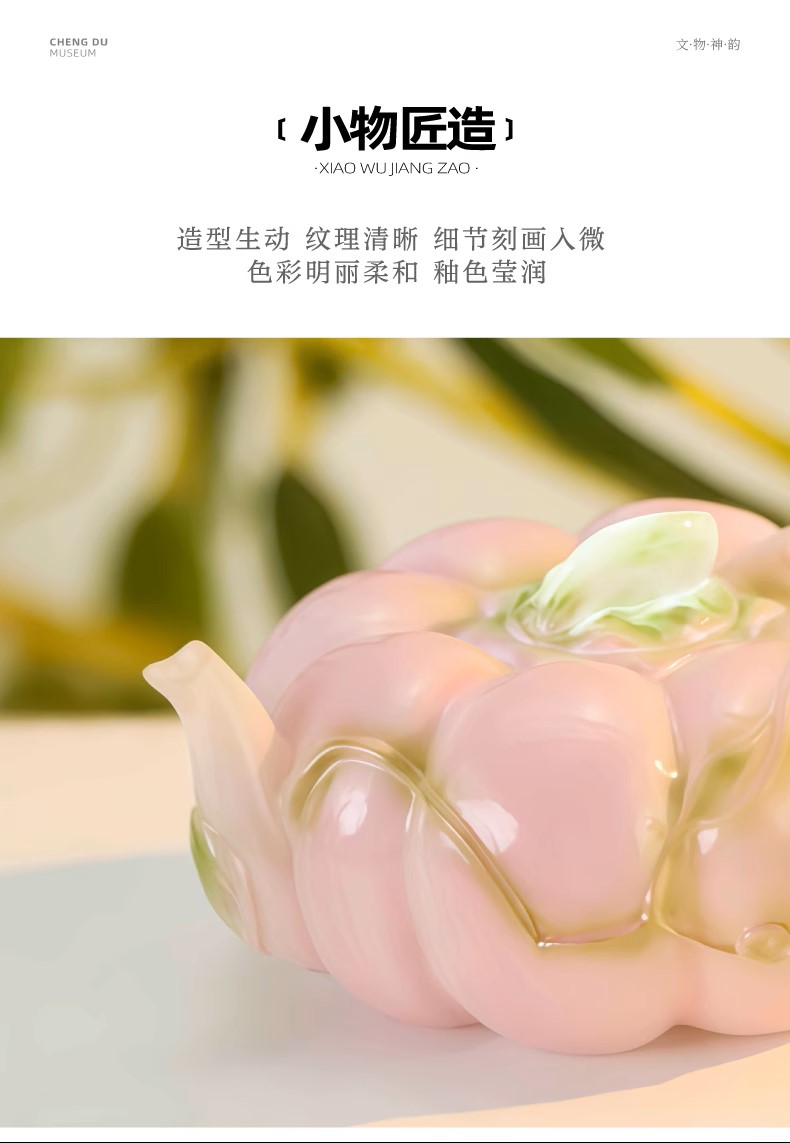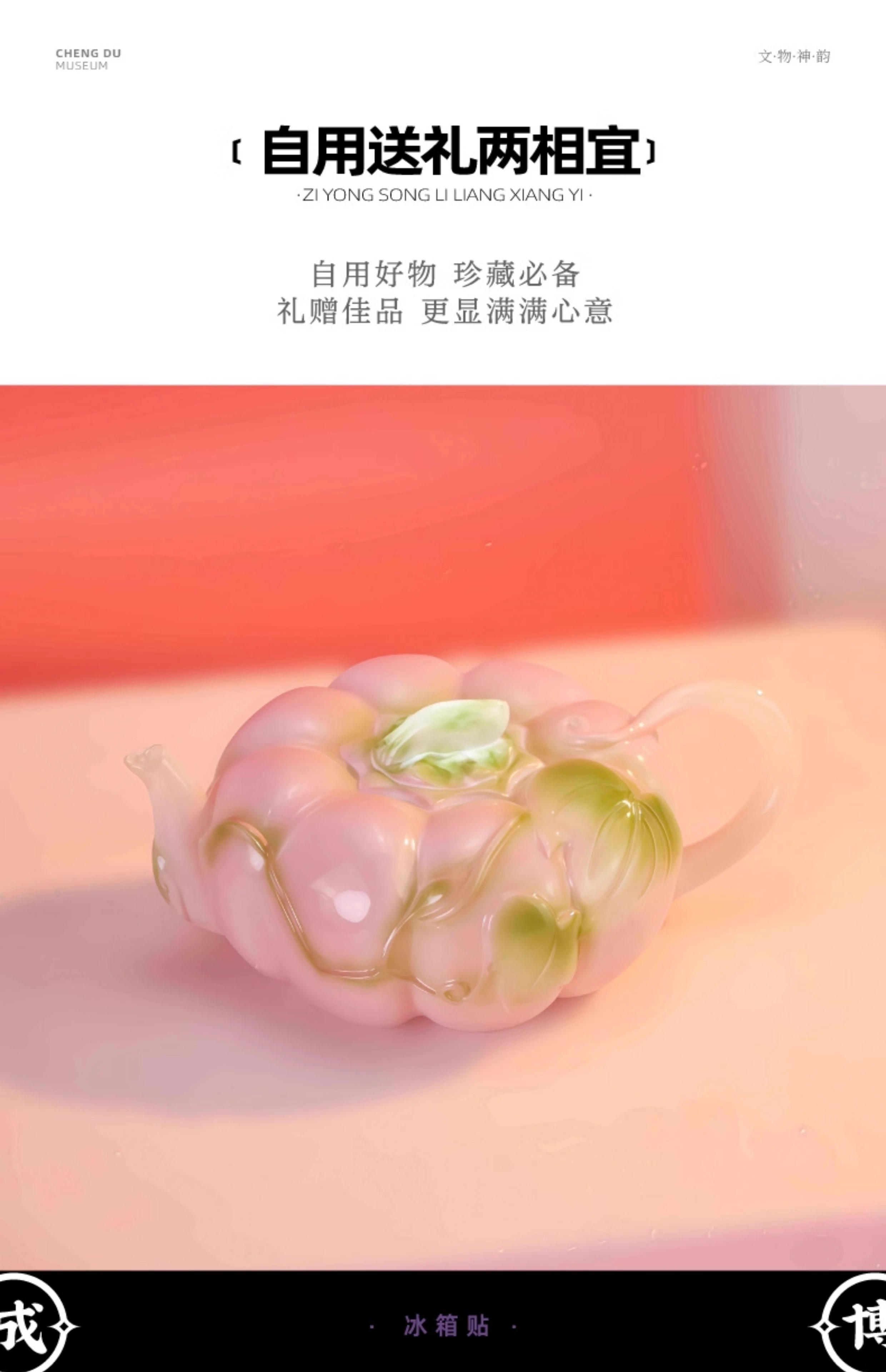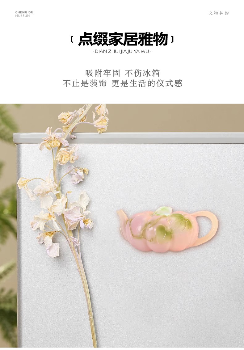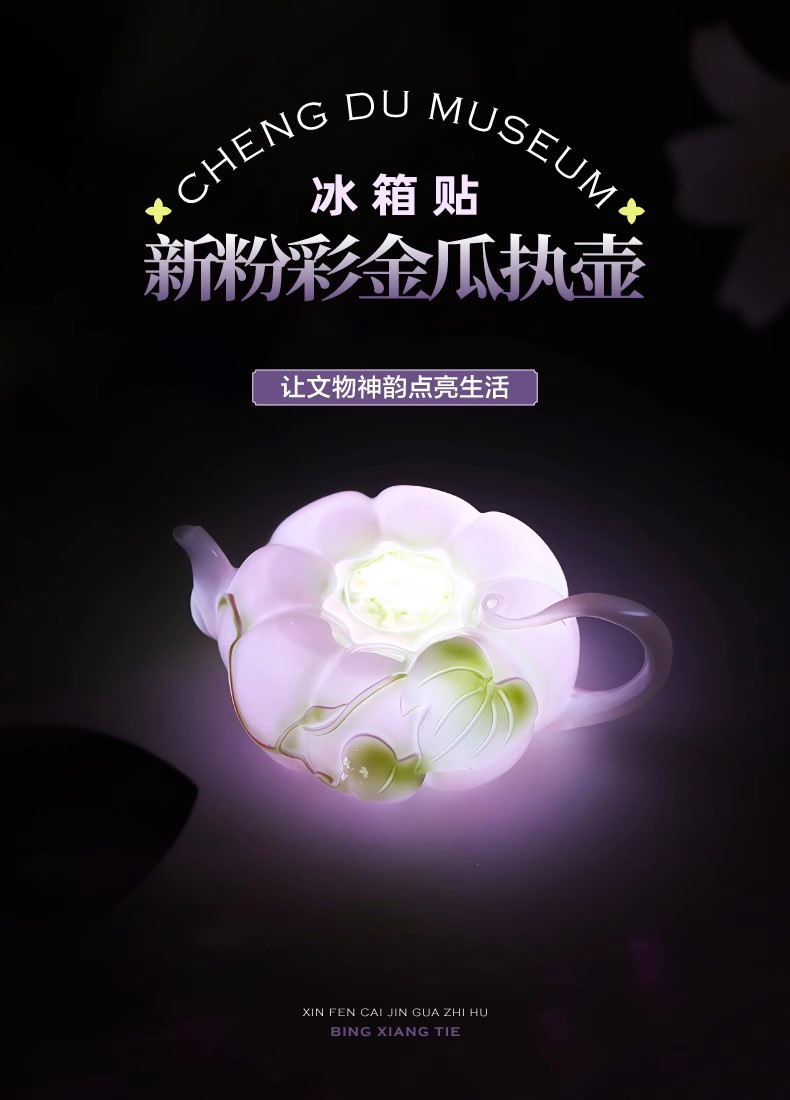 成都博物馆正版新粉彩金瓜执壶立体发光冰箱贴旅行纪念品送朋友