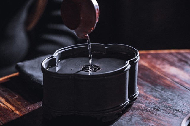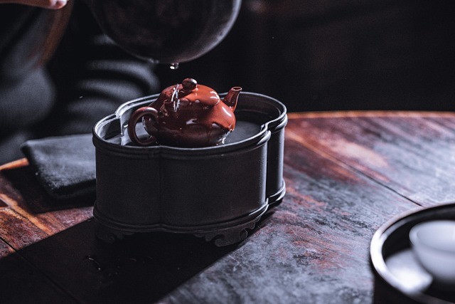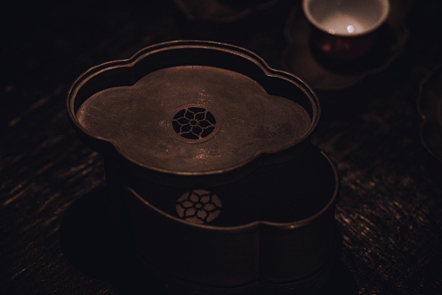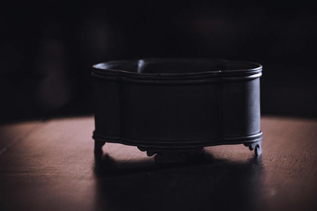 器型来源于民国时期,经典的潮州工夫茶壶承。犹如海棠花开,长宽有致,中庸内敛,小巧精美。长宽高比例协调,与器物百搭,锡地质感强烈。在茶席间,整器造型端庄雅致,素净古朴,不争不抢,美感十足。