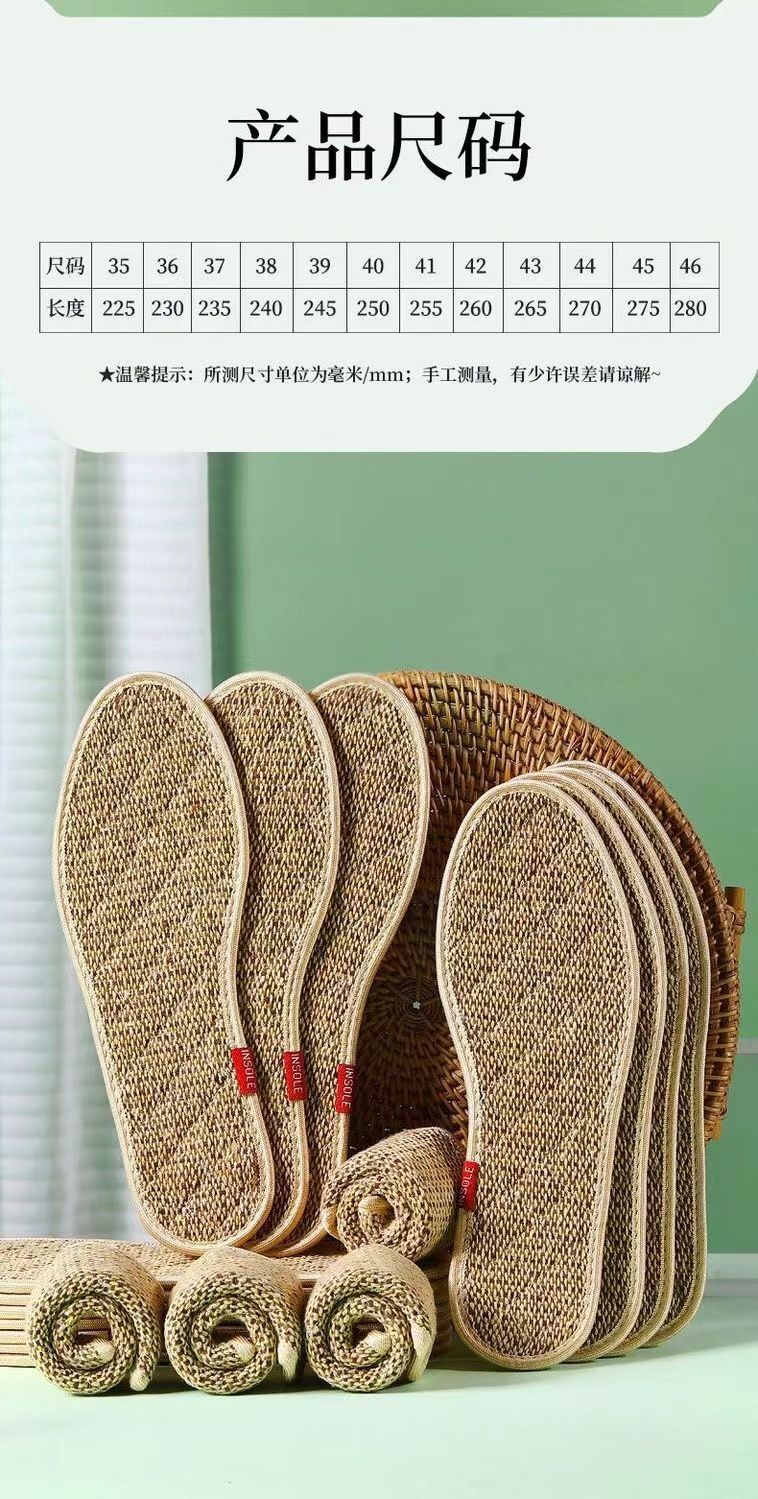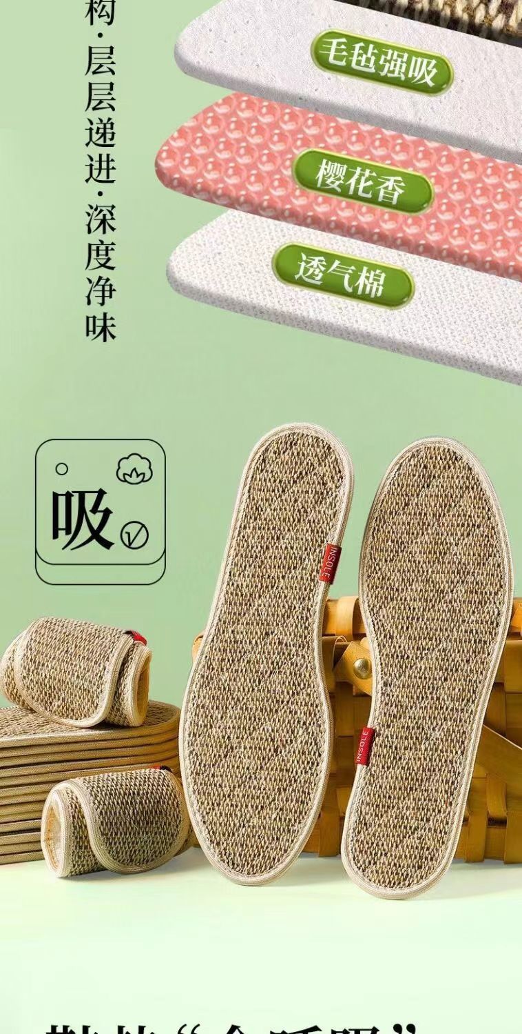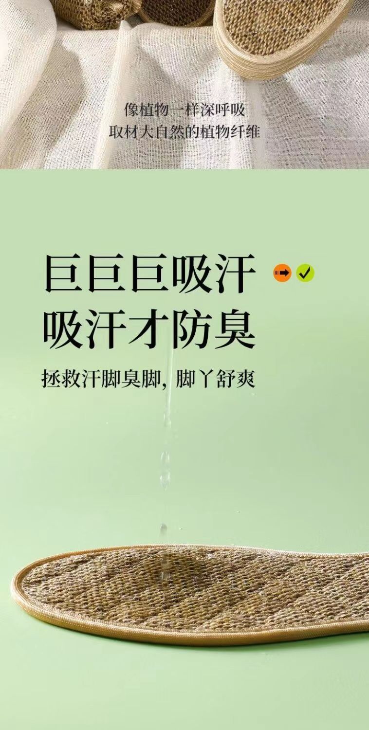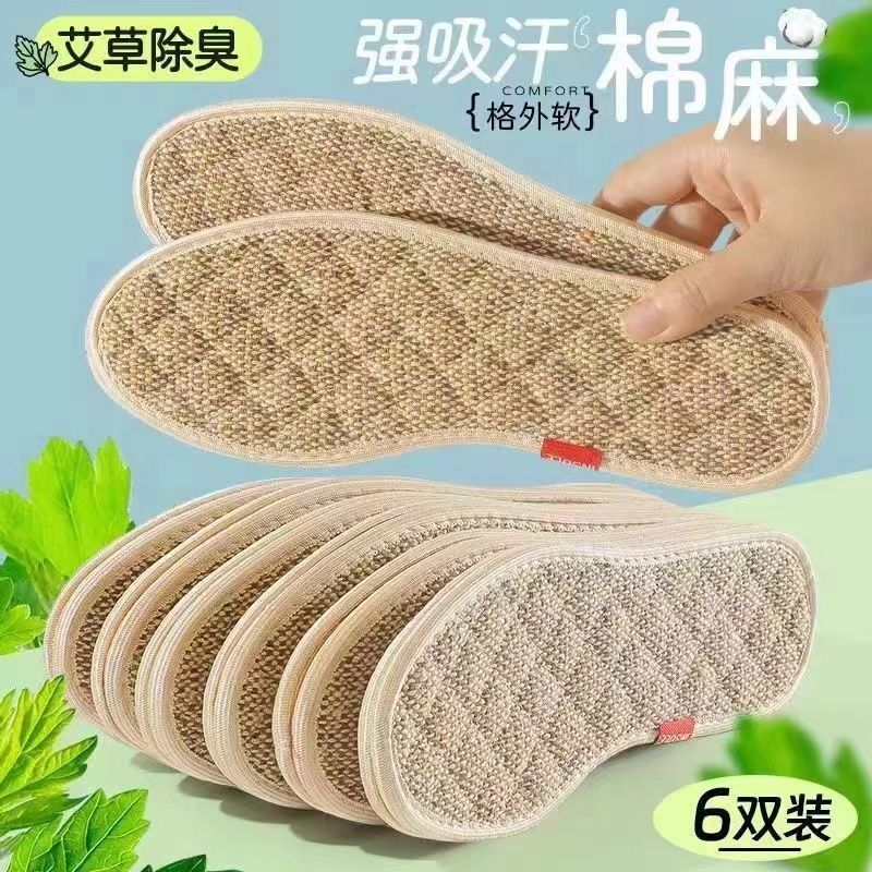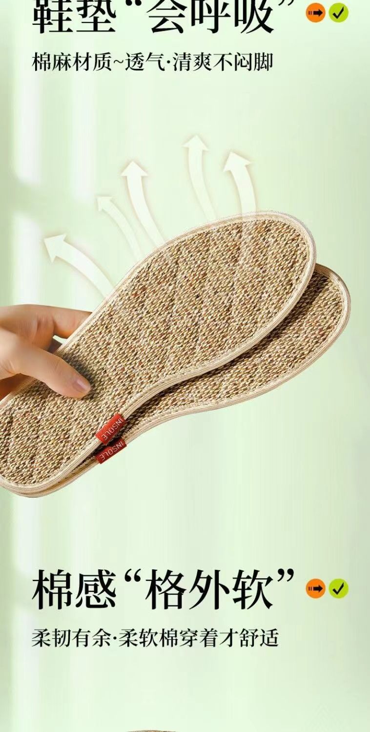 「9.9到手8双!棉麻鞋垫」鞋垫男吸汗鞋垫四季棉麻鞋垫女款干爽透气软底草本除臭鞋垫配饰
