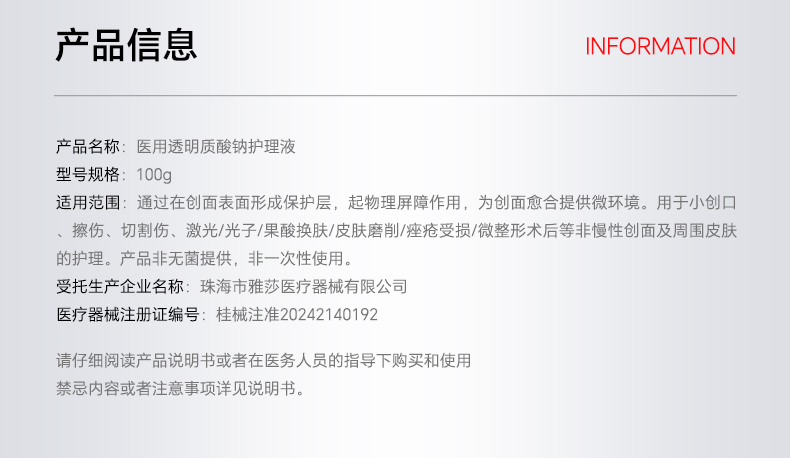 ZQ-II再启 医用透明质酸钠护理液100g 械字号喷雾 医美术后 促进创面愈合