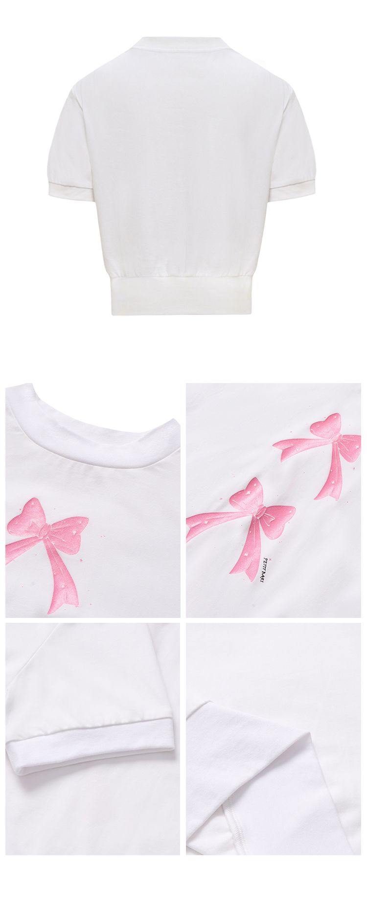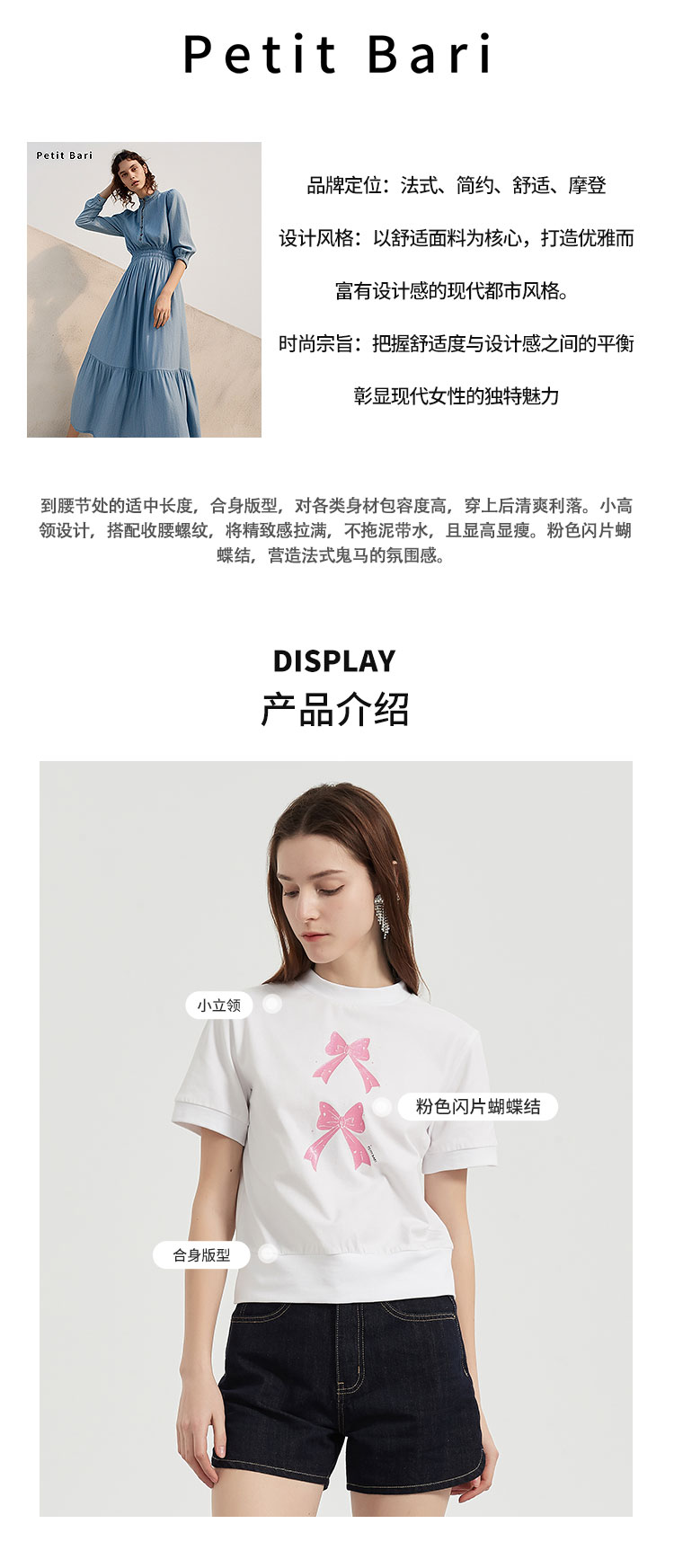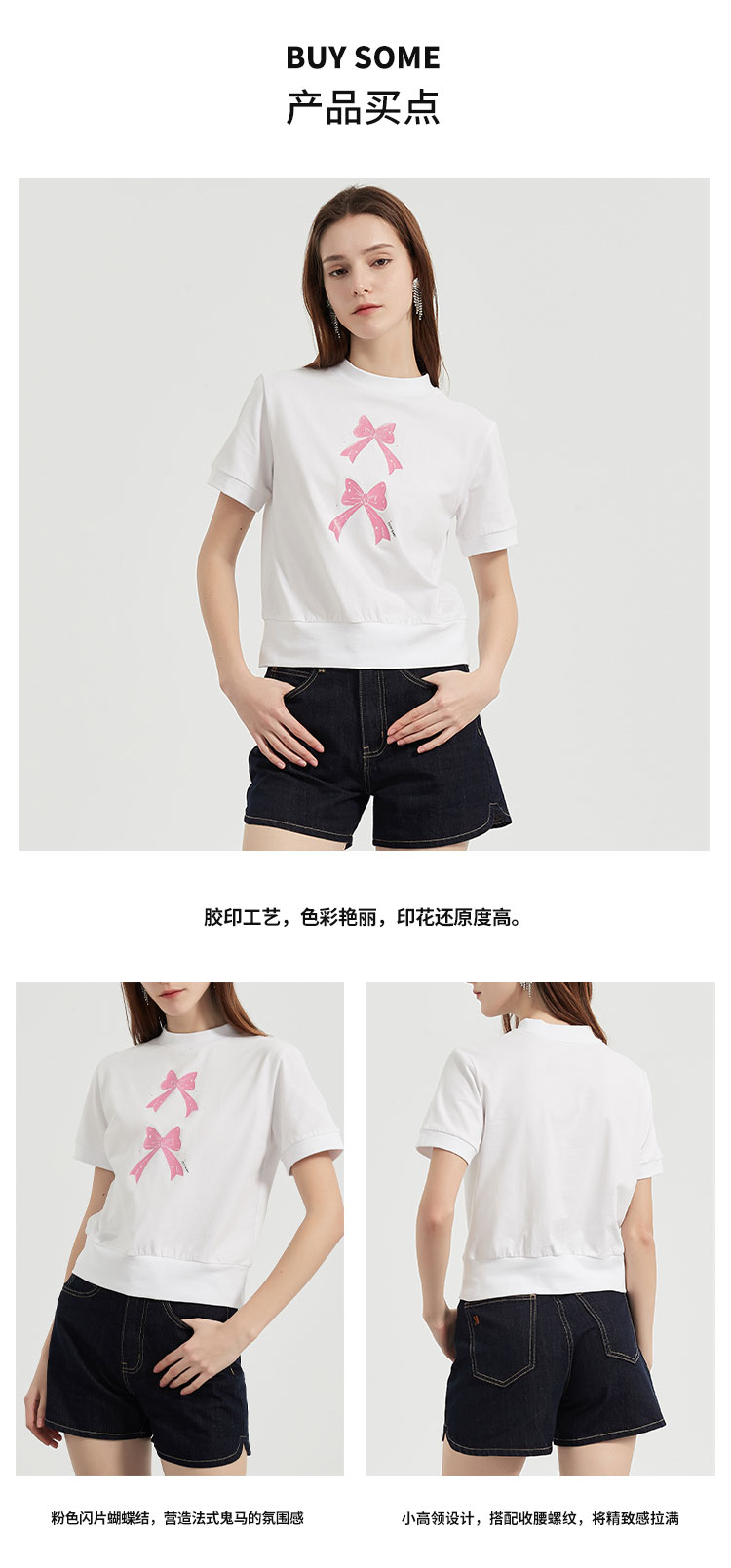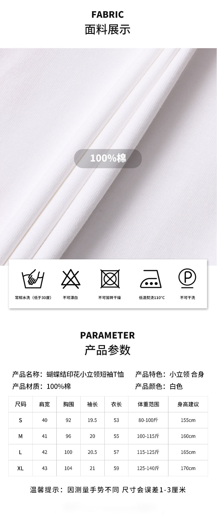 【2件9折】【Petit Bari】蝴蝶结印花小立领短袖T恤休闲