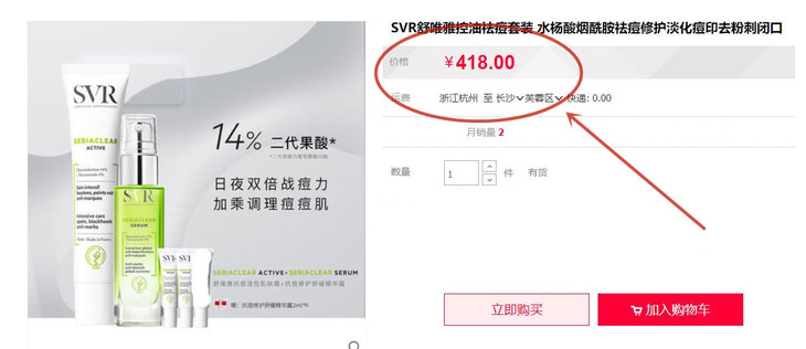 商品名称:【新品】SVR舒唯雅控油祛痘套装 百痘霜40ml+抗痘清痘精华30ml