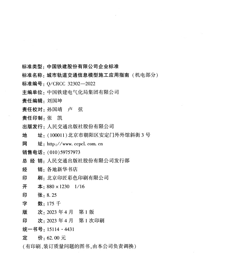 书名:城市轨道交通信息模型施工应用指南(机电部分)