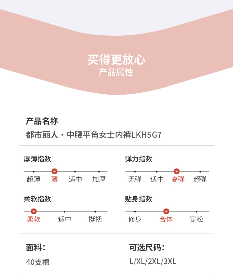都市丽人宽版包覆系列40支棉宽版包覆平角裤LKH5G7