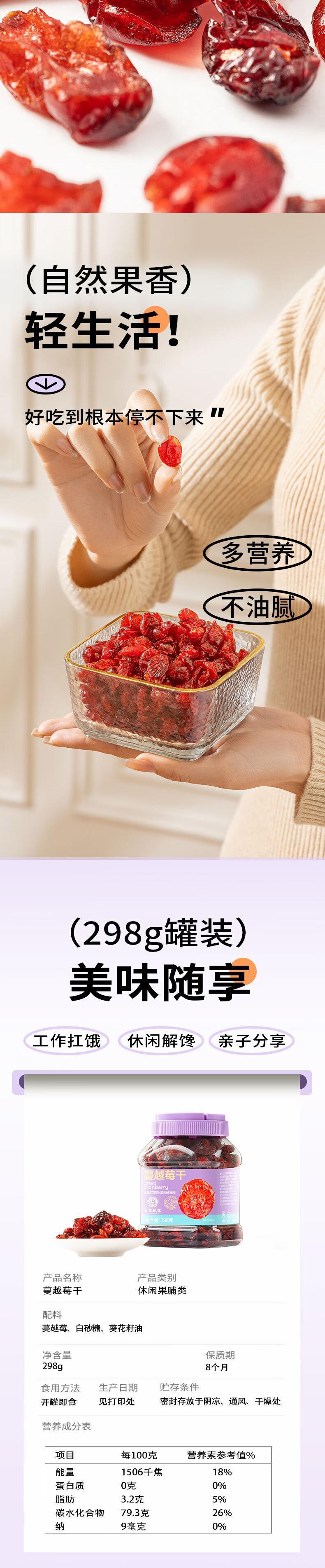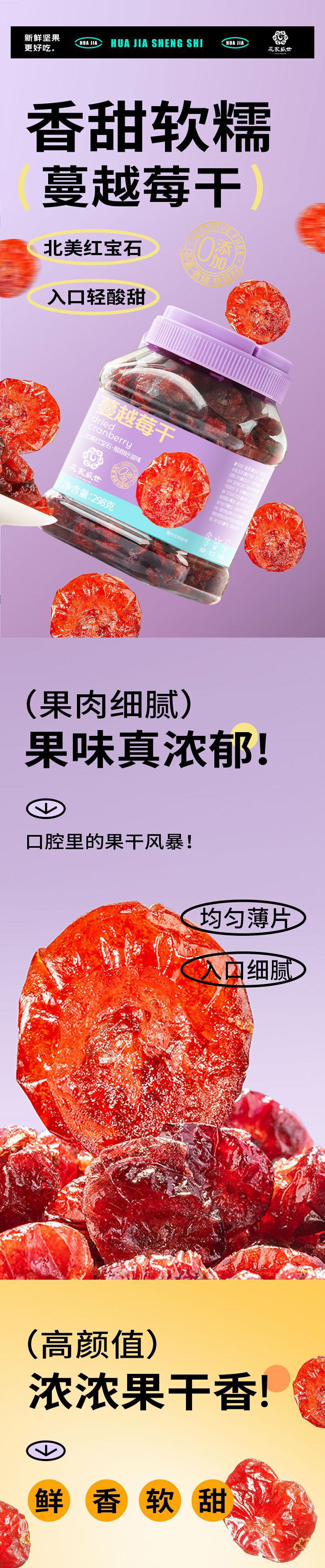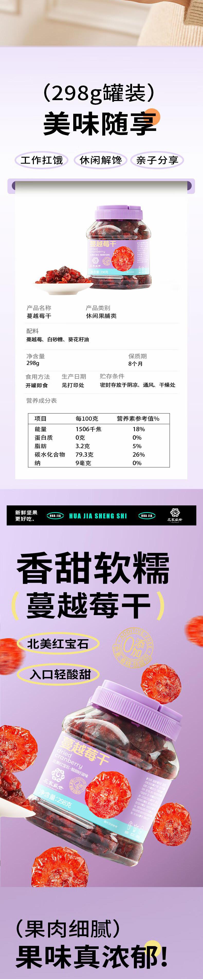 【自营】花家盛世 0添加蔓越莓干298g多巴胺罐装新鲜健康美味 HJSSJG013