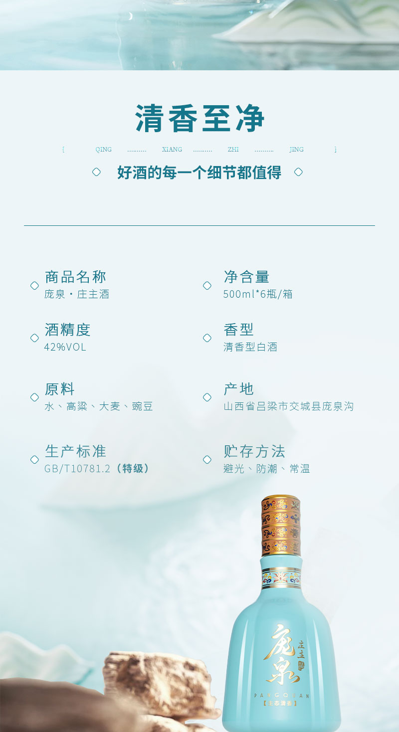 庞泉庄主酒商务高端清香型白酒42度500ml*6纯粮酒大曲酒整箱
