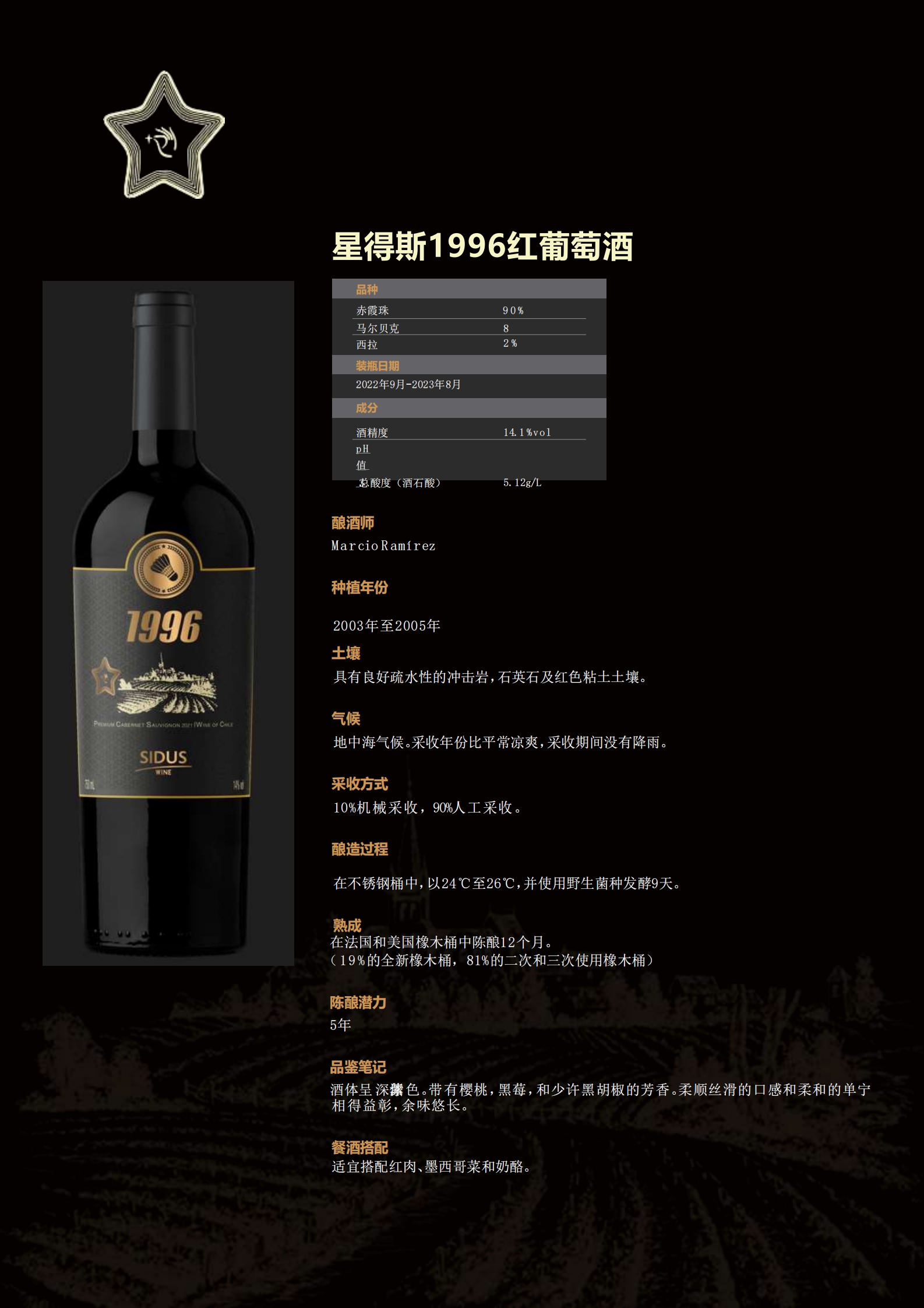 2.闻香:成熟的黑醋栗、黑樱桃、黑莓等黑色水果香气会占主导。