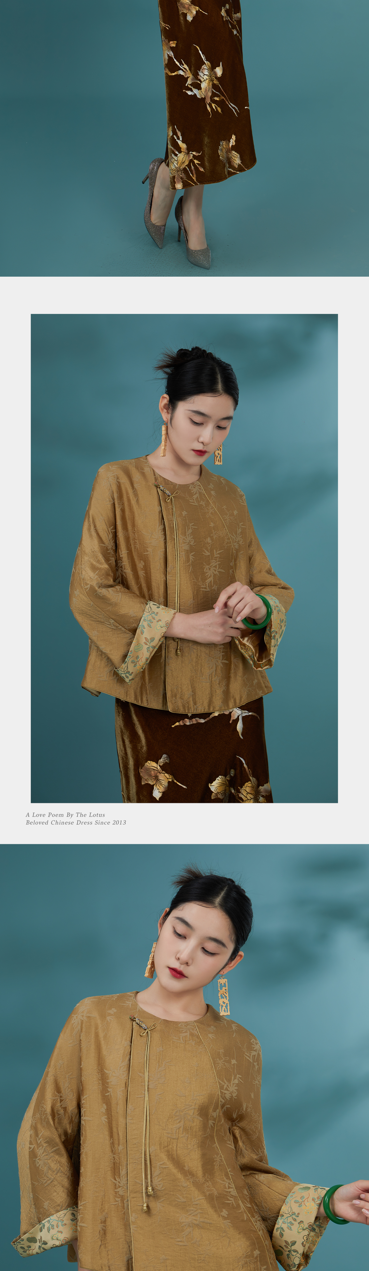 荷言GL 谁家玉笛 竹叶纹新中式外套黄色 袖口拼接非遗宋锦