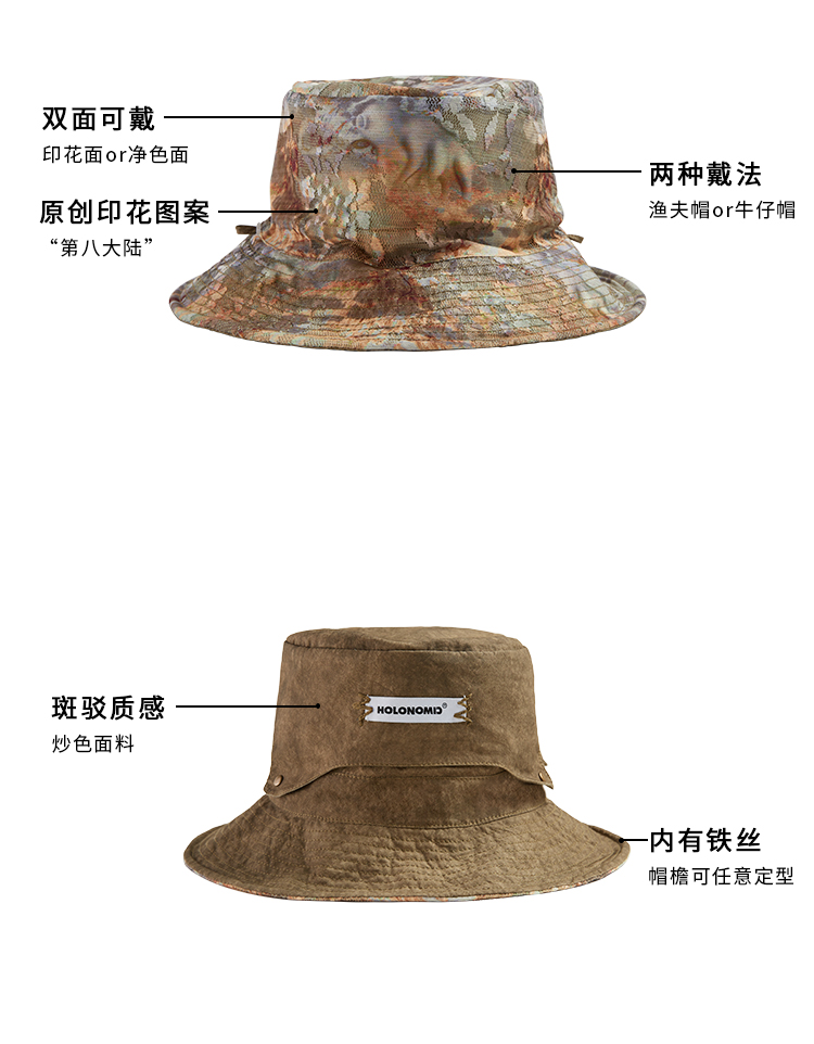 HOLONOMIC「第八大陆」原创印花双面戴渔夫帽