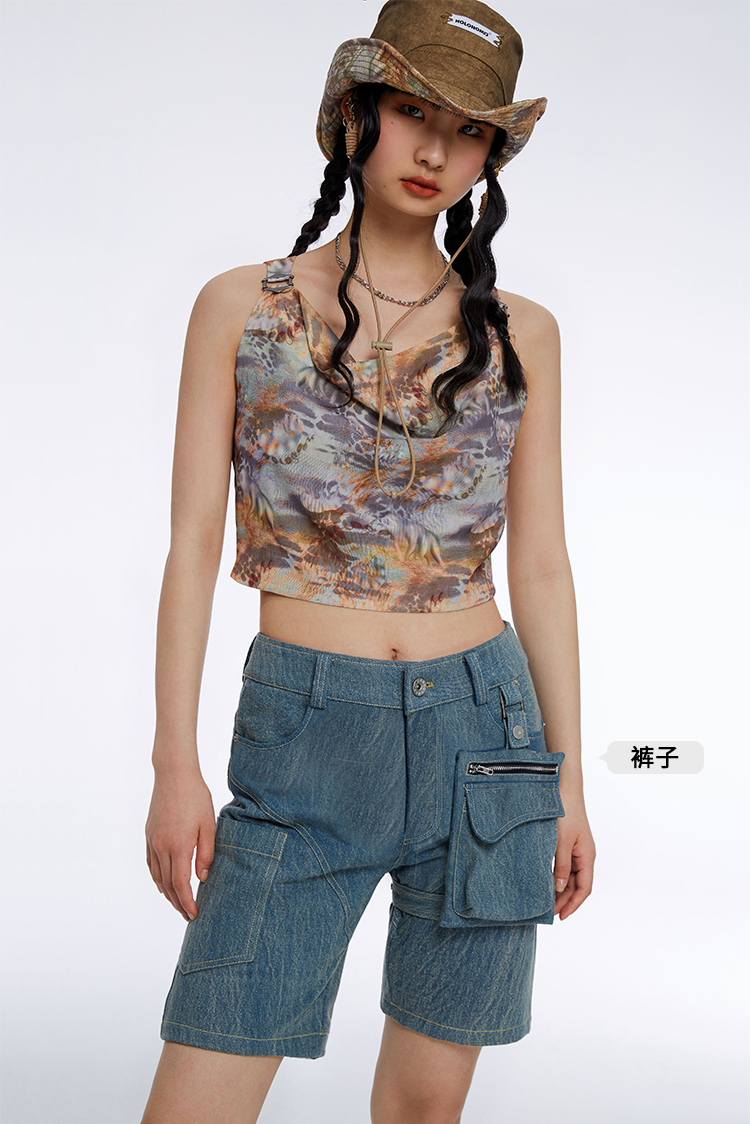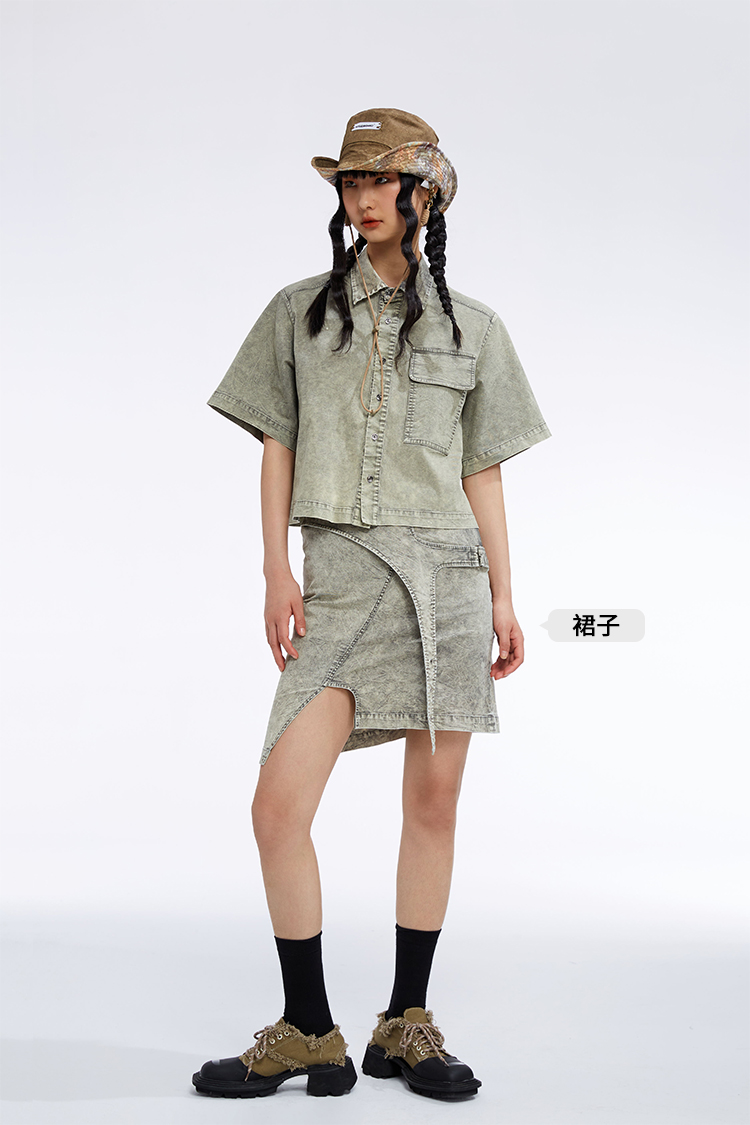HOLONOMIC 原创方领链条修身短款不规则甜酷辣妹短袖T恤上衣