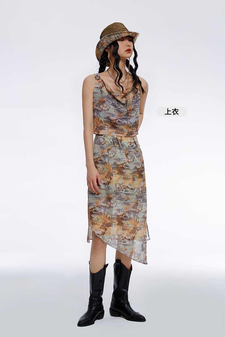 MATE-alinshouse撞色拼接吊带连衣裙