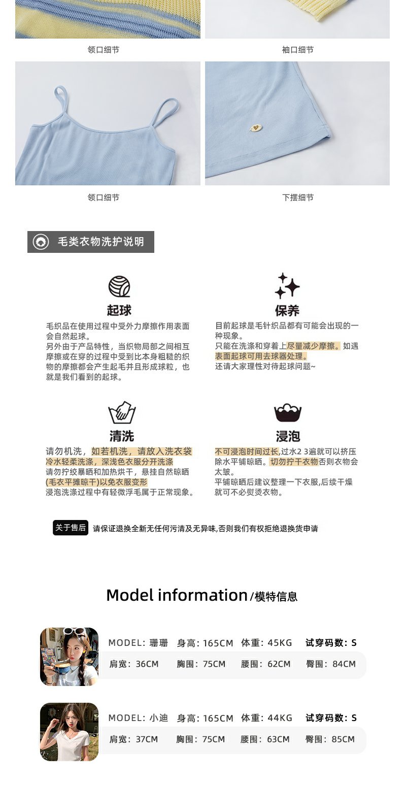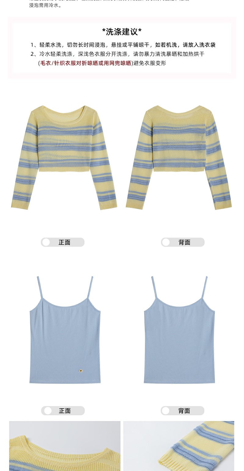 <曾小咸推荐>黄蓝条纹针织罩衫背心两件套