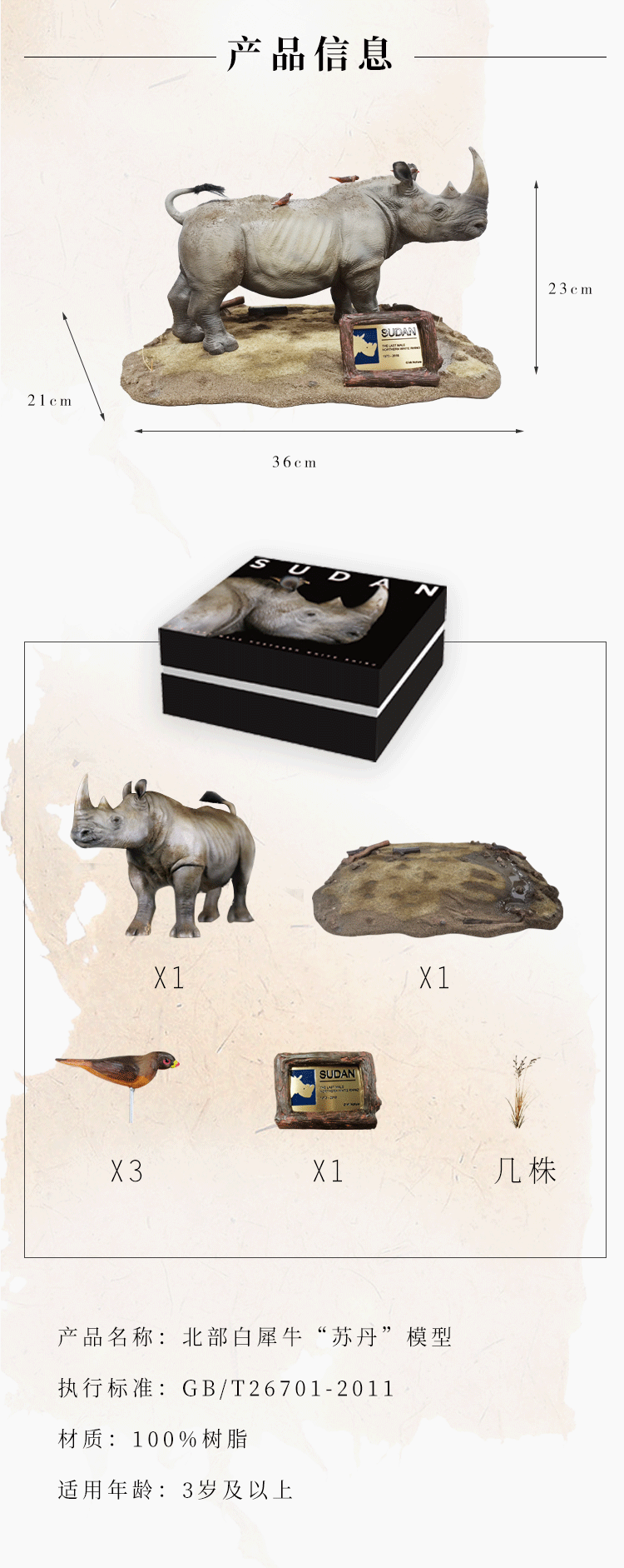 雄性北部白犀牛“苏丹”模型收藏模型摆件