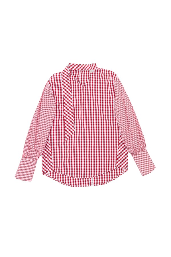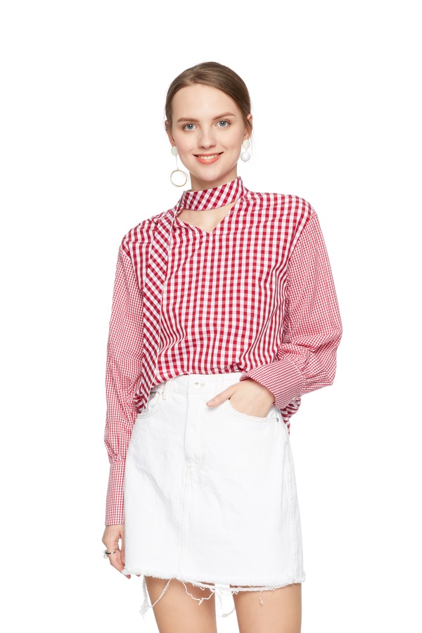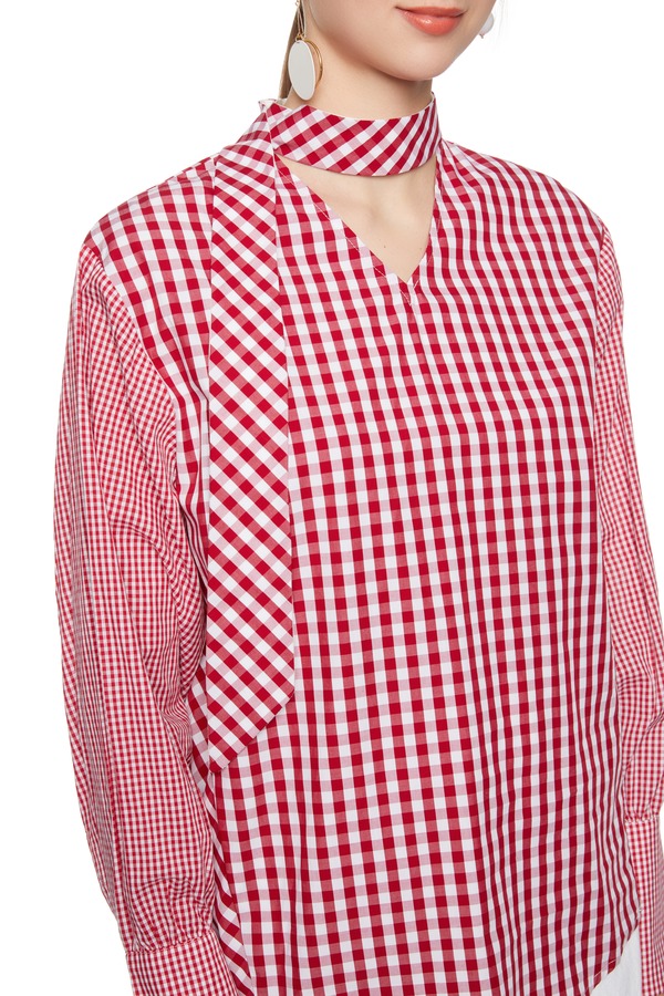 SUMMER & SAGE 格纹挂脖飘带上衣 6212