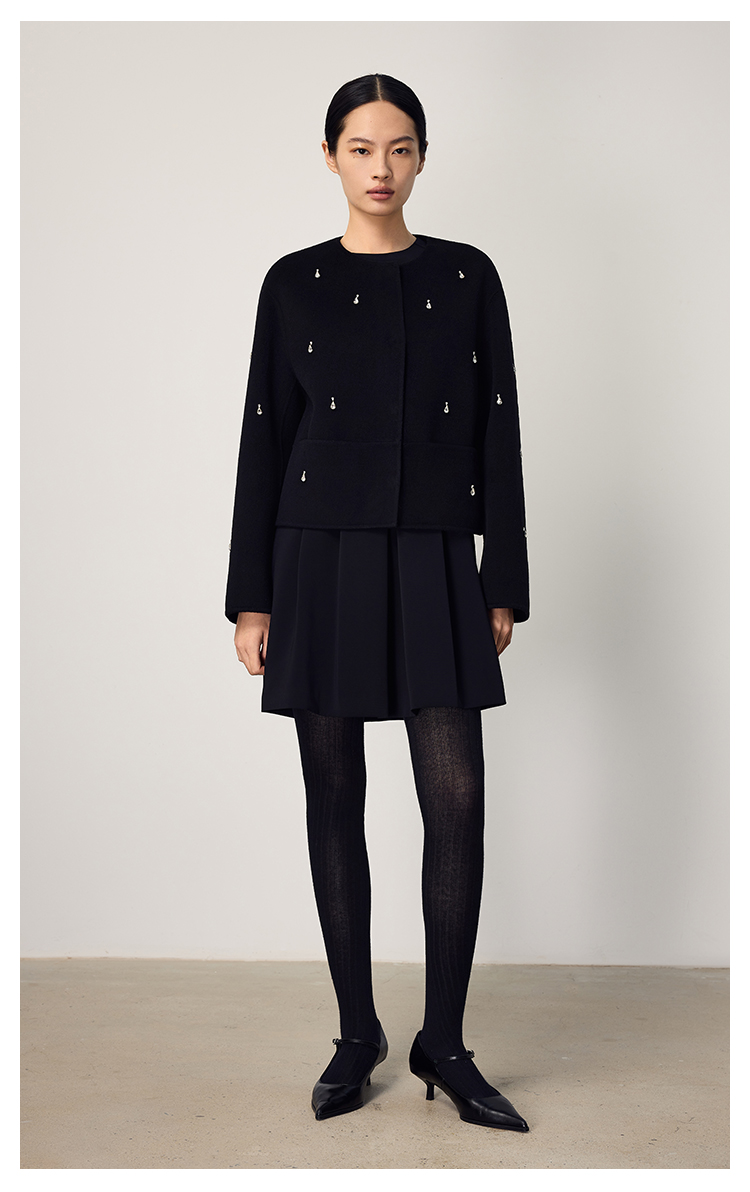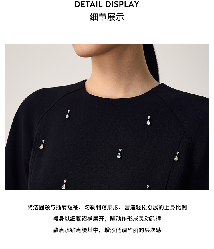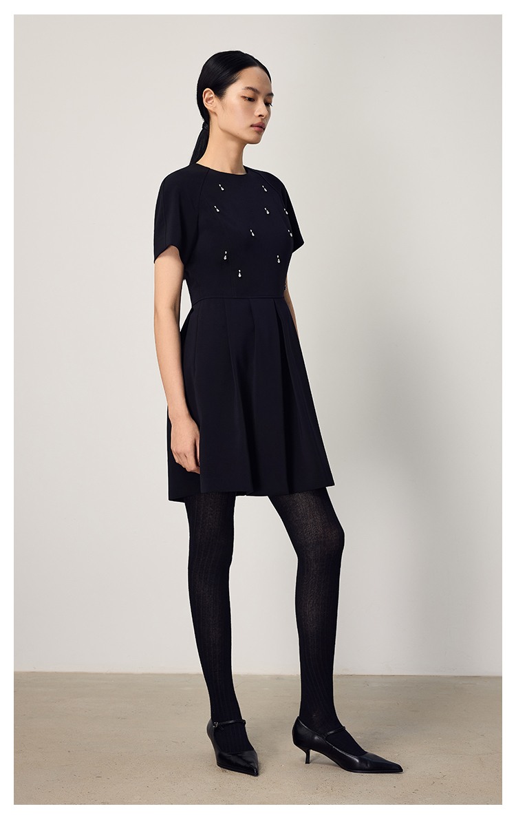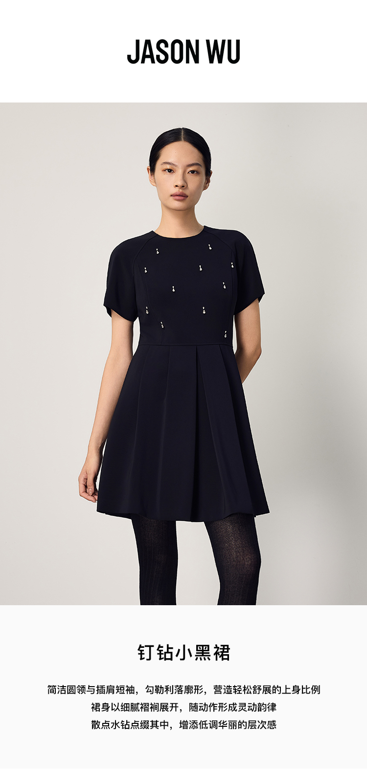 【JASON WU】2025秋冬新款简约气质通勤百搭钉钻小黑裙修身连衣裙裙子