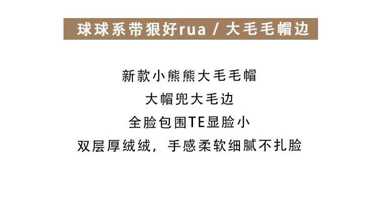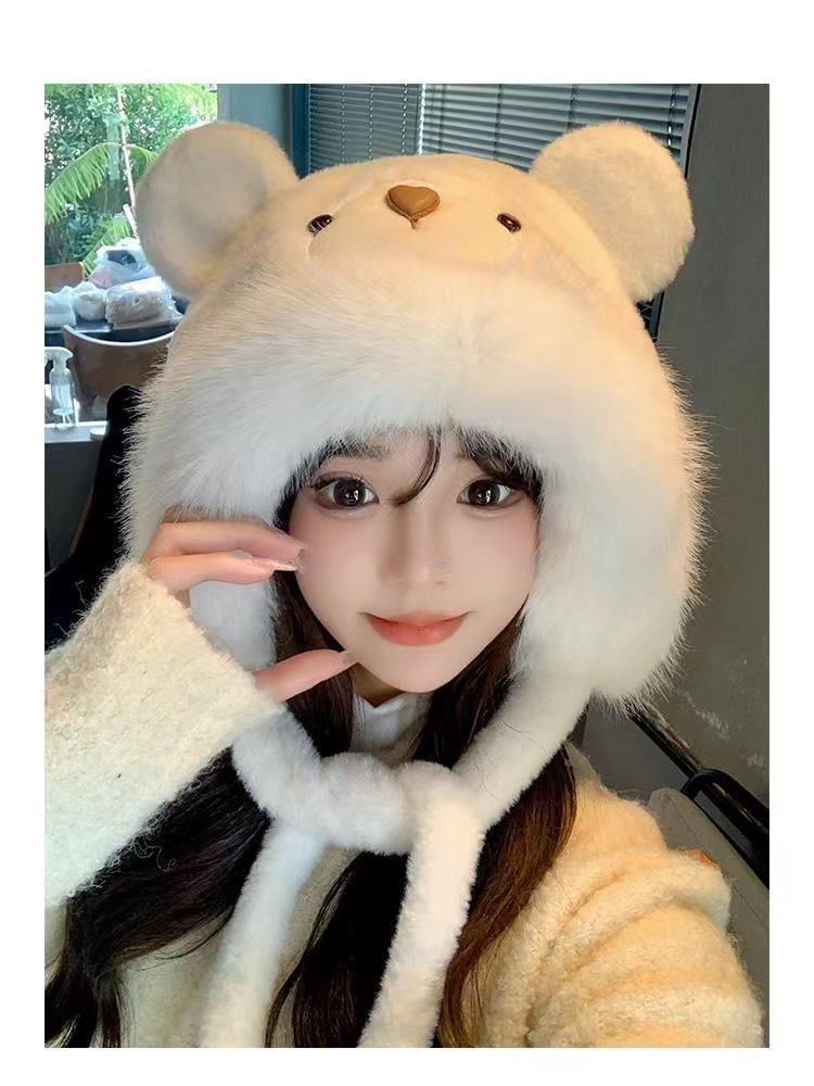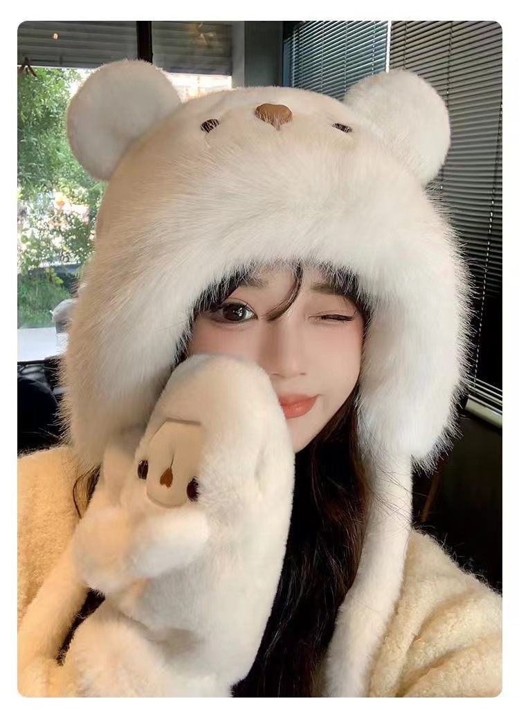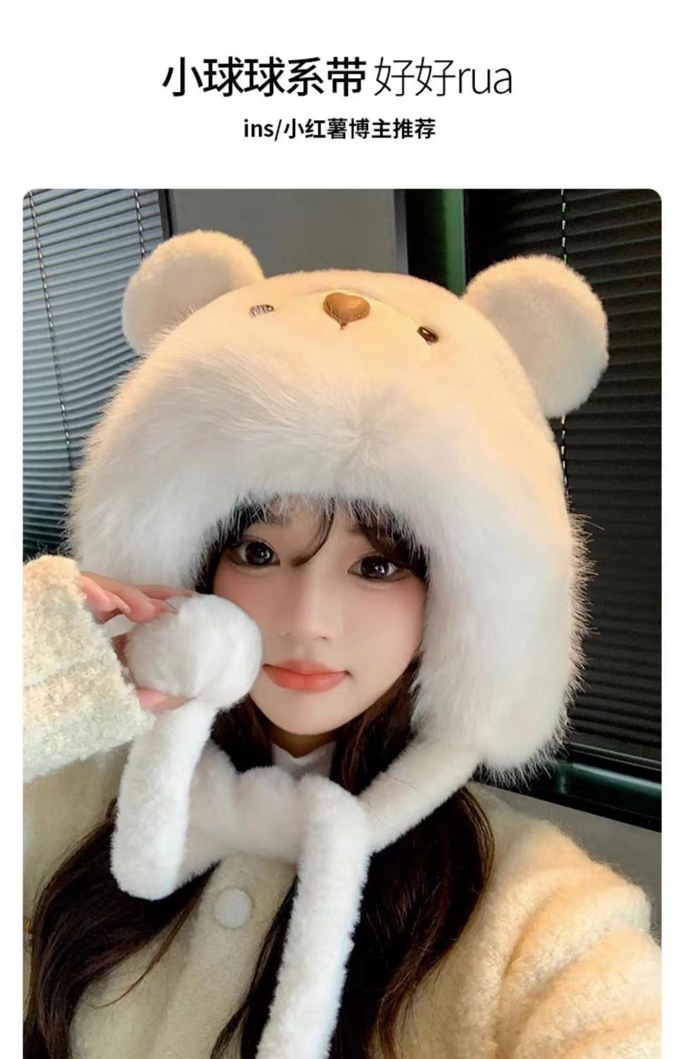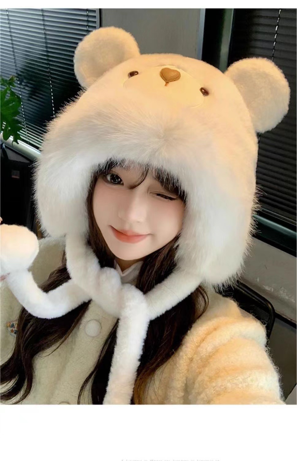 【氛围感❗️毛茸茸小熊帽】巨可爱滴,可配同套毛绒手套,帽檐加宽大毛毛,特显脸小,秋冬季加绒加厚保暖护耳套头帽可爱雷锋帽骑车QQ