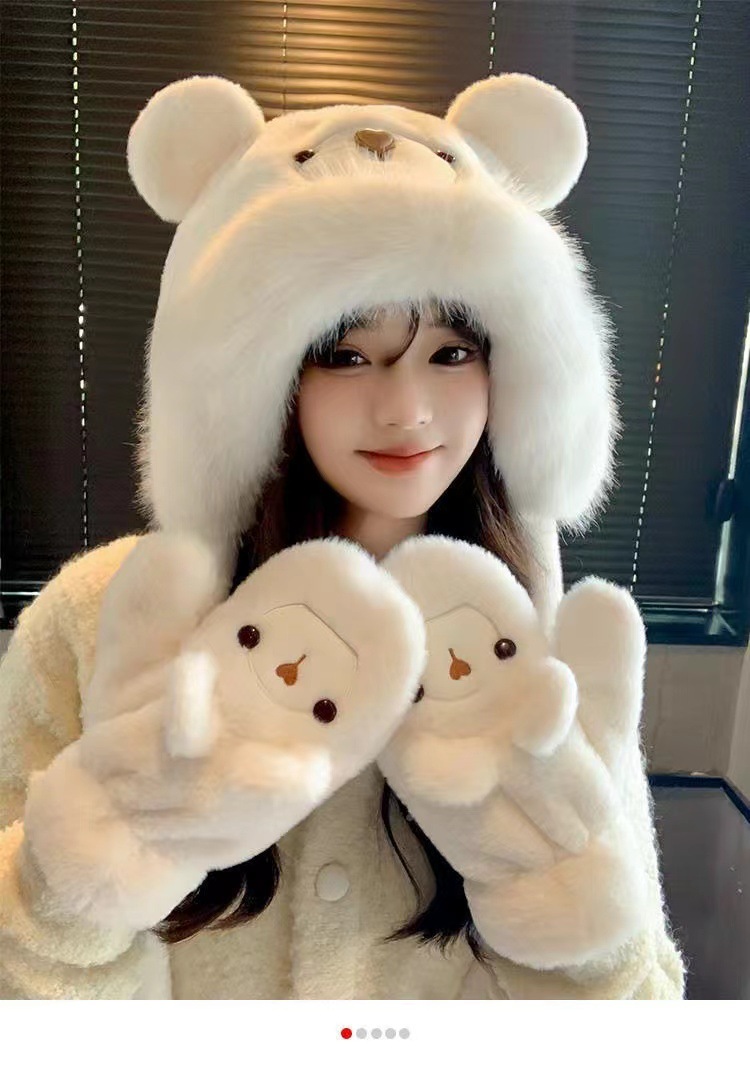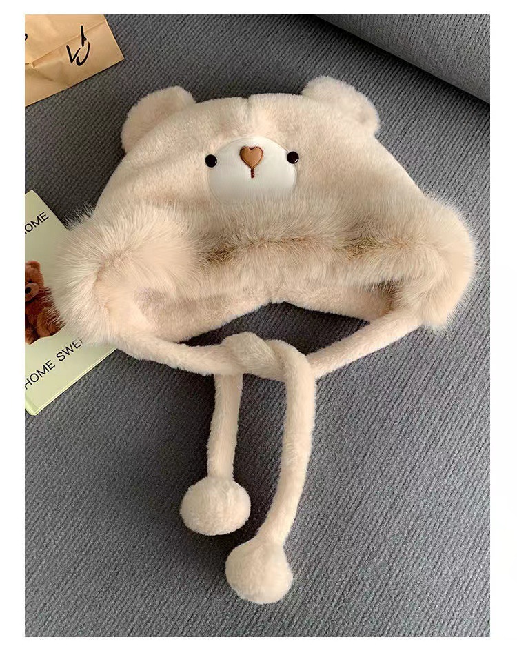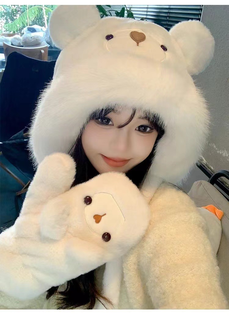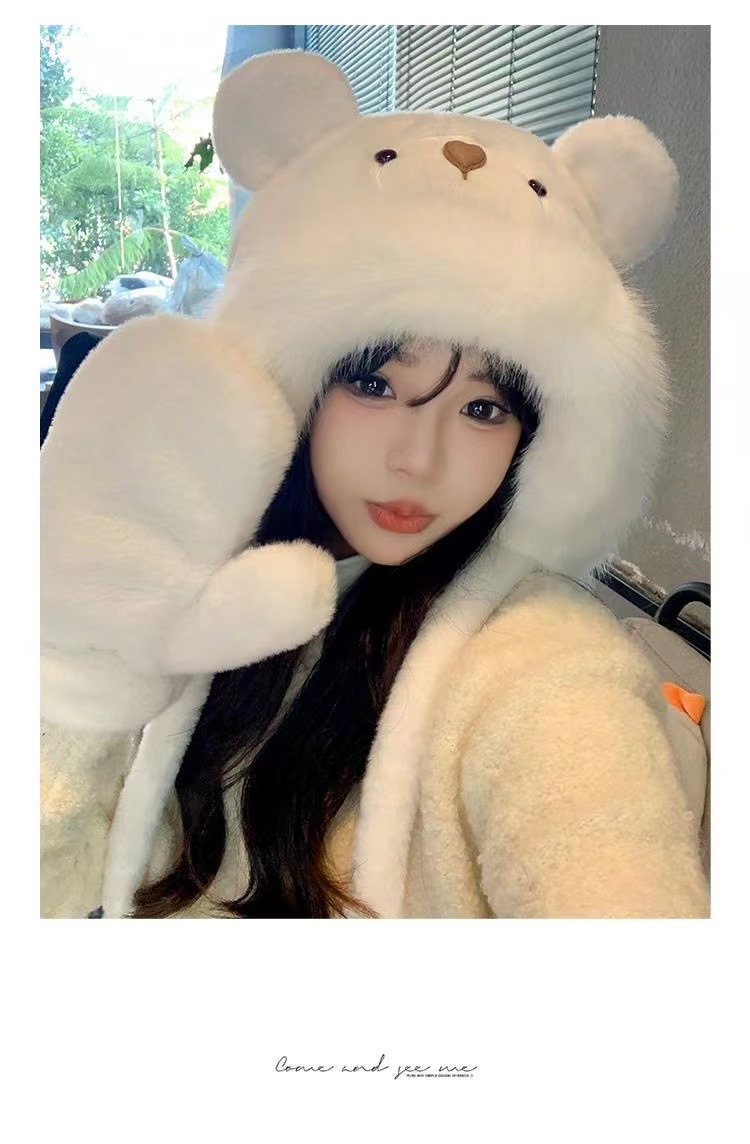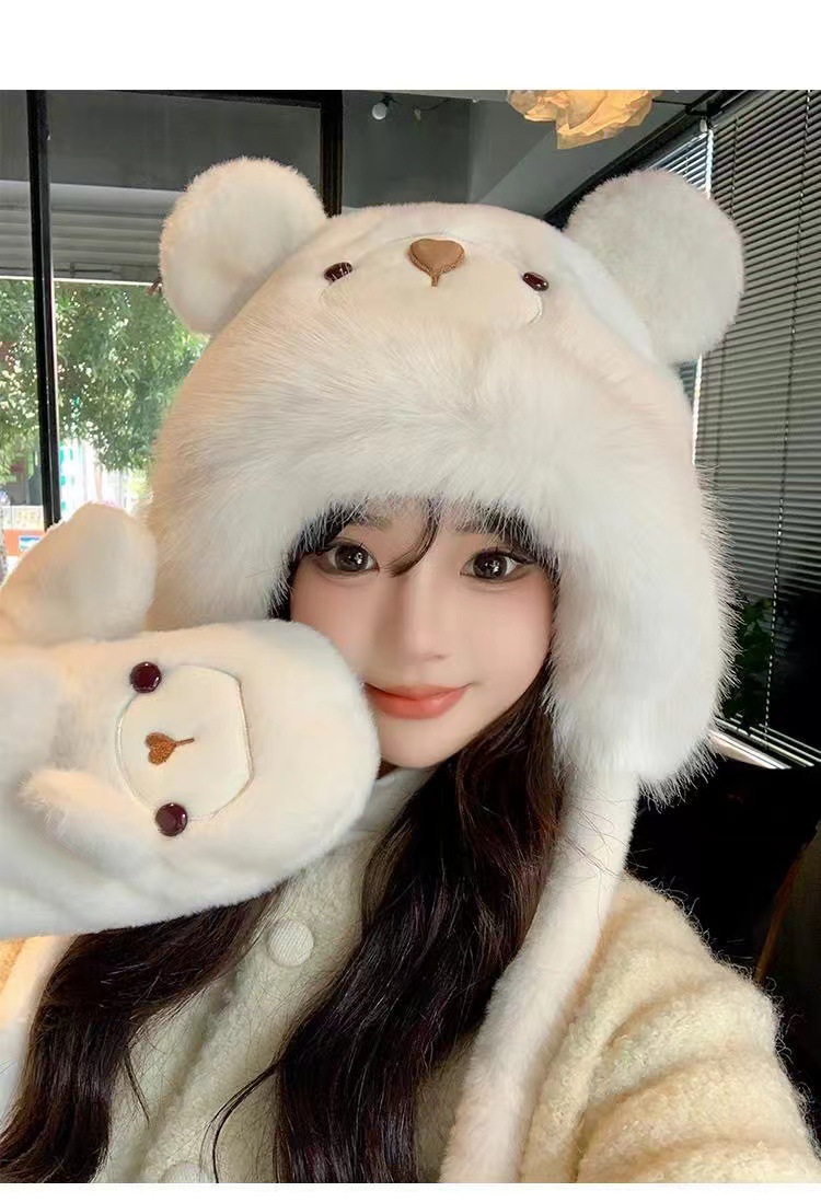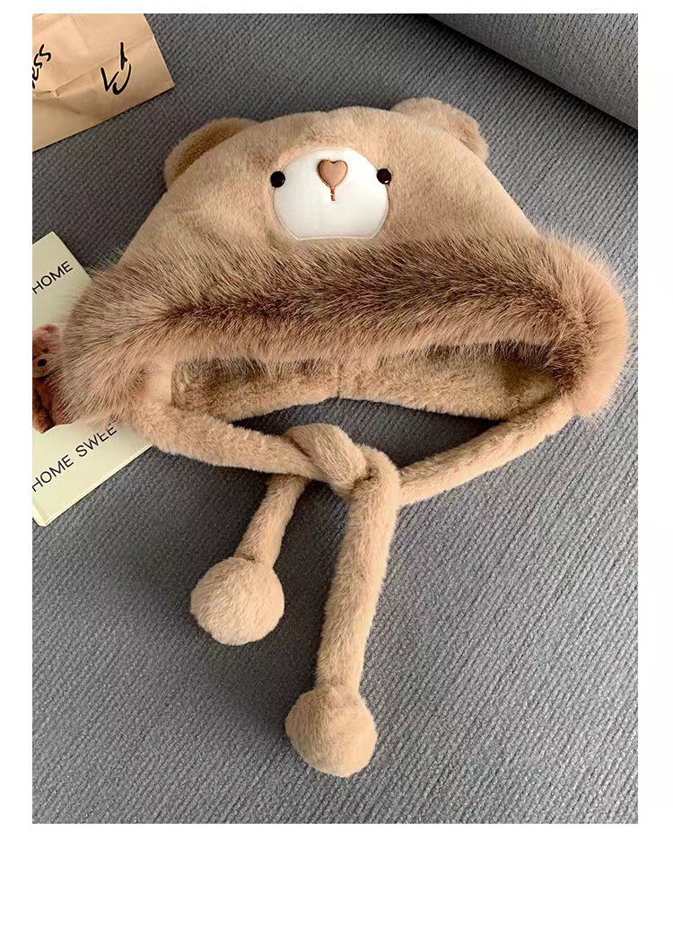 【氛围感❗️毛茸茸小熊帽】巨可爱滴,可配同套毛绒手套,帽檐加宽大毛毛,特显脸小,秋冬季加绒加厚保暖护耳套头帽可爱雷锋帽骑车QQ