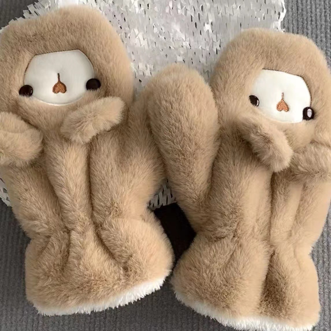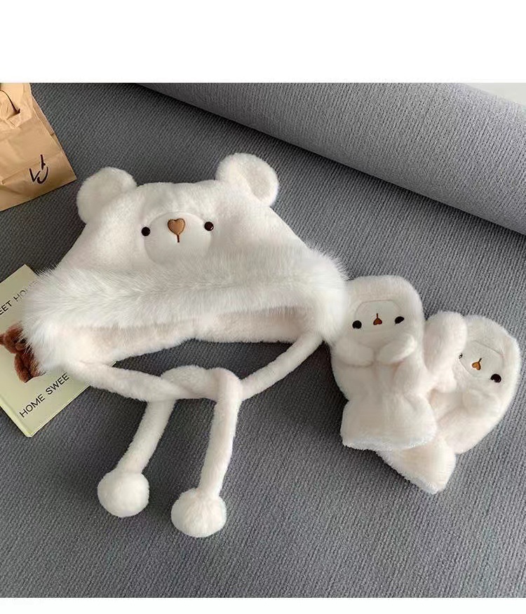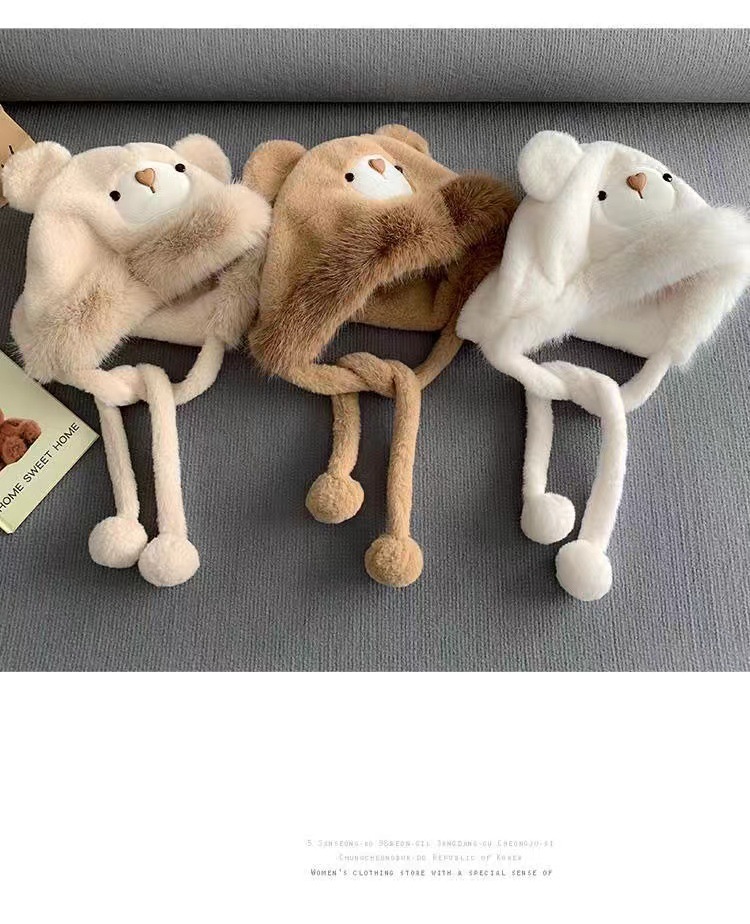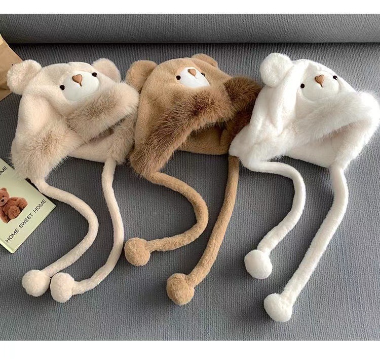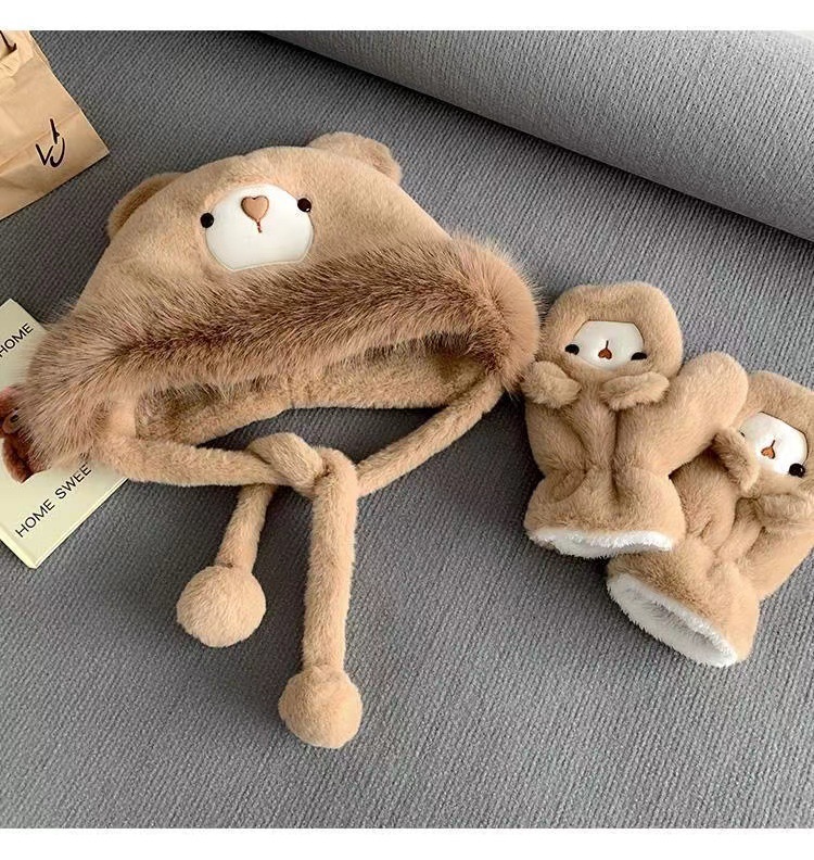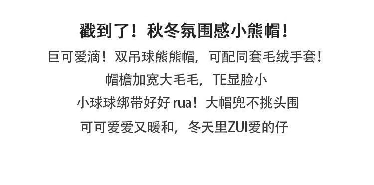 【氛围感❗️毛茸茸小熊帽】巨可爱滴,可配同套毛绒手套,帽檐加宽大毛毛,特显脸小,秋冬季加绒加厚保暖护耳套头帽可爱雷锋帽骑车QQ