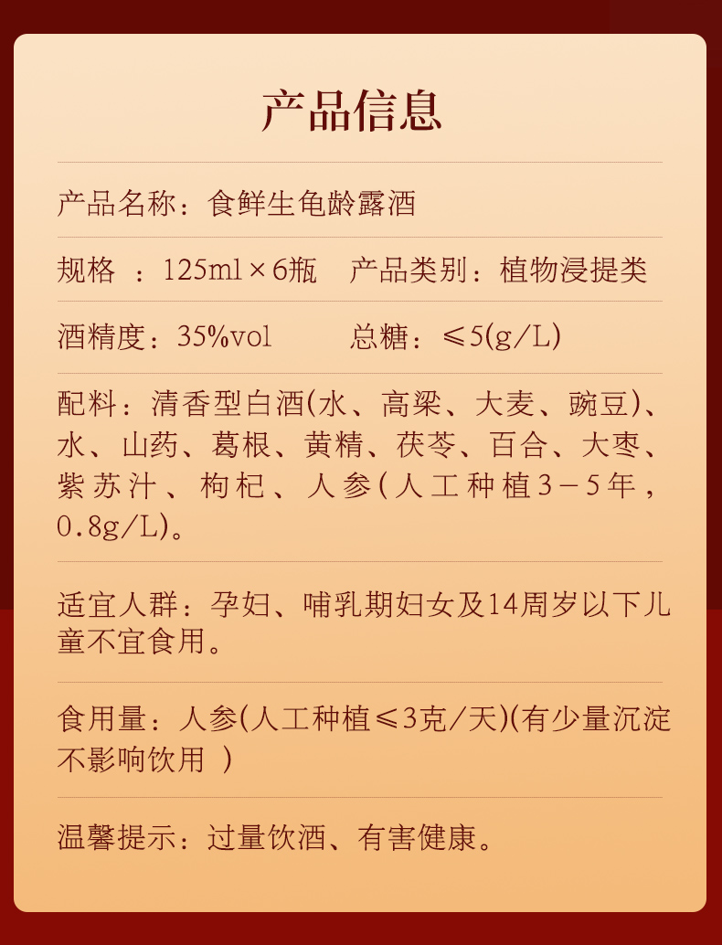 食鲜生龟龄露酒125ml*6瓶/盒 礼盒装