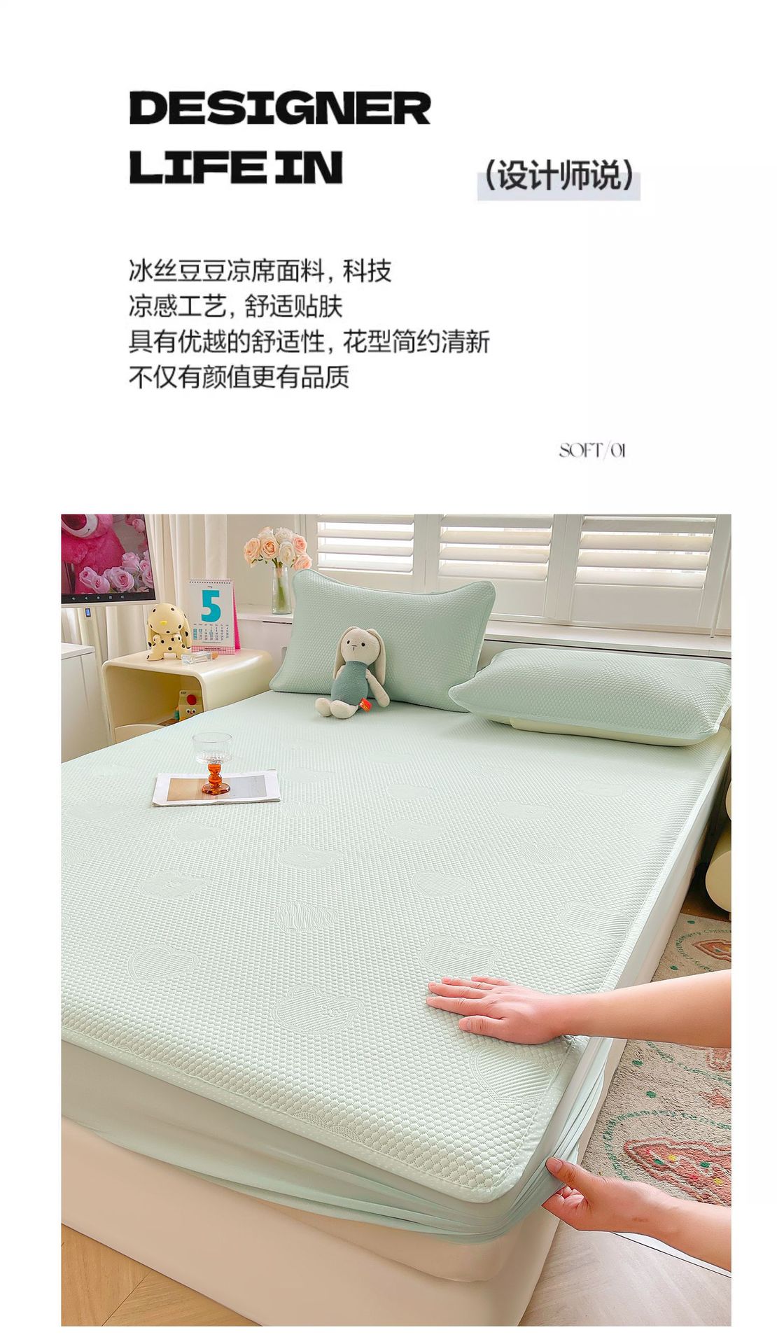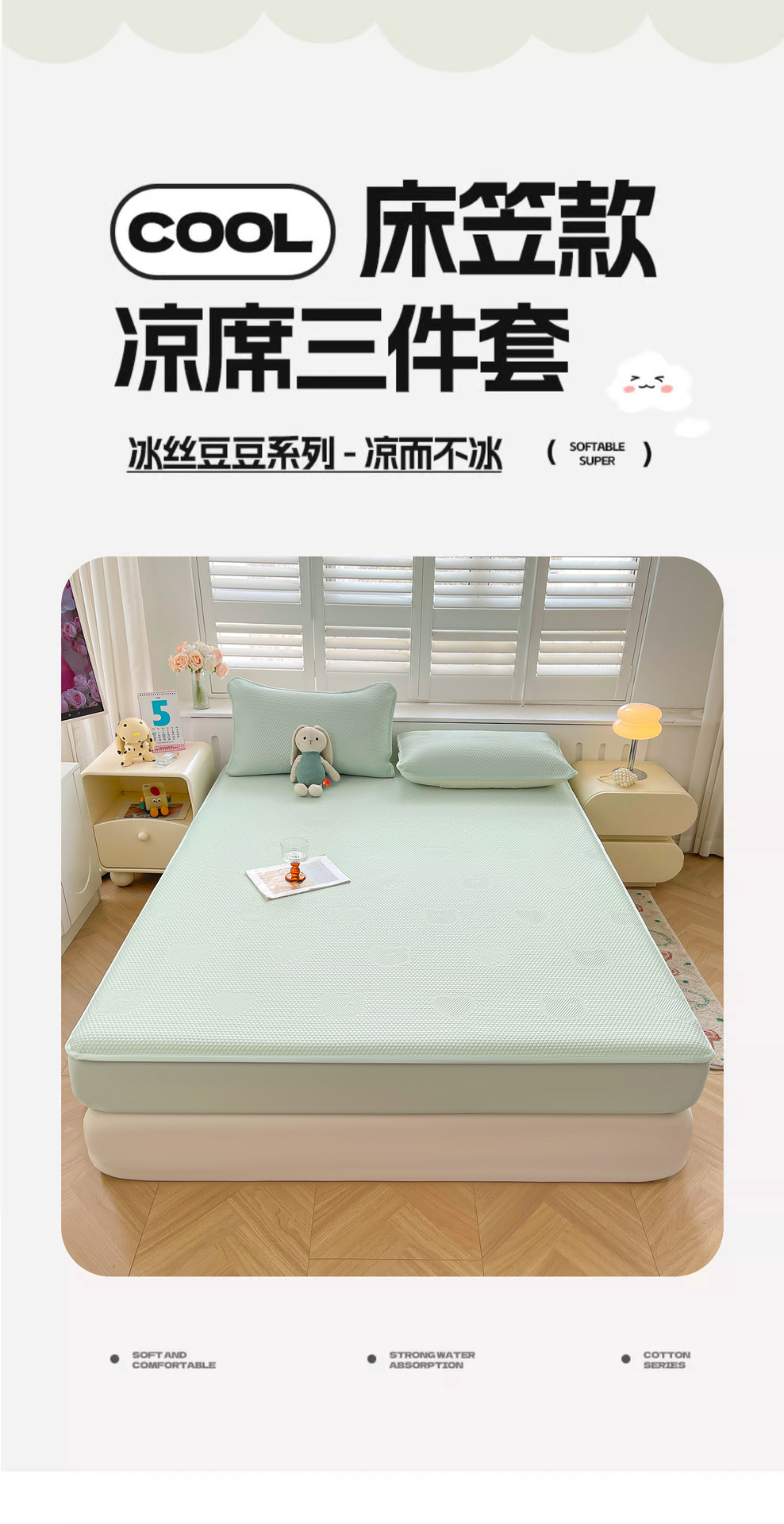 裸睡神器 凉而不冰 夏季凉感冰豆豆凉席床笠款三件套