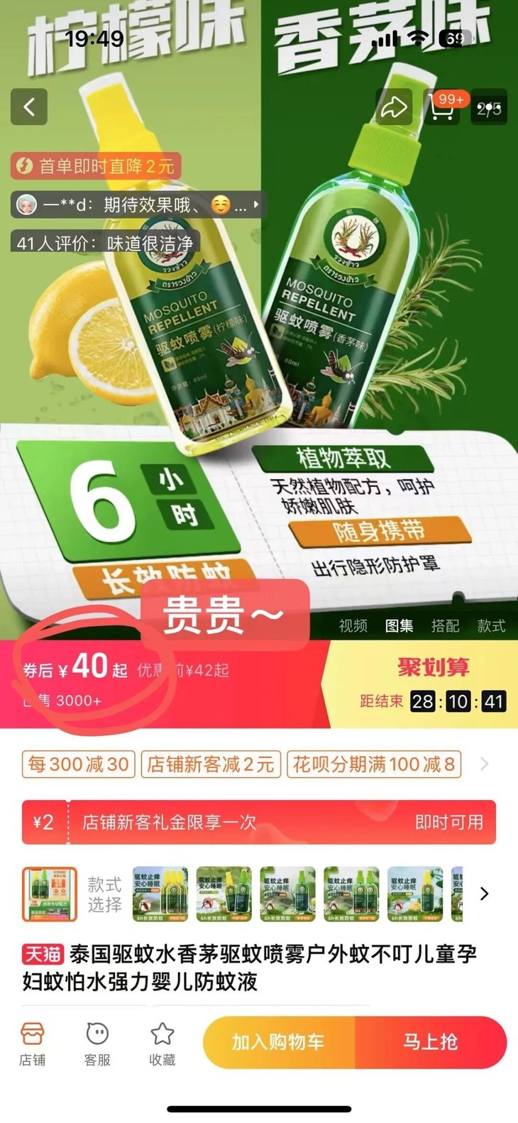 旗舰店驱蚊水售价40+青草膏售价40+