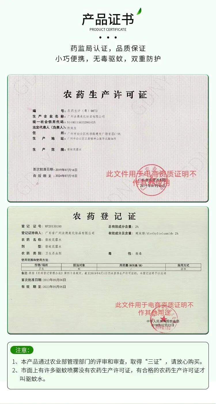 药监局认证驱蚊水,获农药批准文号