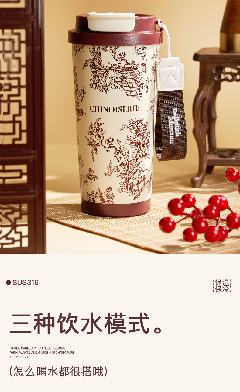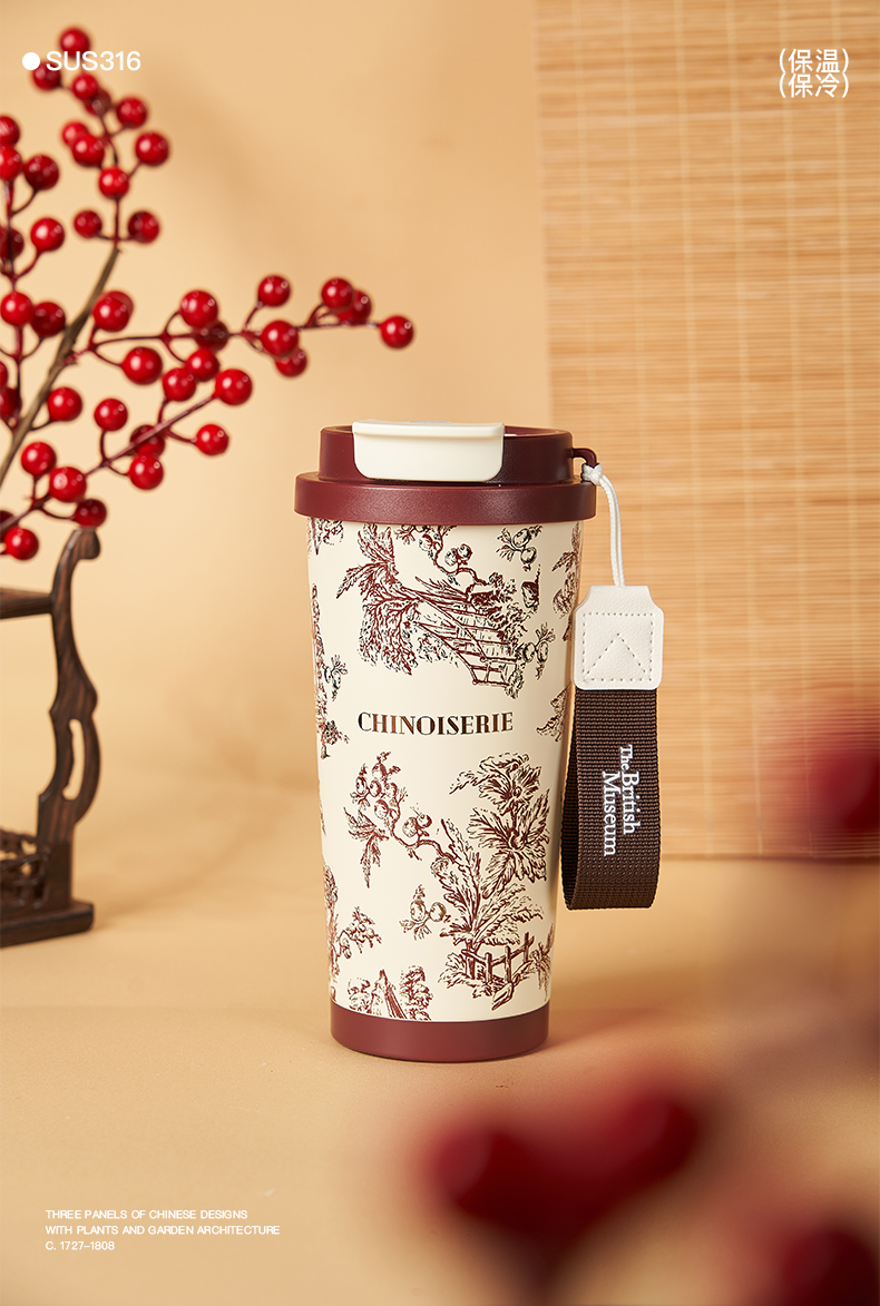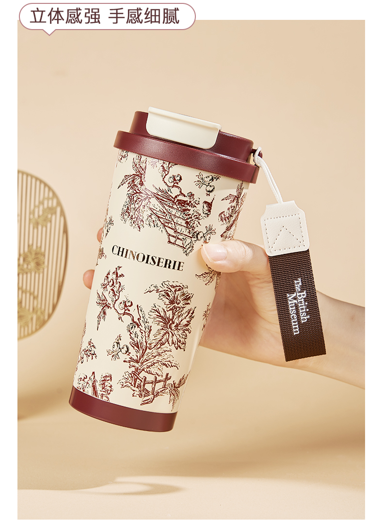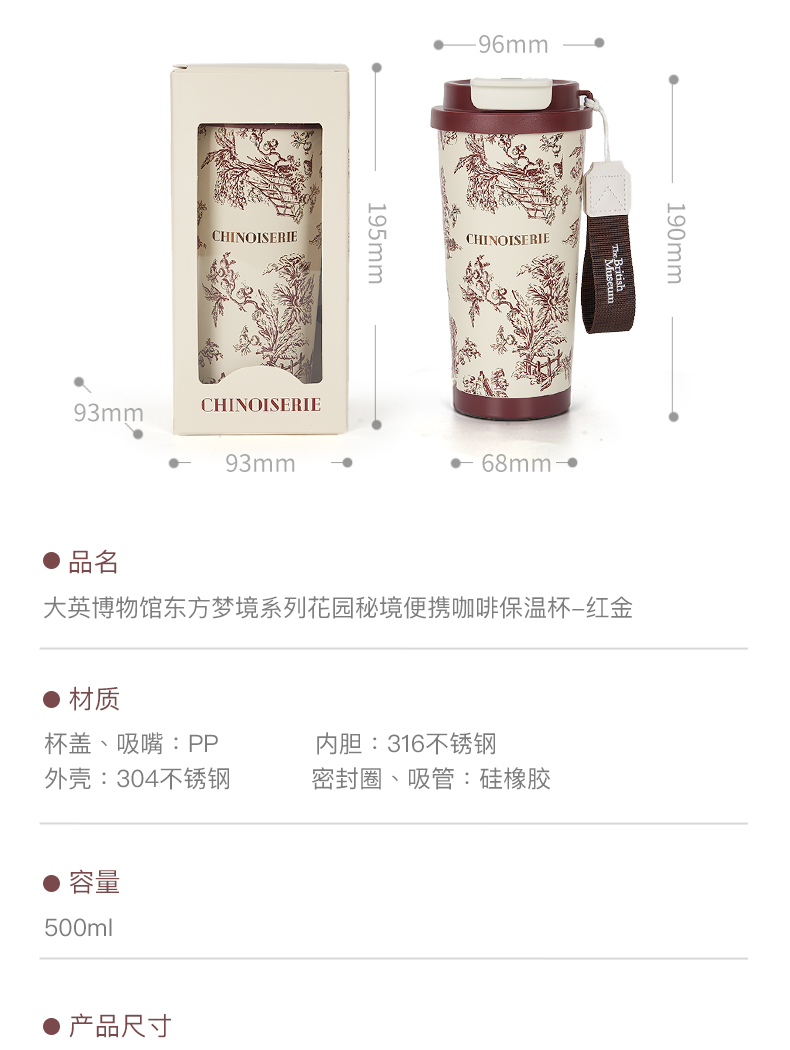 大英博物馆东方梦境系列花园秘境便携咖啡保温杯-红金